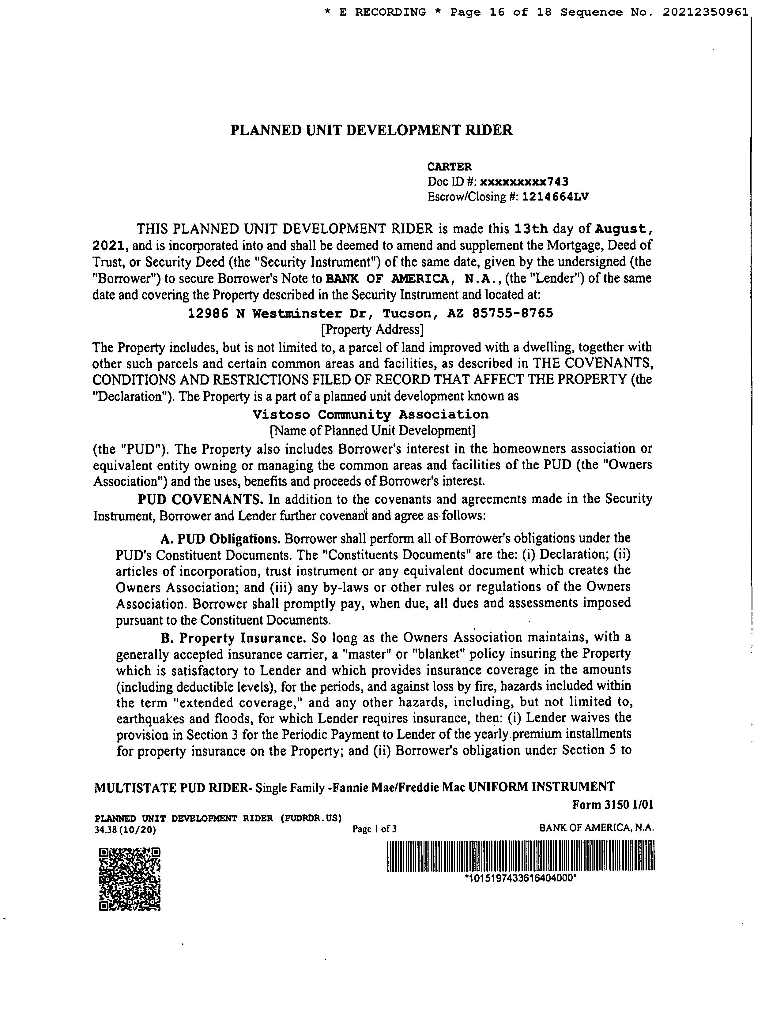 Subject Property : 12986 N Westminster Dr Tucson AZ 85755