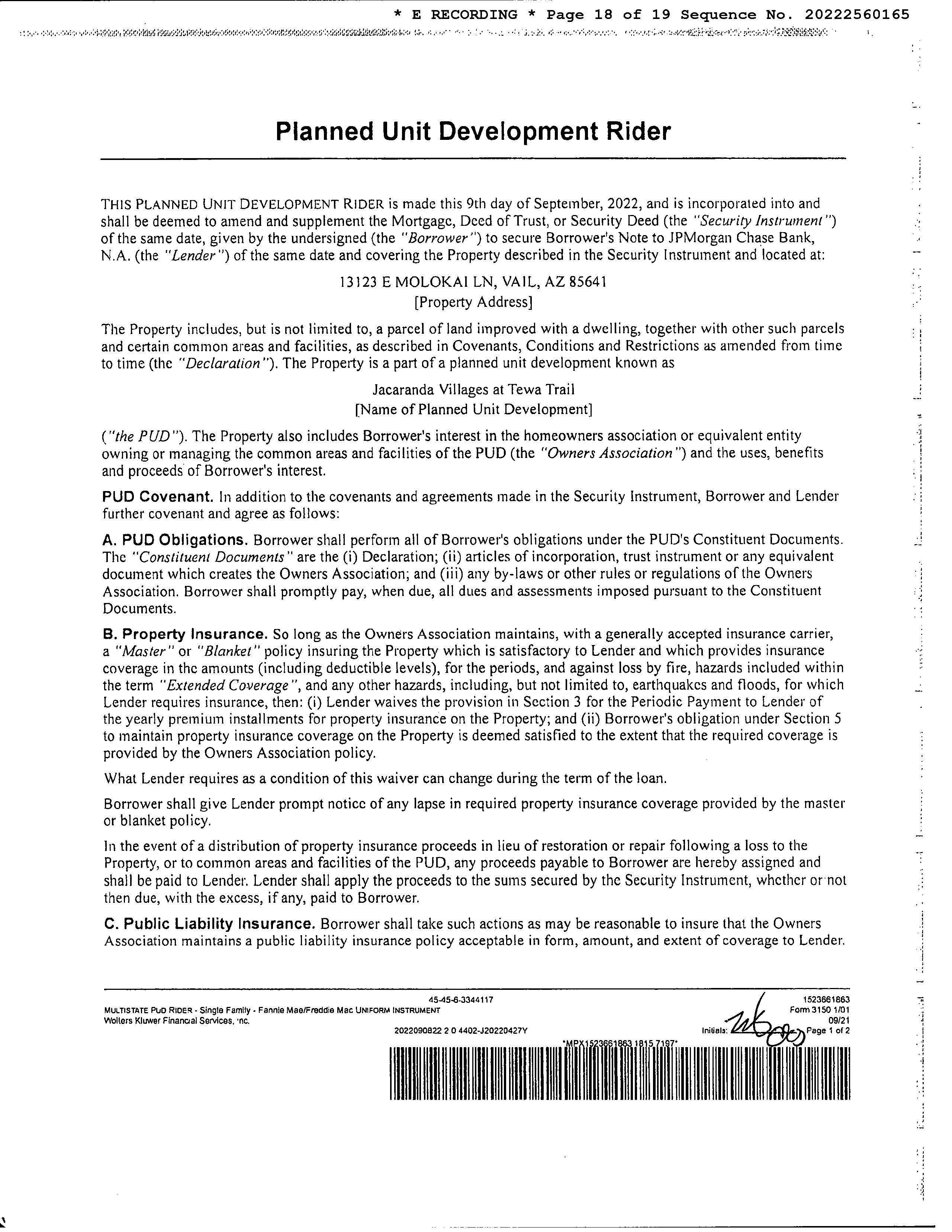 Subject Property : 13123 E Molokai Ln Vail AZ 85641
