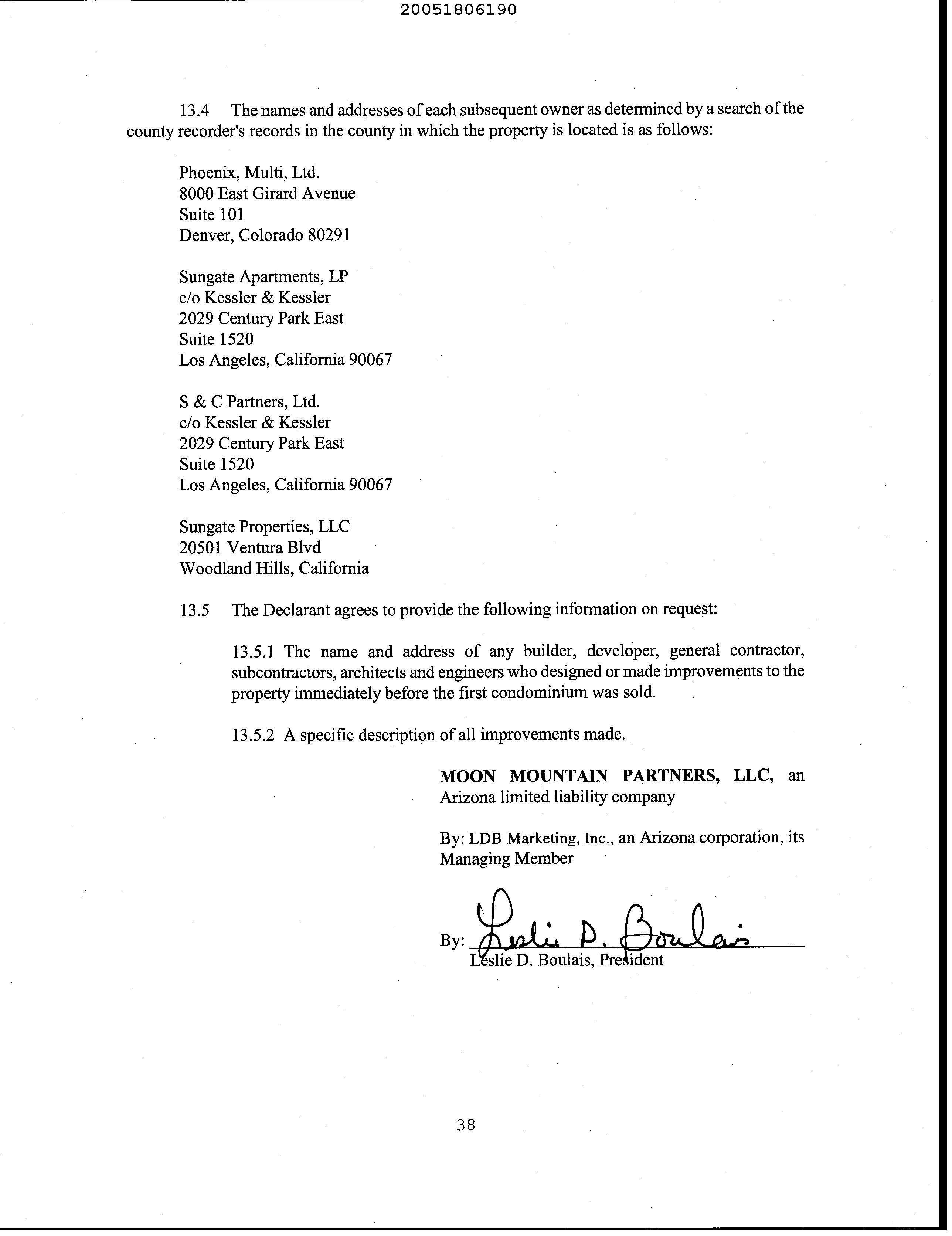 Owner Name : Franco Laura Subdivision : Sungate At Moon Mountain Condo