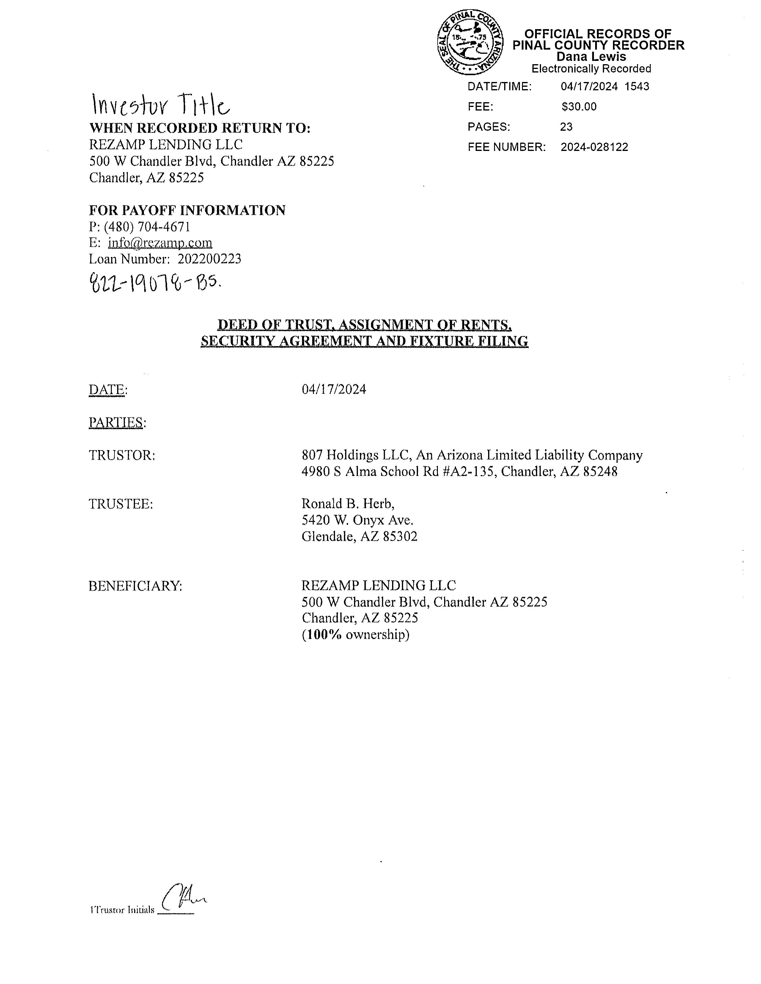 Owner Name: 807 Holdings Llc / APN / Alternate APN: 407-08-239A / Deed Type: Warranty Deed