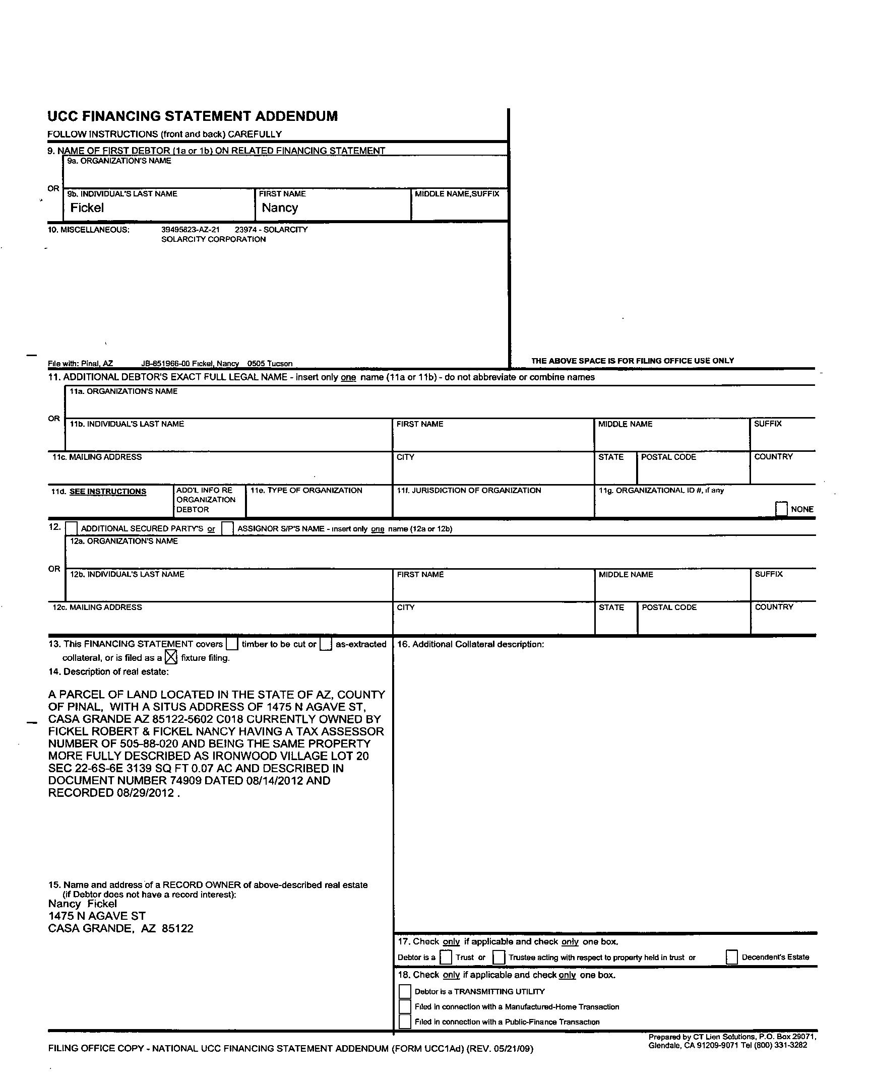 Mailing Address : 1475 N Agave St, Casa Grande AZ 85122-5602 C010