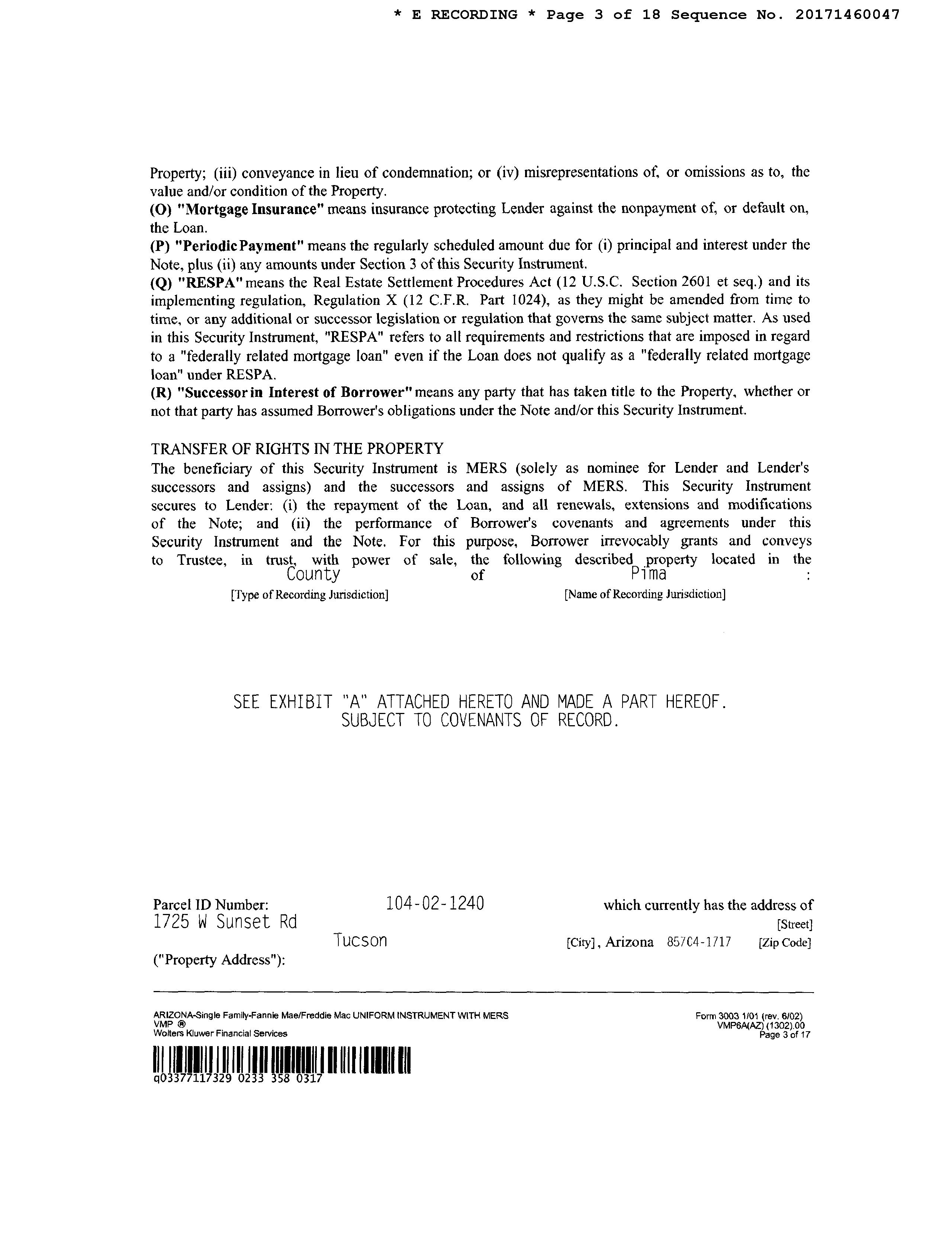 Mailing Address : 1725 W Sunset Rd, Tucson AZ 85704-1717 C013