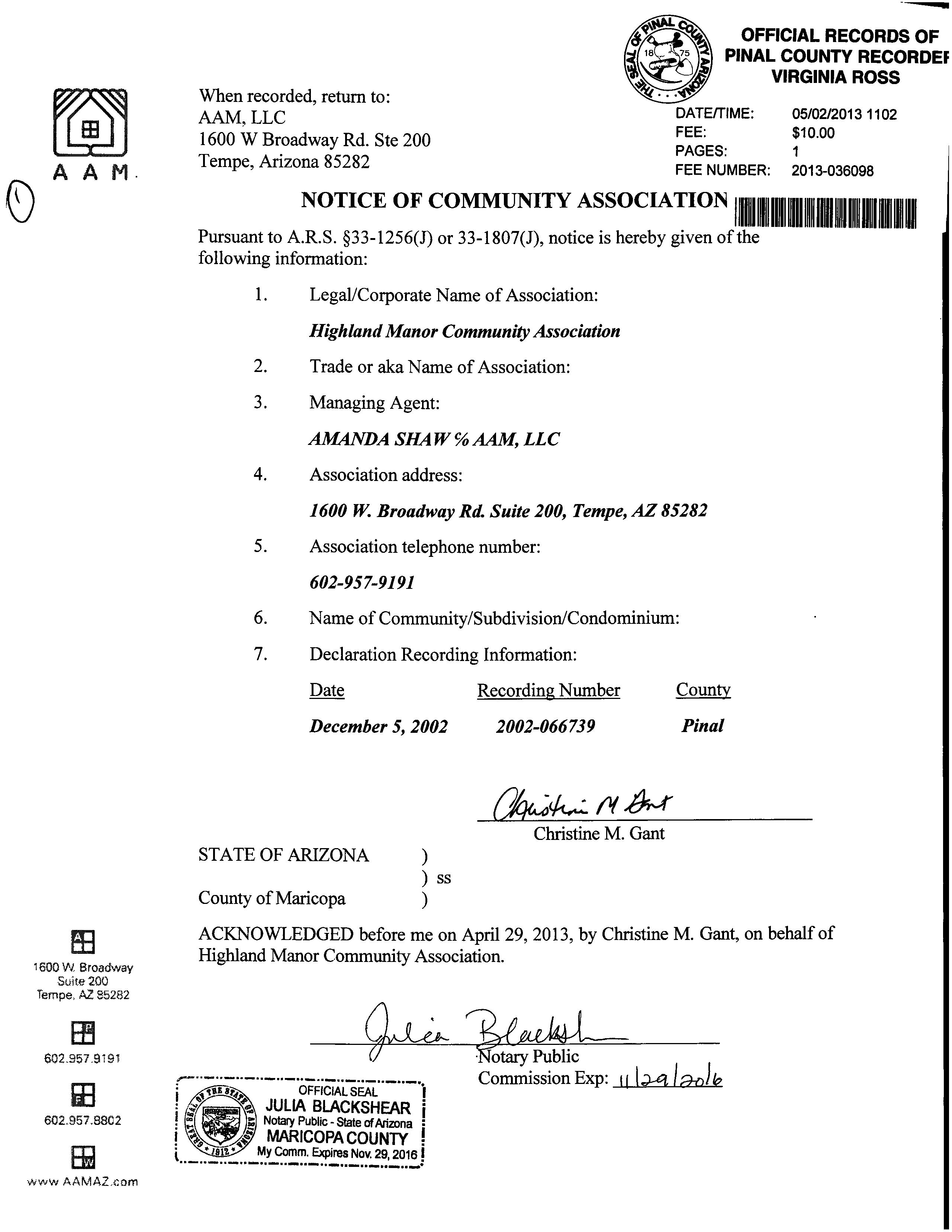 Subdivision : Highland Manor 01 Amd 1771 N AGAVE ST