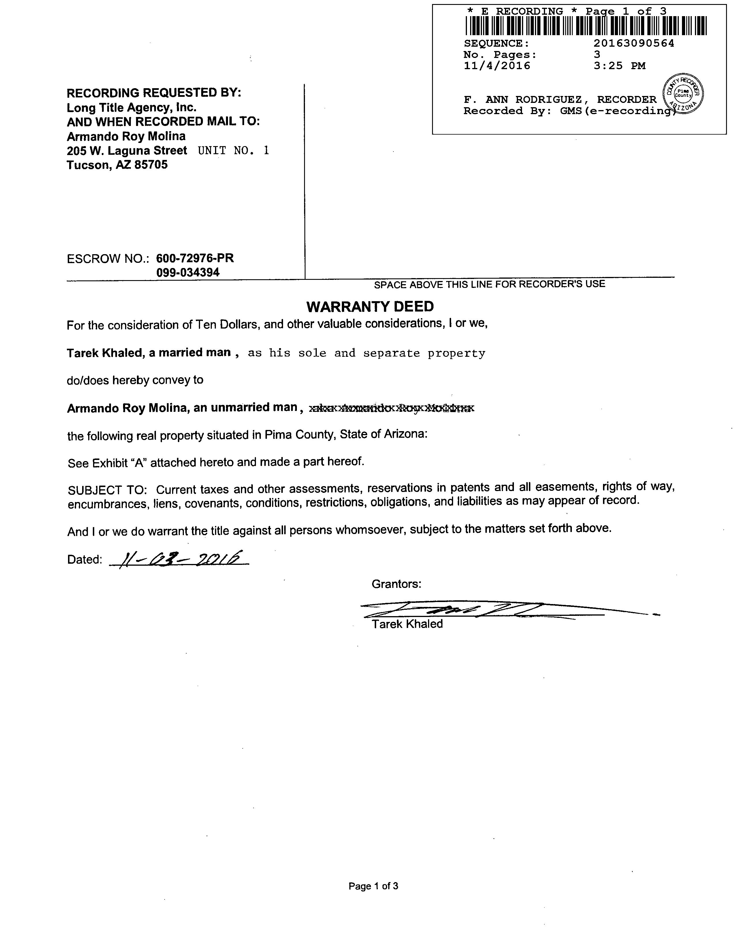 Mailing Address : 205 W Laguna St Unit 1, Tucson AZ 85705-5036 C004