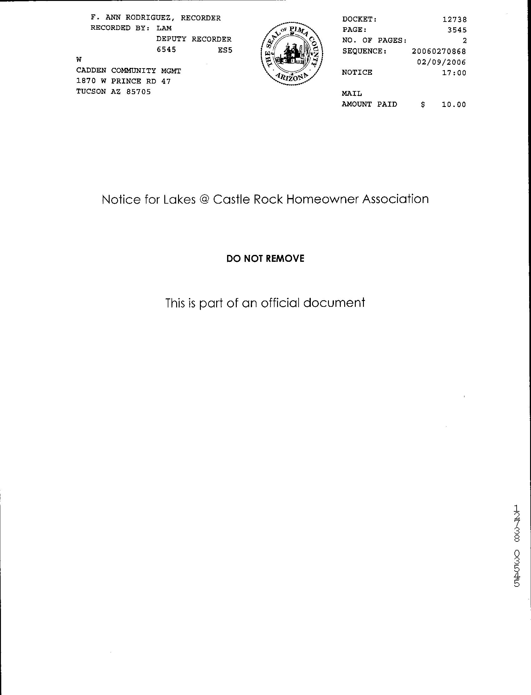 Mailing Address : 2145 N Split Rock Pl, Tucson AZ 85749-7902 R094