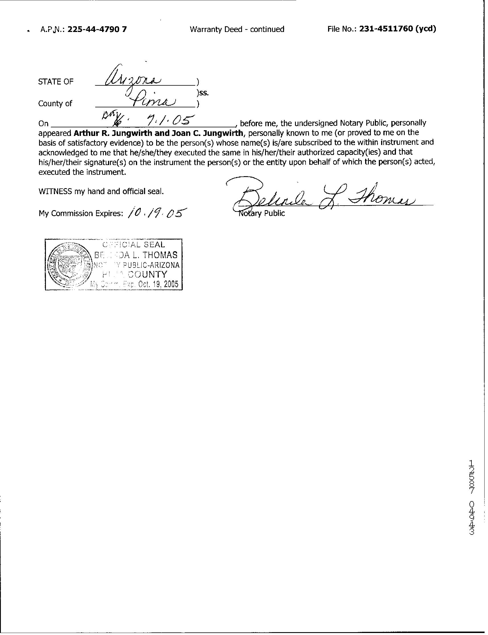 Market Sale Information Recording/Sale Date : 07/05/2005 / 06/00/2005