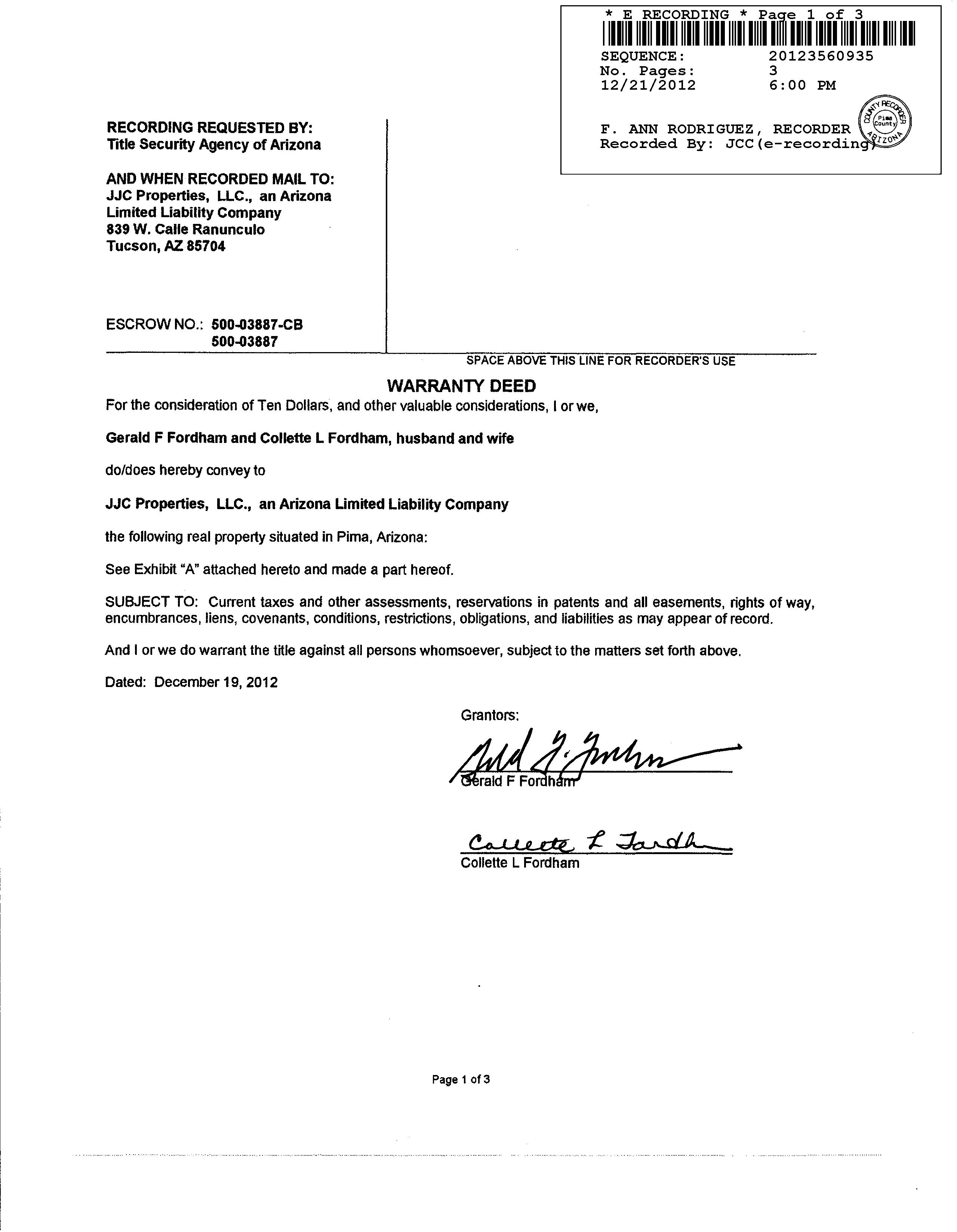 Owner Name: Jjc Properties Llc / APN / Alternate APN: 219-24-1240 / Deed Type: Warranty Deed