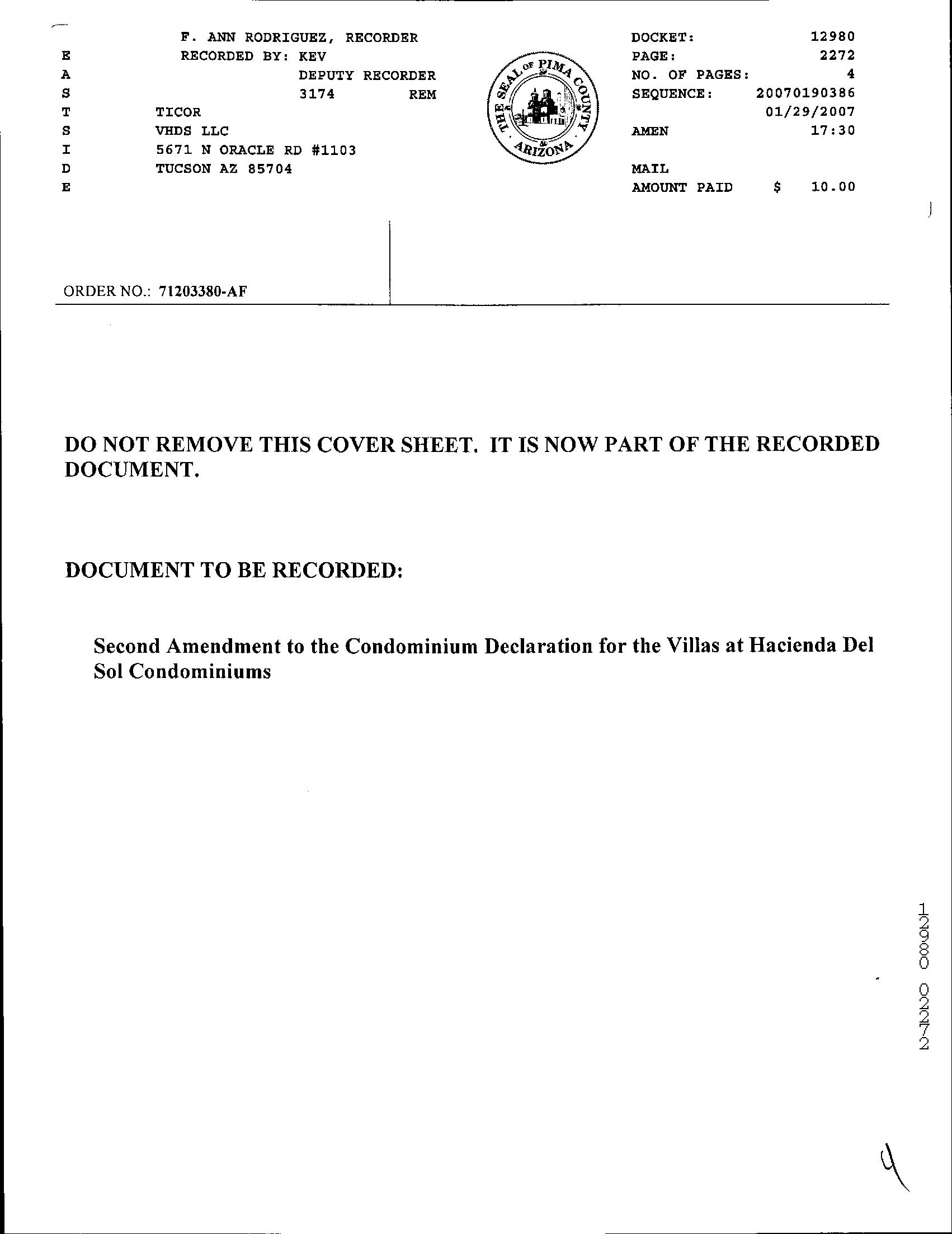 Legal Description : Villas At Hacienda Del Sol Condominium Unit 205 & 1/218 % Int In Common Element