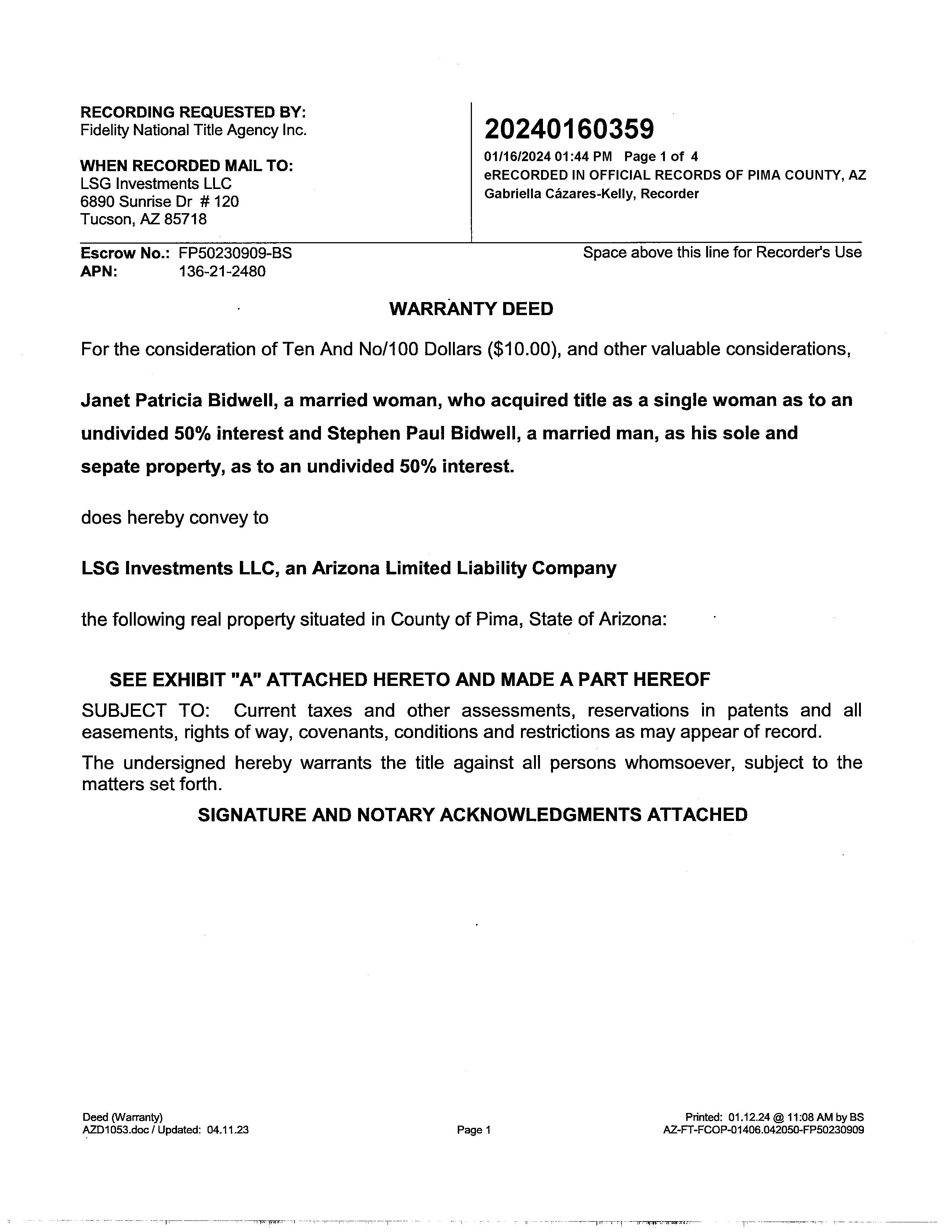 NEWS! FIRST AMERICAN - SOUTHERN ARIZONA ADMIN OFFICE 520.885.1600 tsa-administration@firstam.com First American Title Insurance Company, and the operating divisions thereof, make no express or implied warranty respecting the information presented and assume no responsibility for errors or omissions. First American, the eagle logo, First American Title, and firstam.com are registered trademarks or trademarks of First American Financial Corporation and/or its affiliates. ©2024 First American Financial Corporation and/or its affiliates. All rights reserved. NYSE: FAF