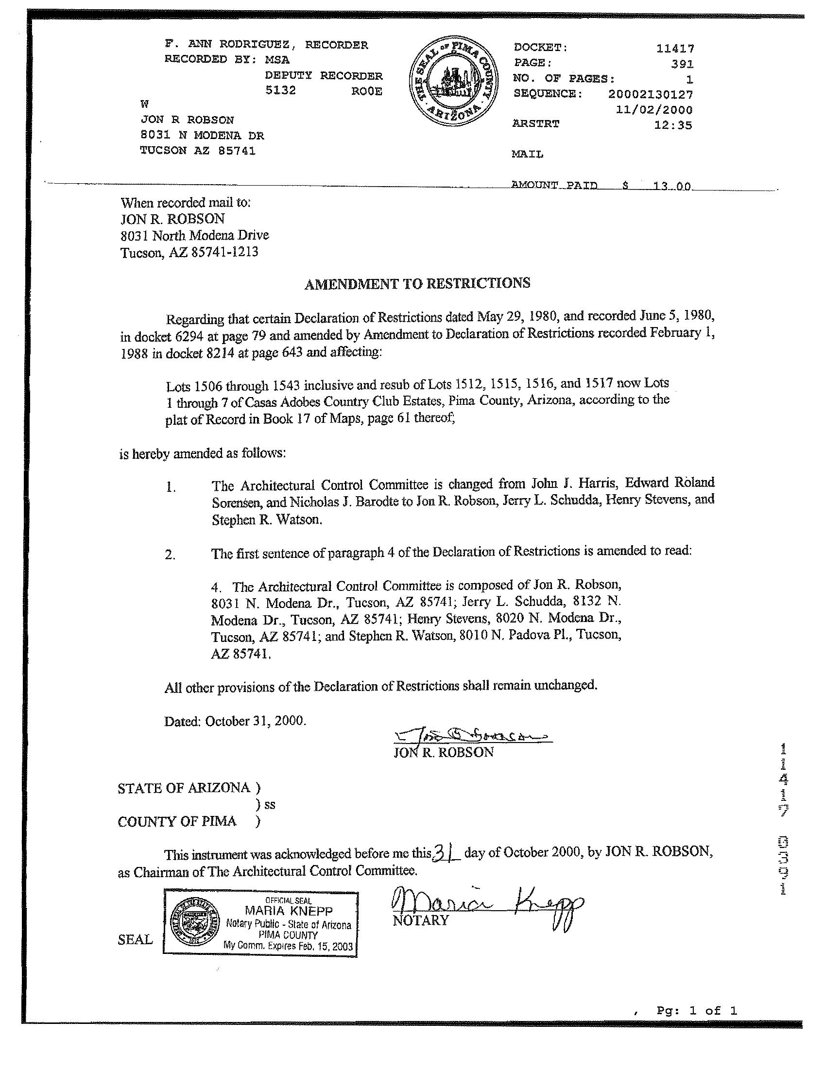 Legal Description : Casas Adobes Country Club Estates Lot 3 (formerly 203-50-4890)