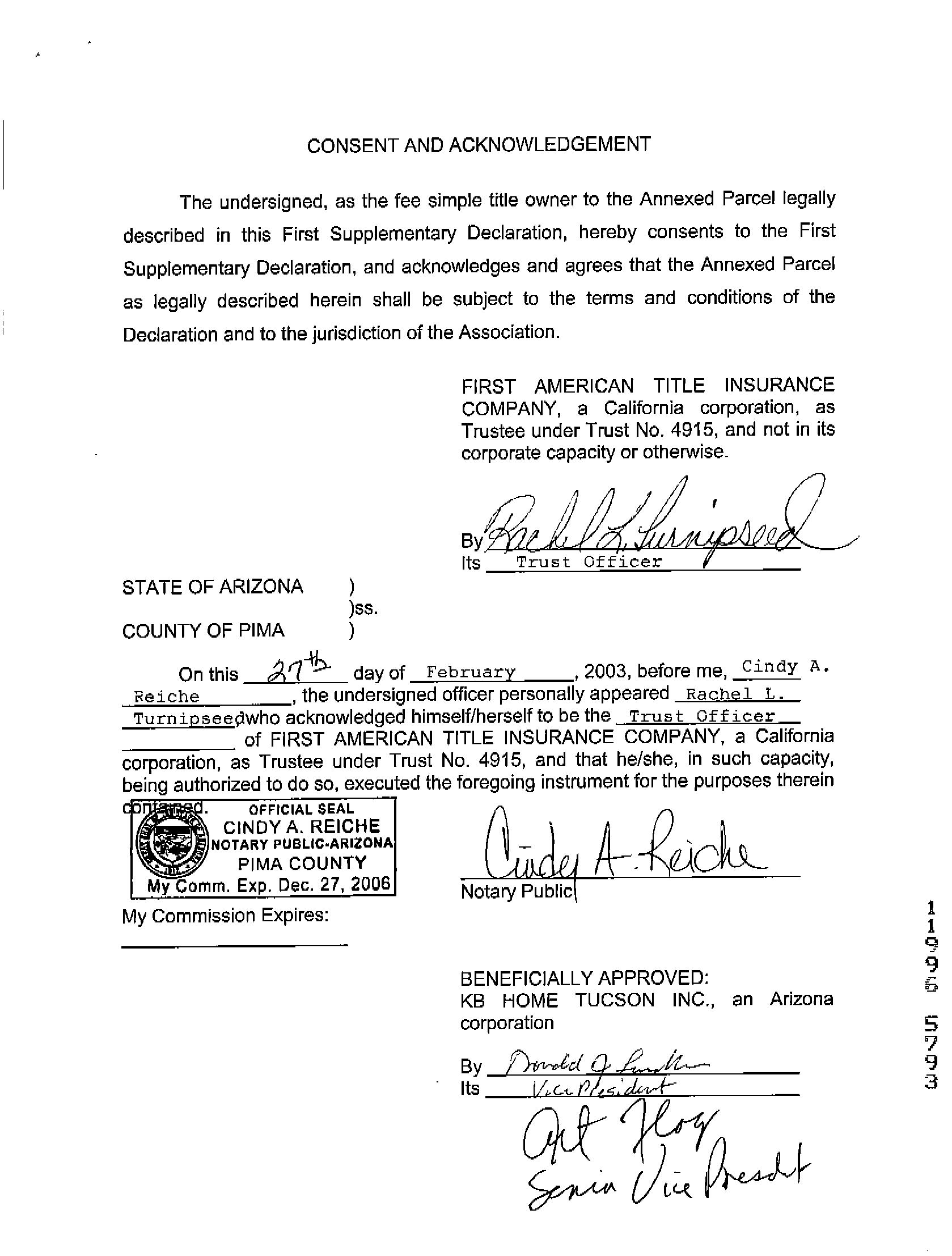 This information is furnished without fee and without benefit of a complete title search. No liability is assumed by First American Title. If it is desired that liability be assumed, you may apply for a policy of title insurance with First American Title Insurance Company.