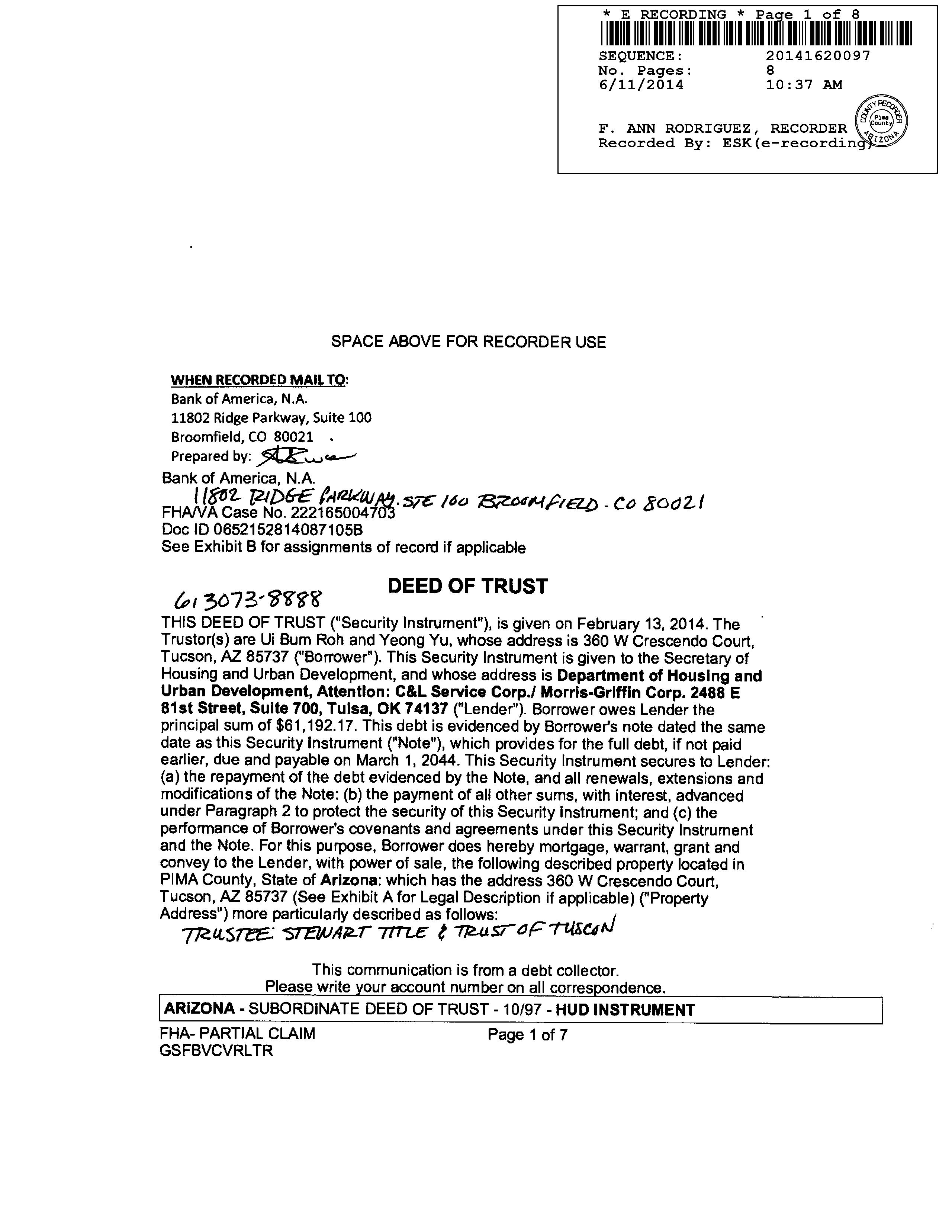 This report is not an insured product or service or a representation of the condition of title to real property. It is not an abst ract, legal opinion, opinion of title, title insurance commitment or preliminary report, or any form of Title Insurance or Guaranty. This report is issued exclusively for the benefit of the Applicant therefor and may not be used or relied upon by any other person. This report may not be reproduced in any manner without First American or Title Security's prior written consent. First American or Title Security does not represent or warrant that the information herein is complete or free from error, and the information herein is provided without any warranties of any kind, as-is, and with all faults. As a material part of the consideration given in exchange for the issuance of this report, recipient agrees that First American or Title Security's sole liability for any loss or damage caused by an error or omission due to inaccurate information or negligence in preparing this report shall be limited to the fee charged for the report. Recipient accepts this report with this limitation and agrees that First American or Title Security would not have issued this report but for the limitation of liability described above. First American or Title Security makes no representation or warranty as to the legality or propriety of recipient's use of the information herein.