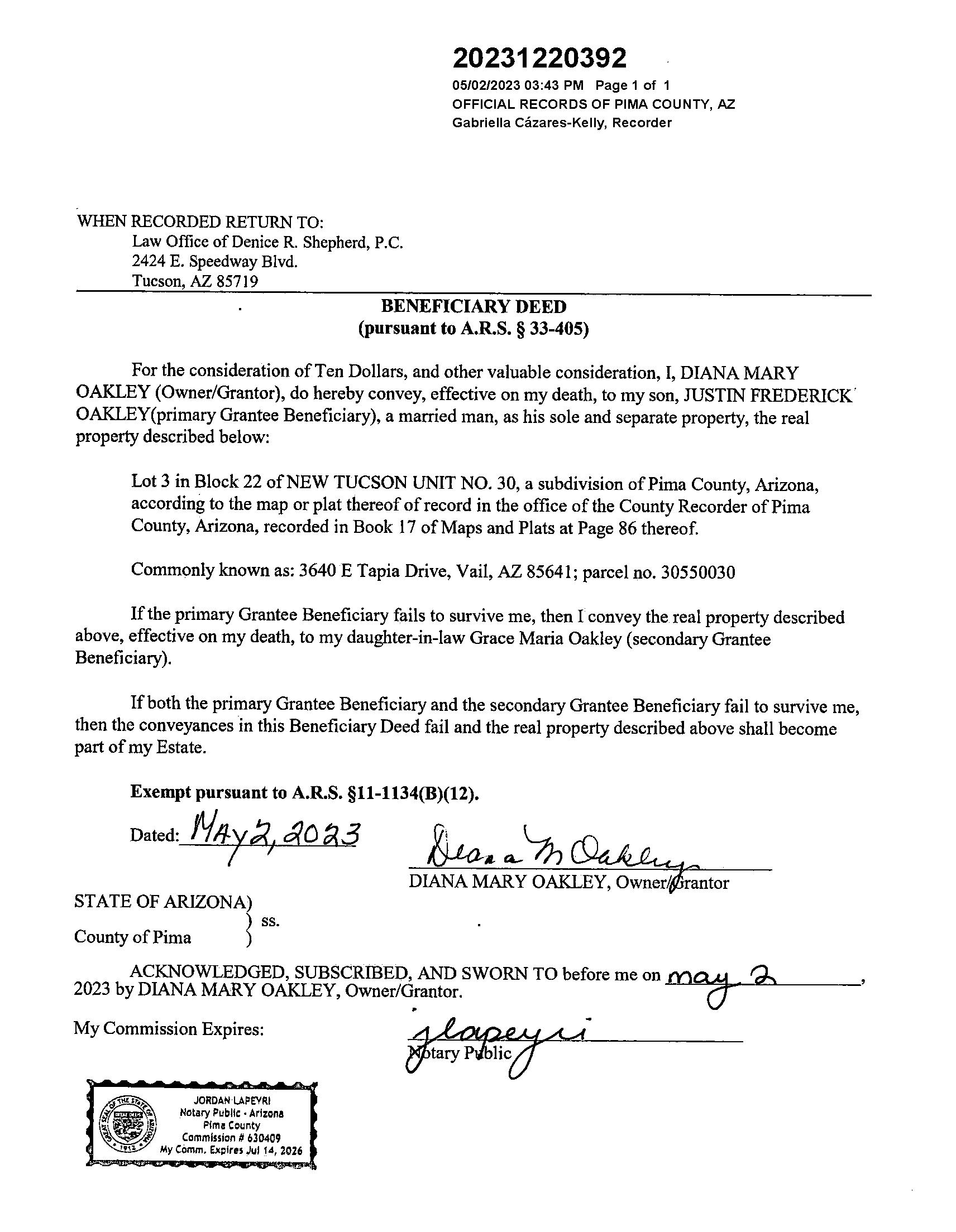 Subject Property : 3640 E Tapia Dr Vail AZ 85641