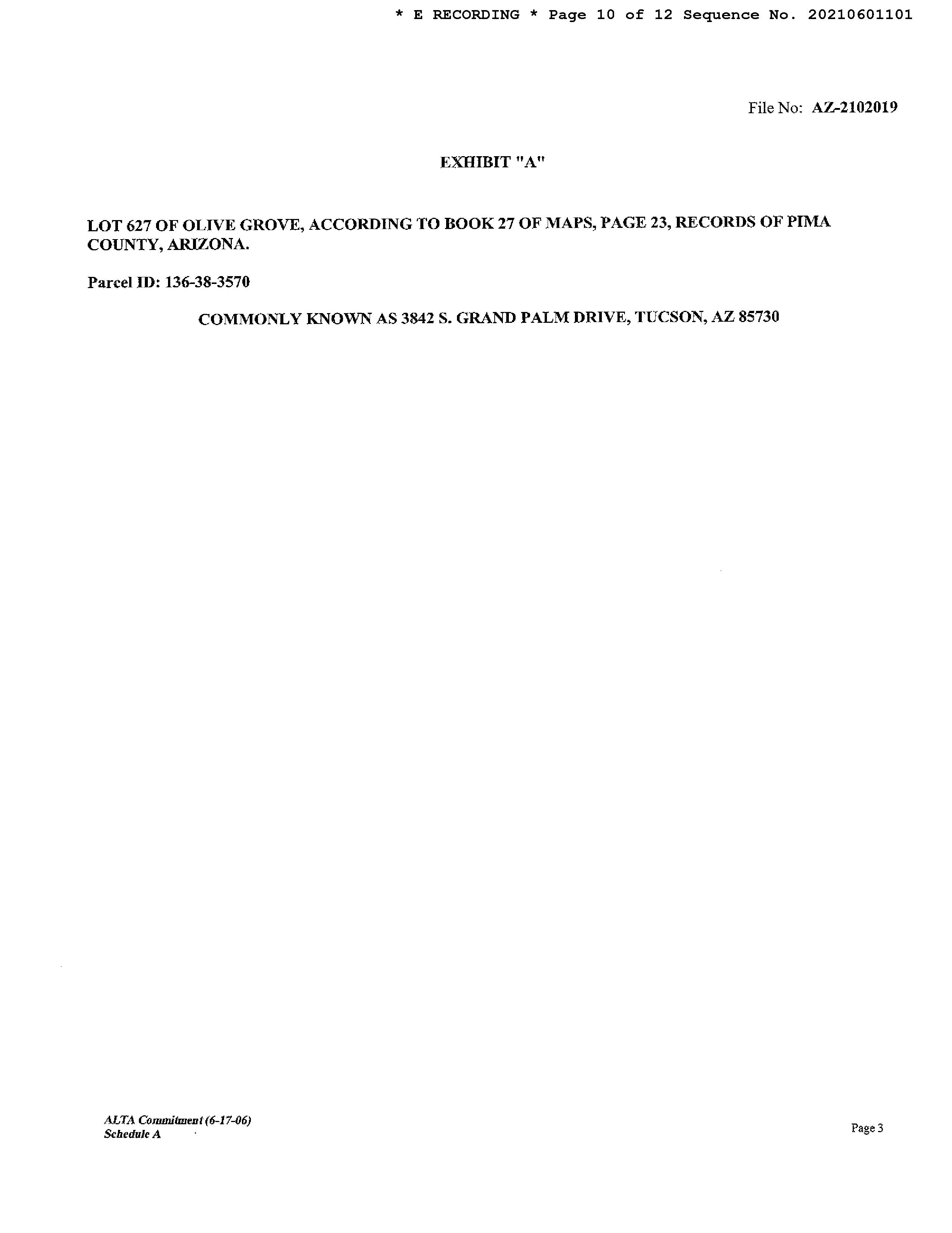 Subject Property : 3842 S Grand Palm Dr Tucson AZ 85730