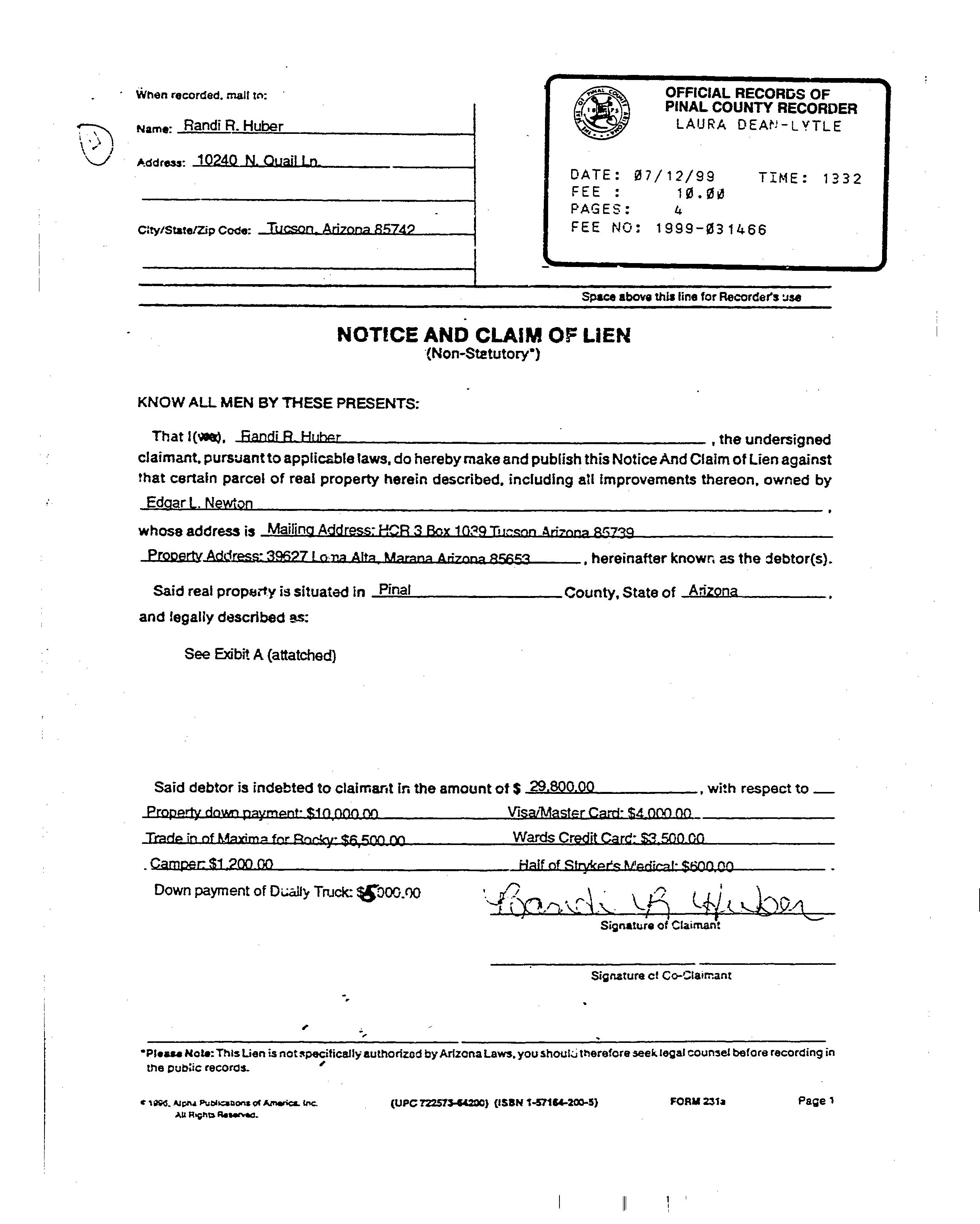 Rec. Date / Price: 10/07/1996 / $600 Living Area: #