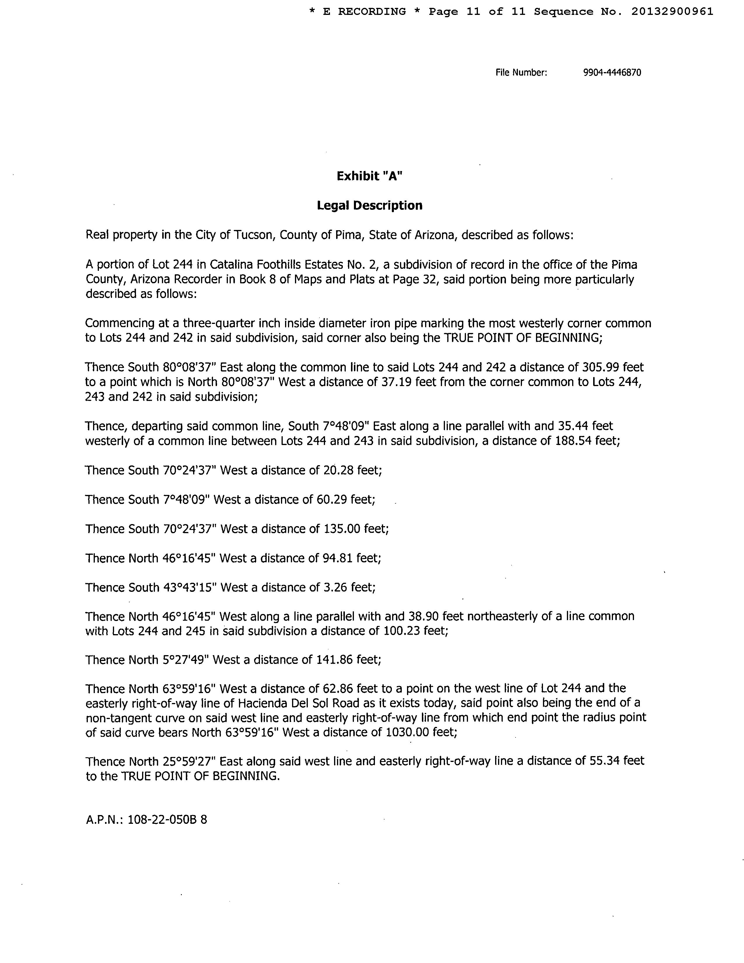 Legal Description : Catalina Foothills Estates No 2 Sly Ptn Lot 244 & Tri Pcl Lot 247