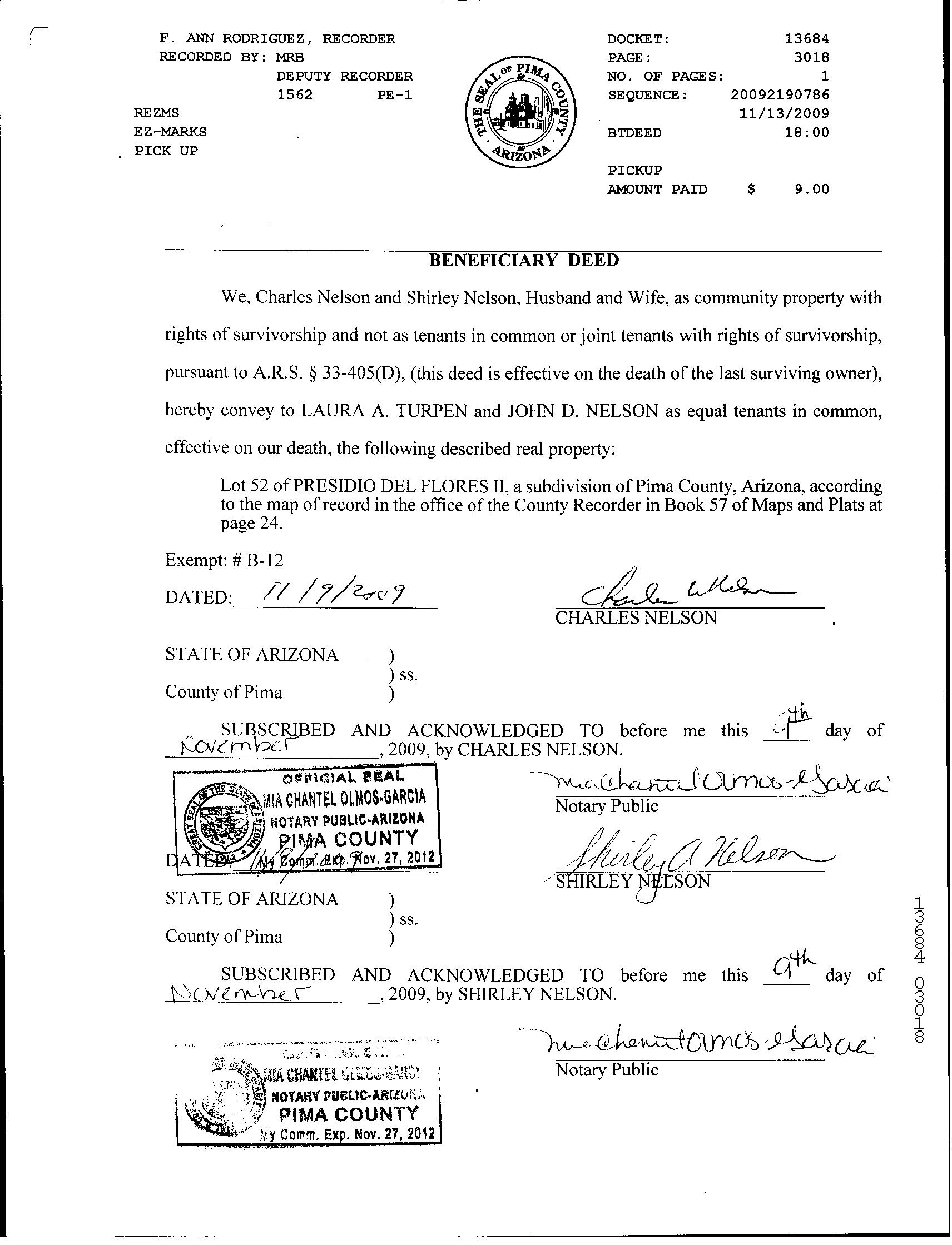 Mailing Address : 455 E Camino Rancho Redondo, Sahuarita AZ 85629-8132 R006