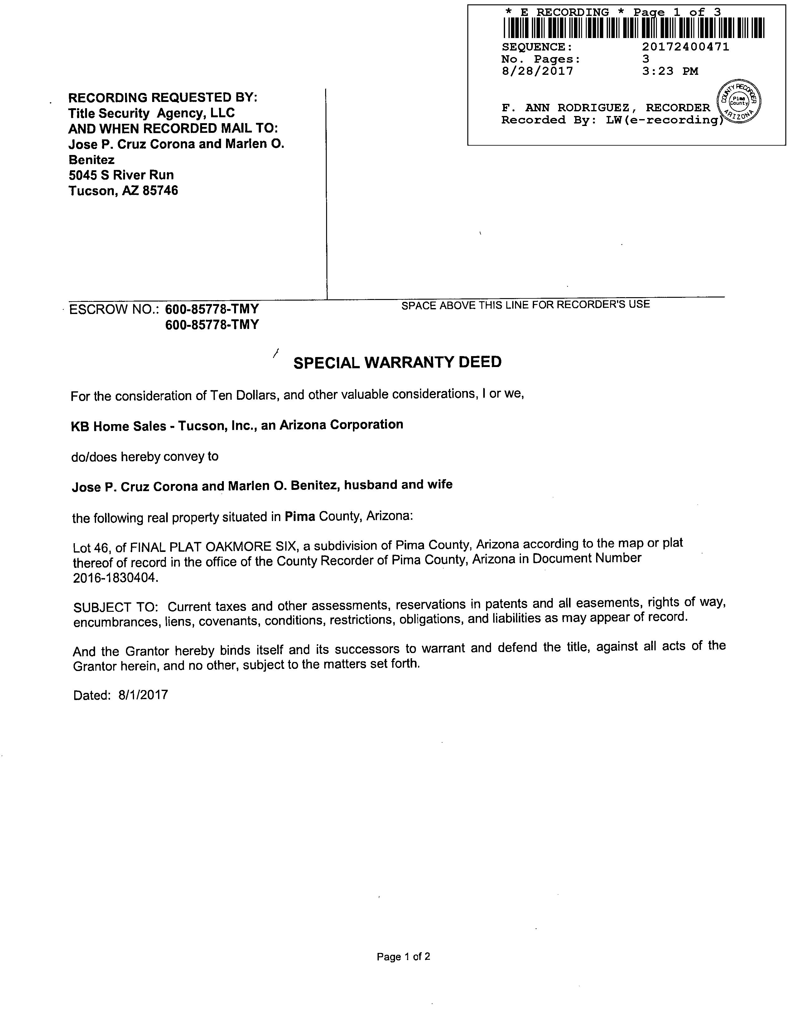 Subject Property : 5045 S River Run Dr Tucson AZ 85746