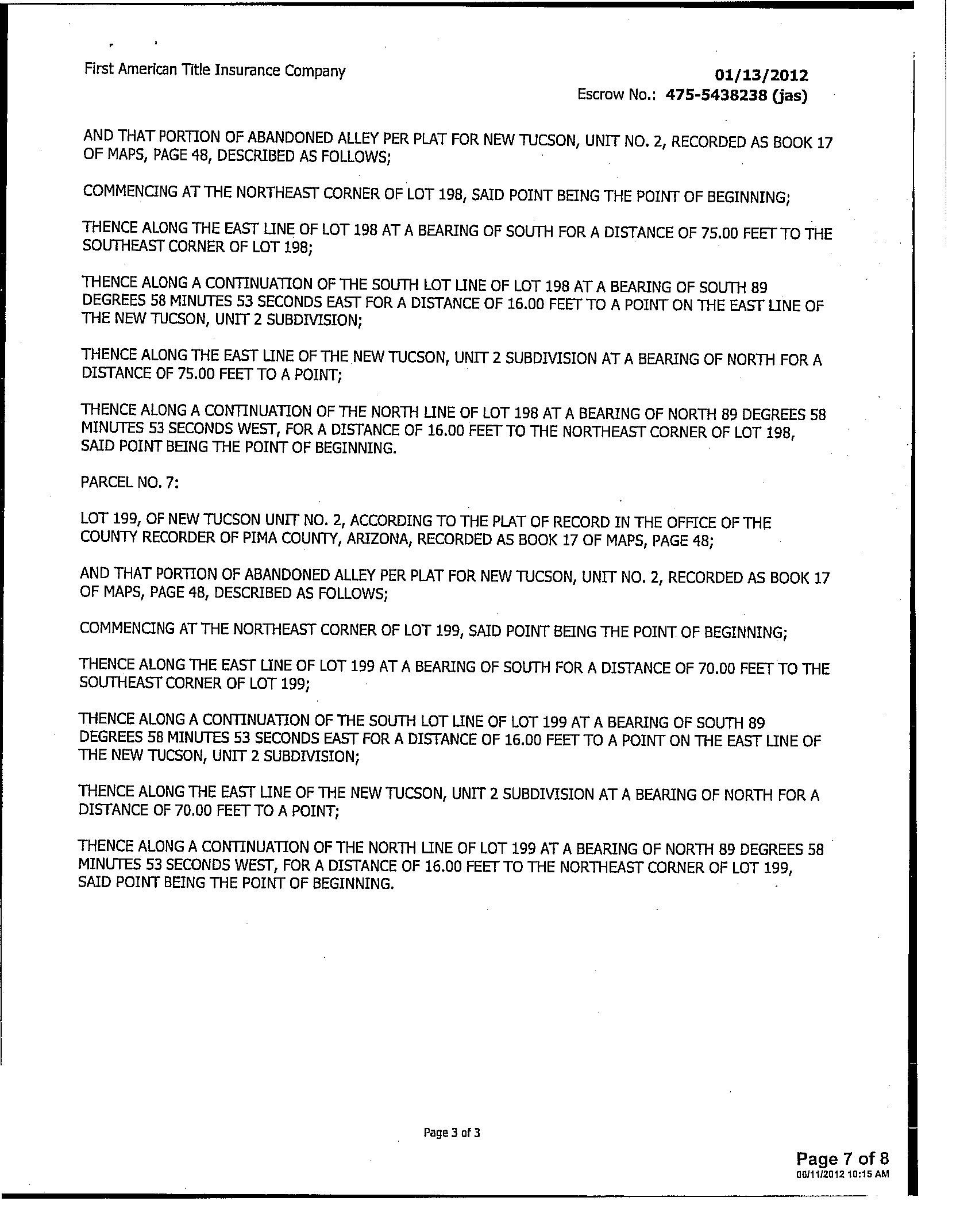 Legal Description : New Tucson Unit No 2 Lot 136 & Ptn Alleyway