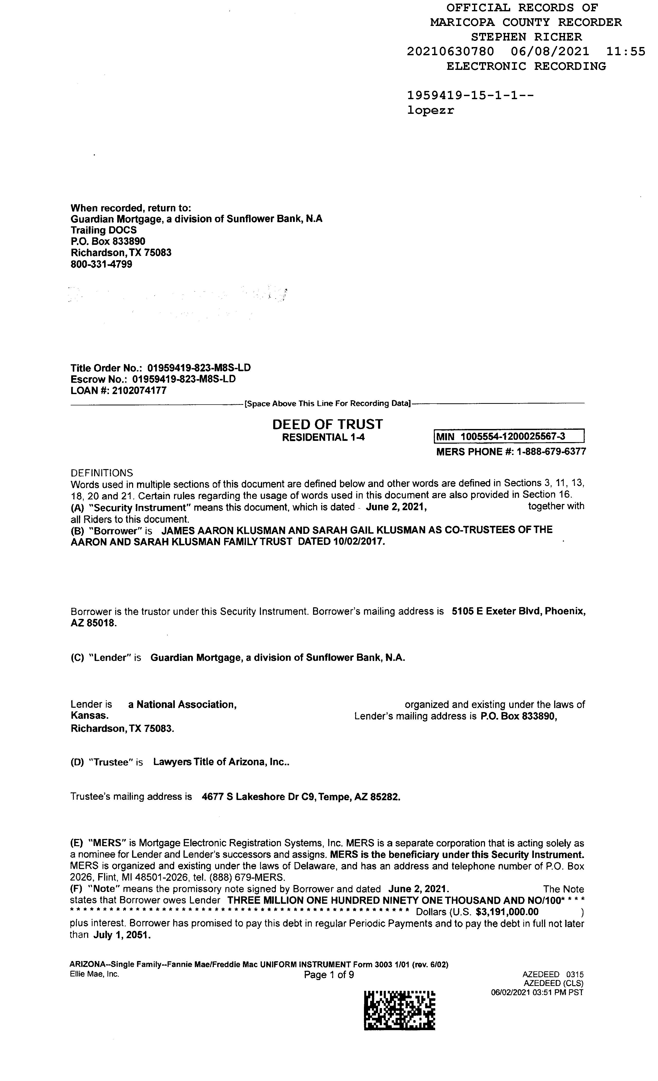 Sale Price : $3,875,000 1st Mtg Document # : 208464