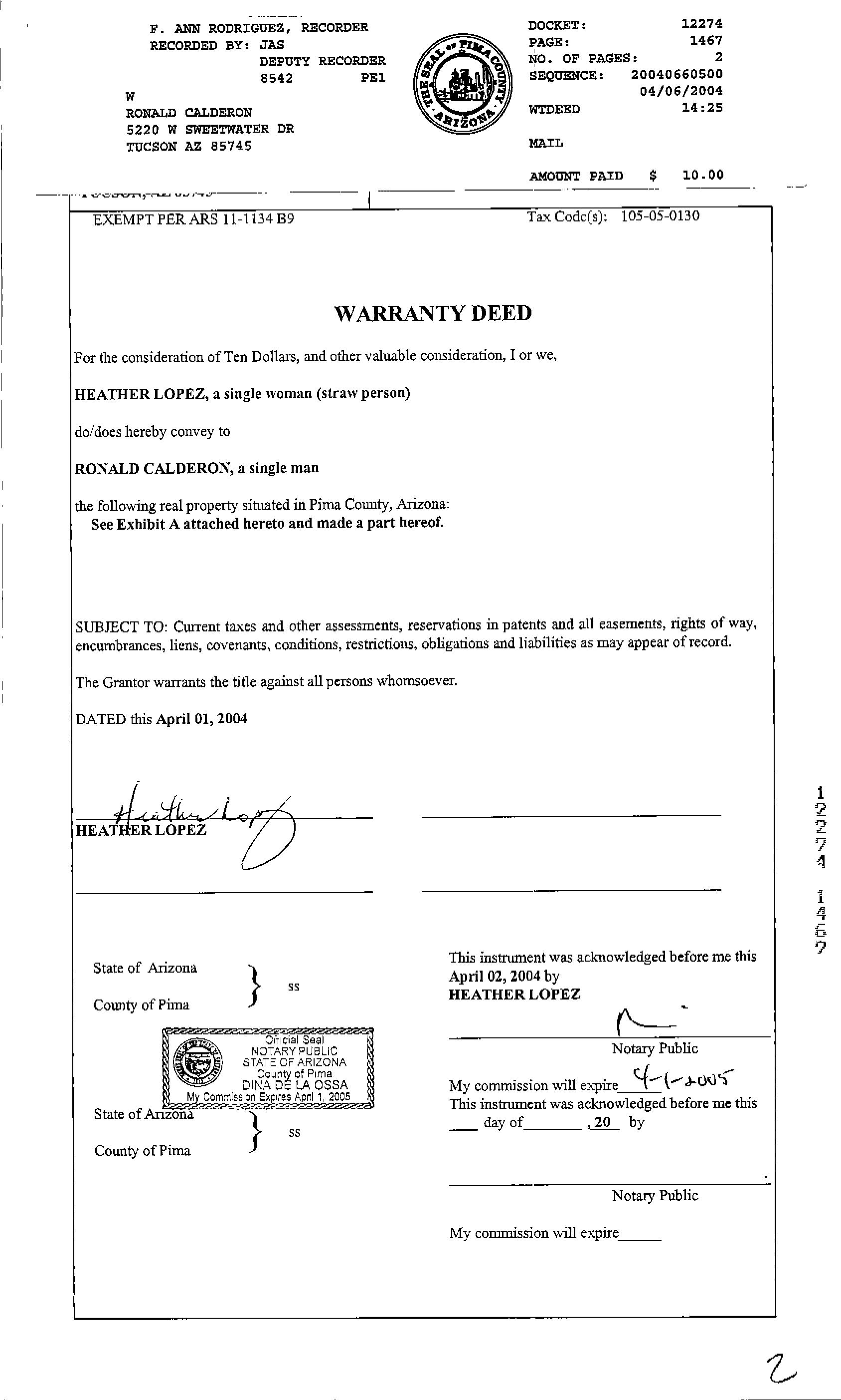 Owner Name: Calderon Ron / APN / Alternate APN: 105-05-013D /105-05-013A