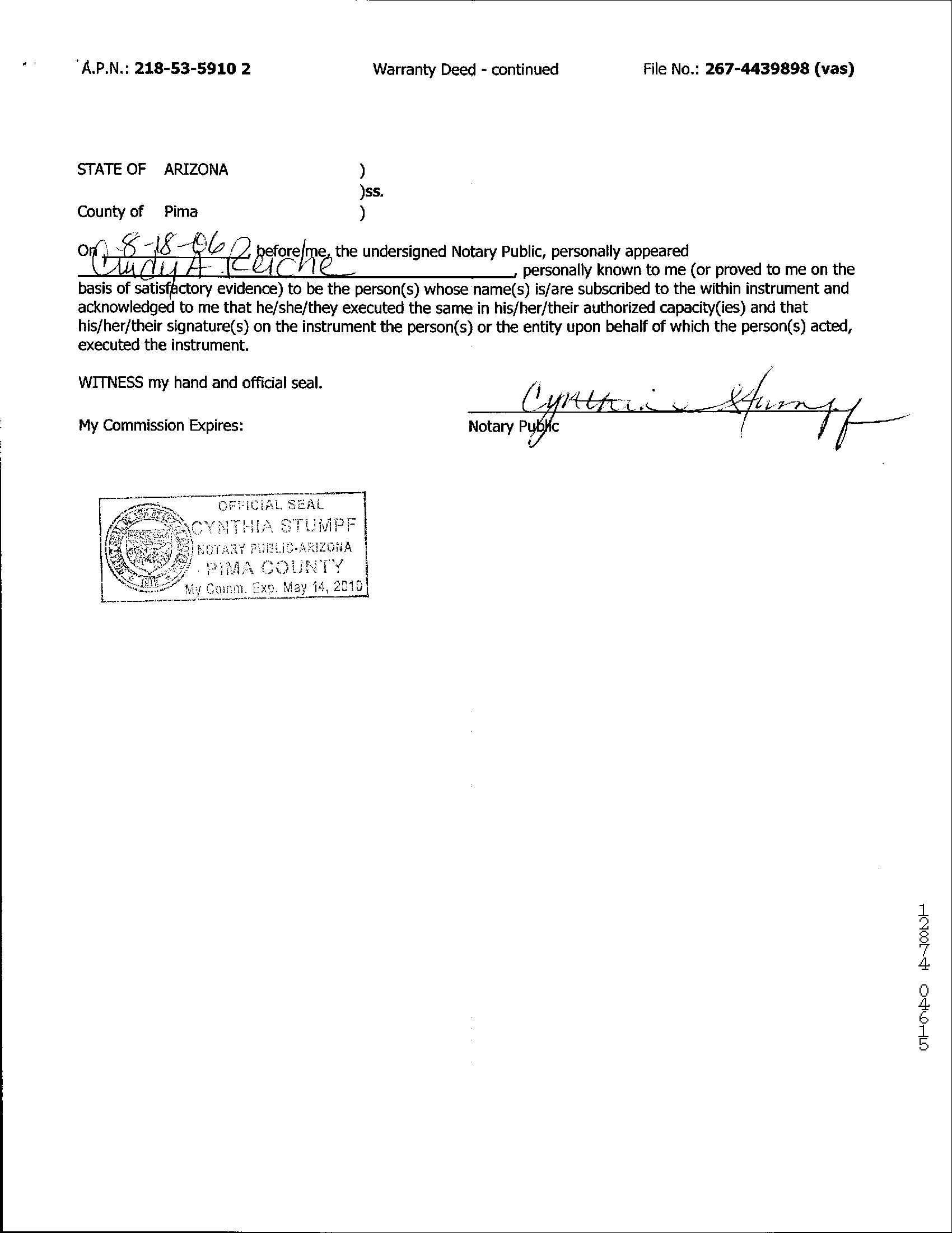 Mailing Address : 5434 W Winding Desert Dr, Marana AZ 85658-4149 H009