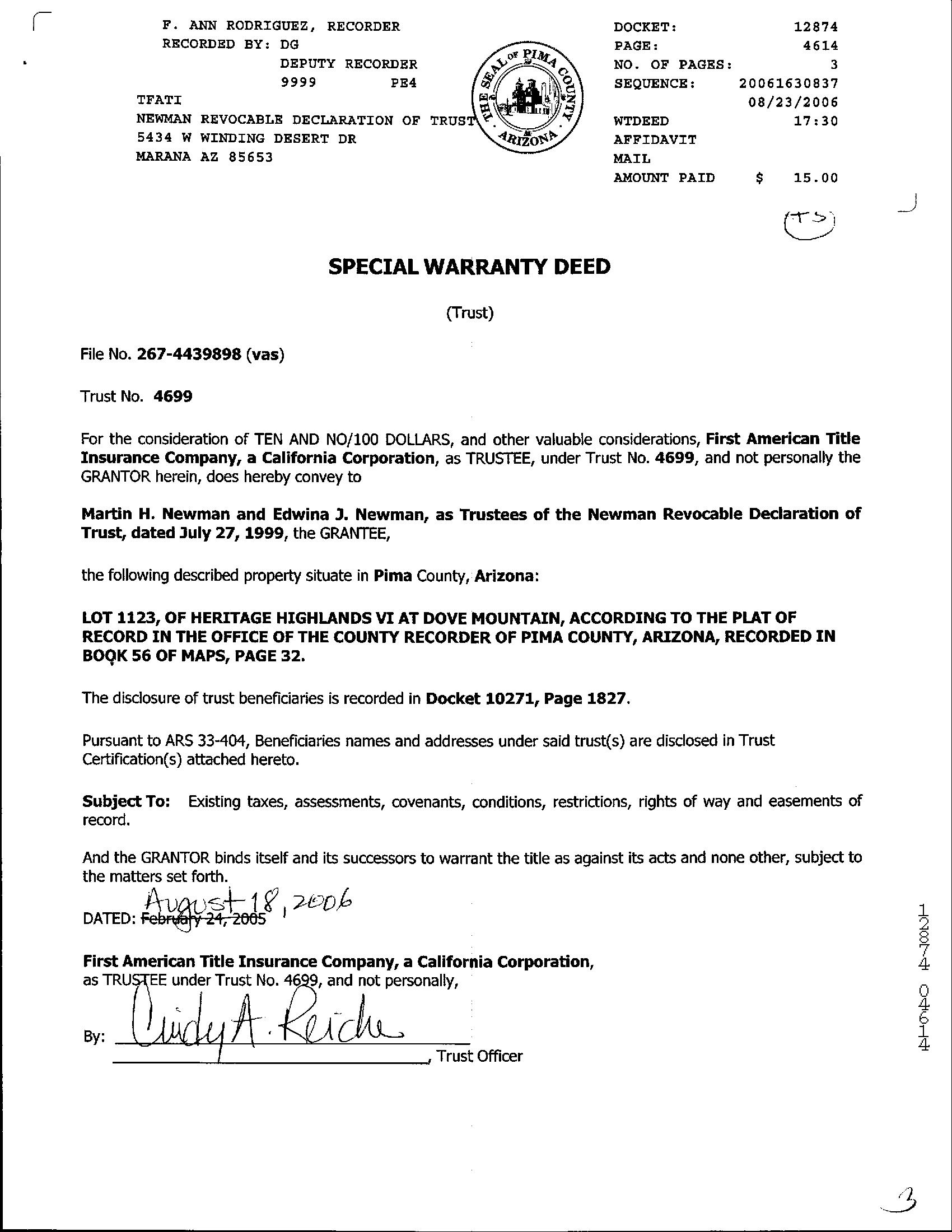 Owner Name: Newman Declaration Of Tr / APN / Alternate APN: 218-53-5910 / Deed Type: Special Warranty Deed