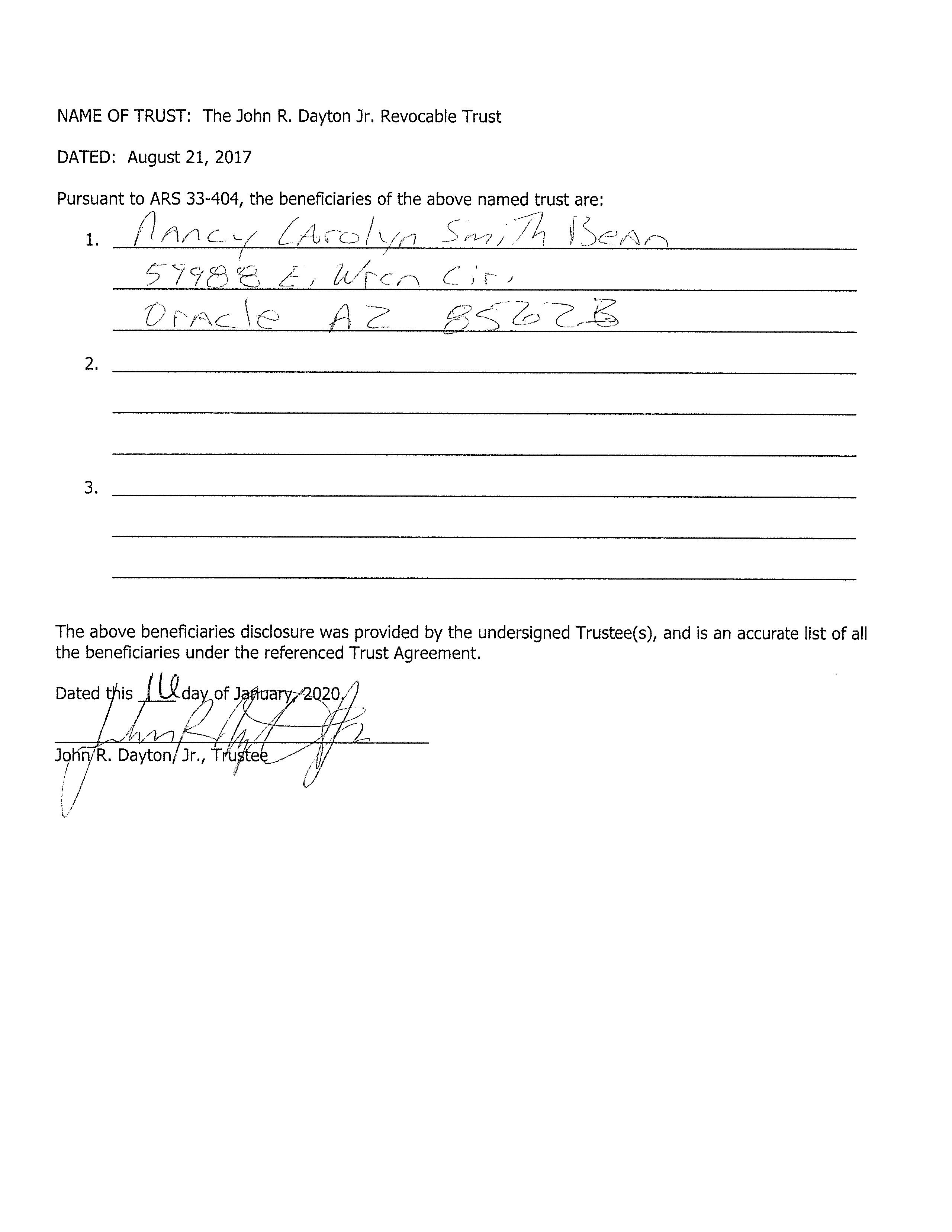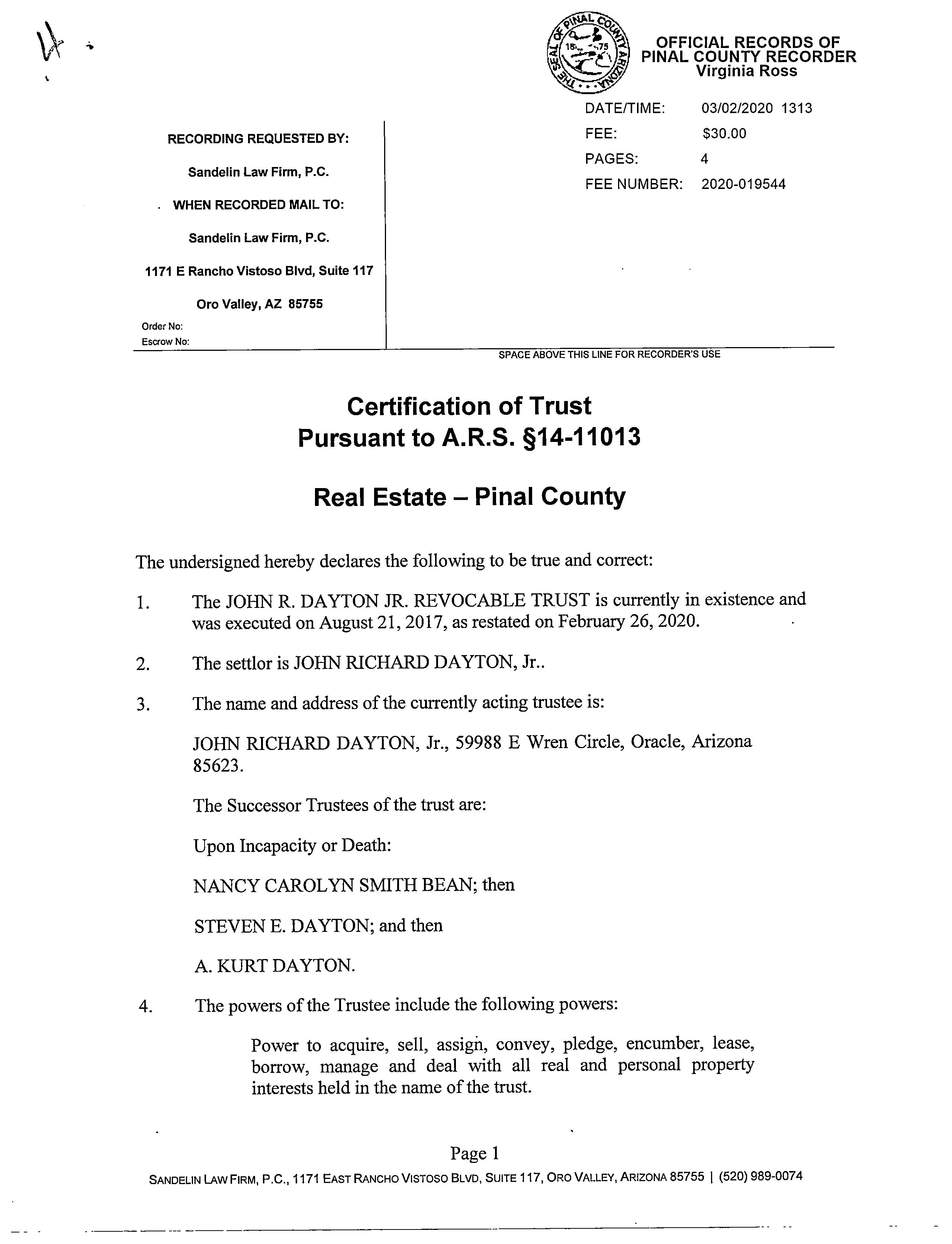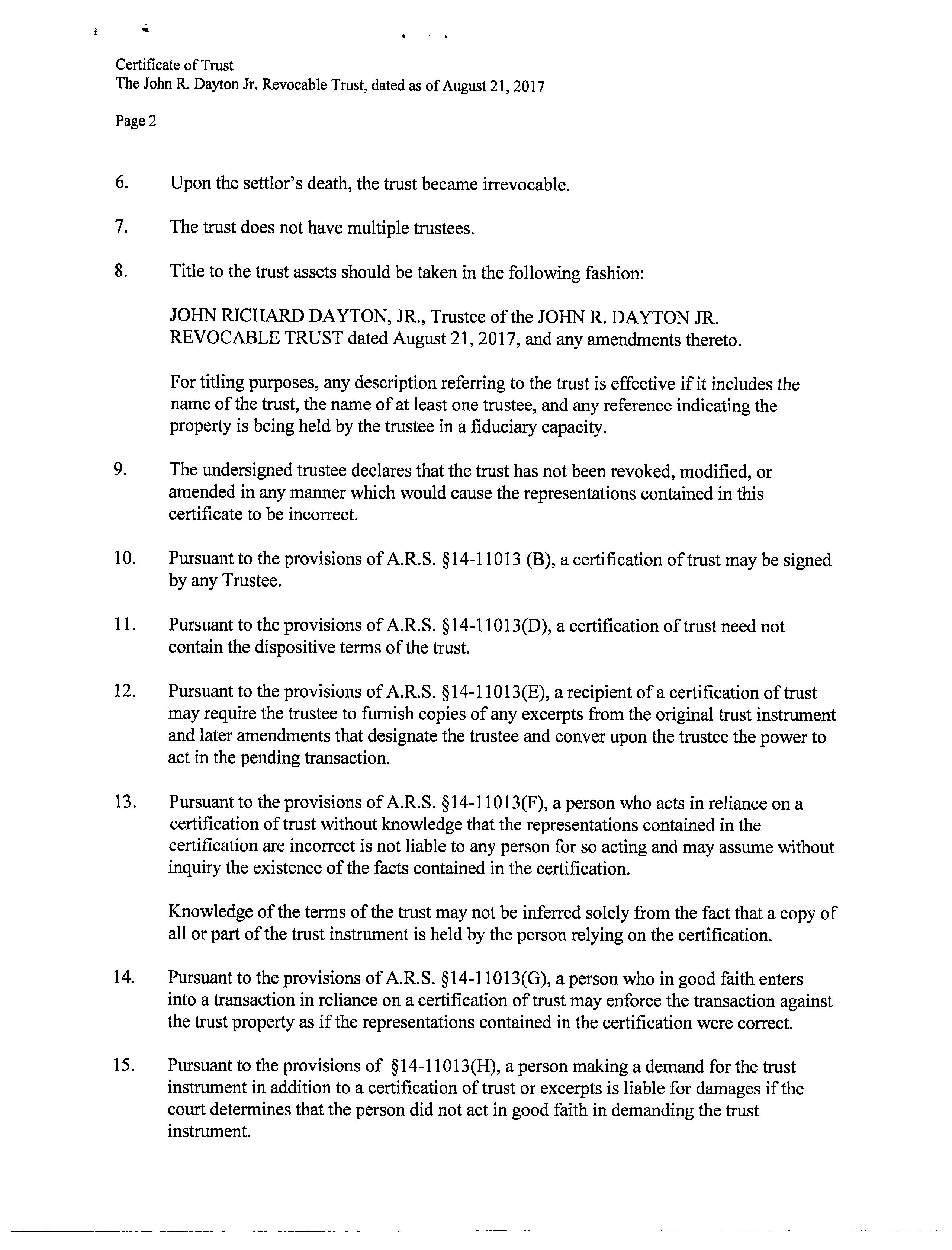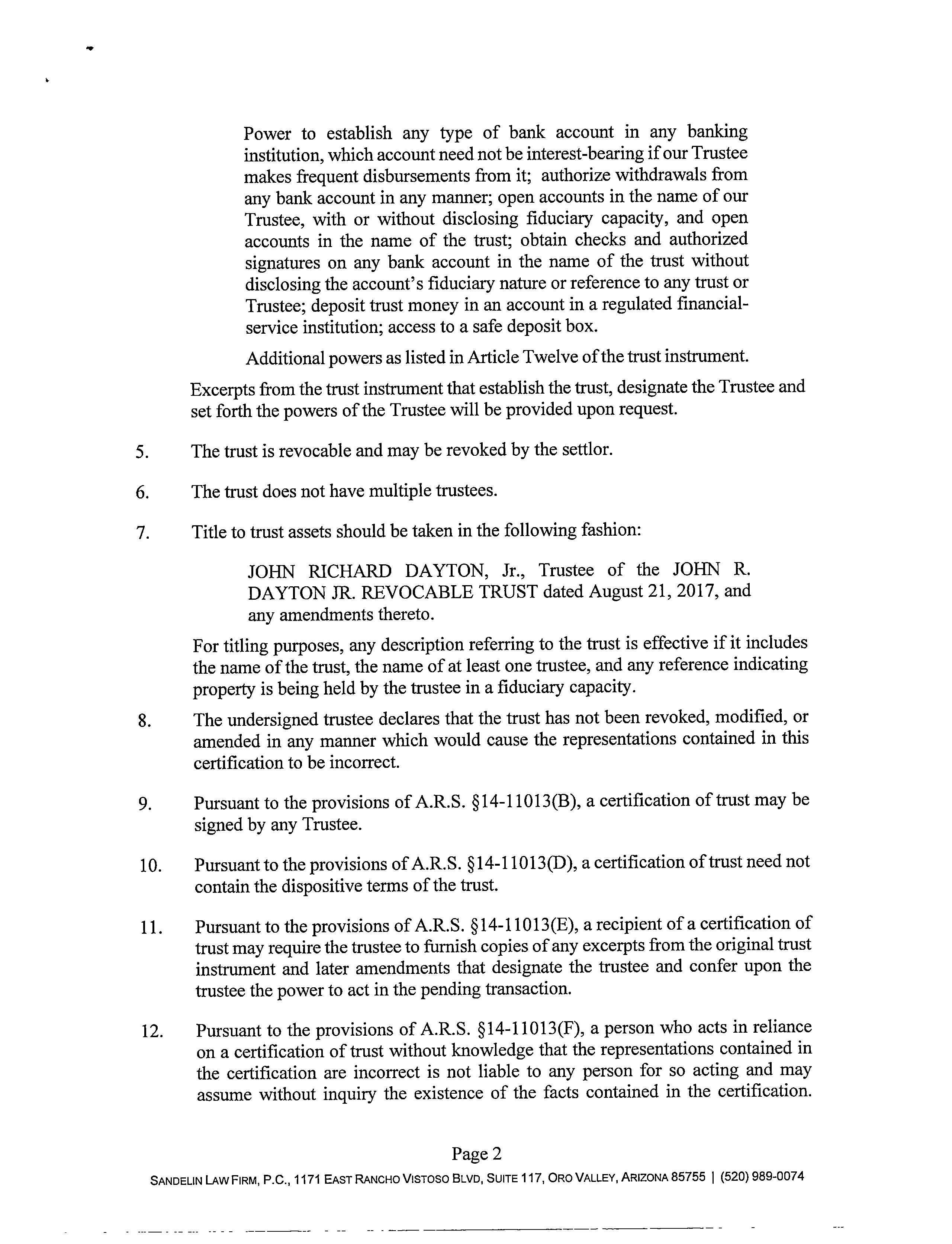 Vesting Codes : / / Revocable Trust