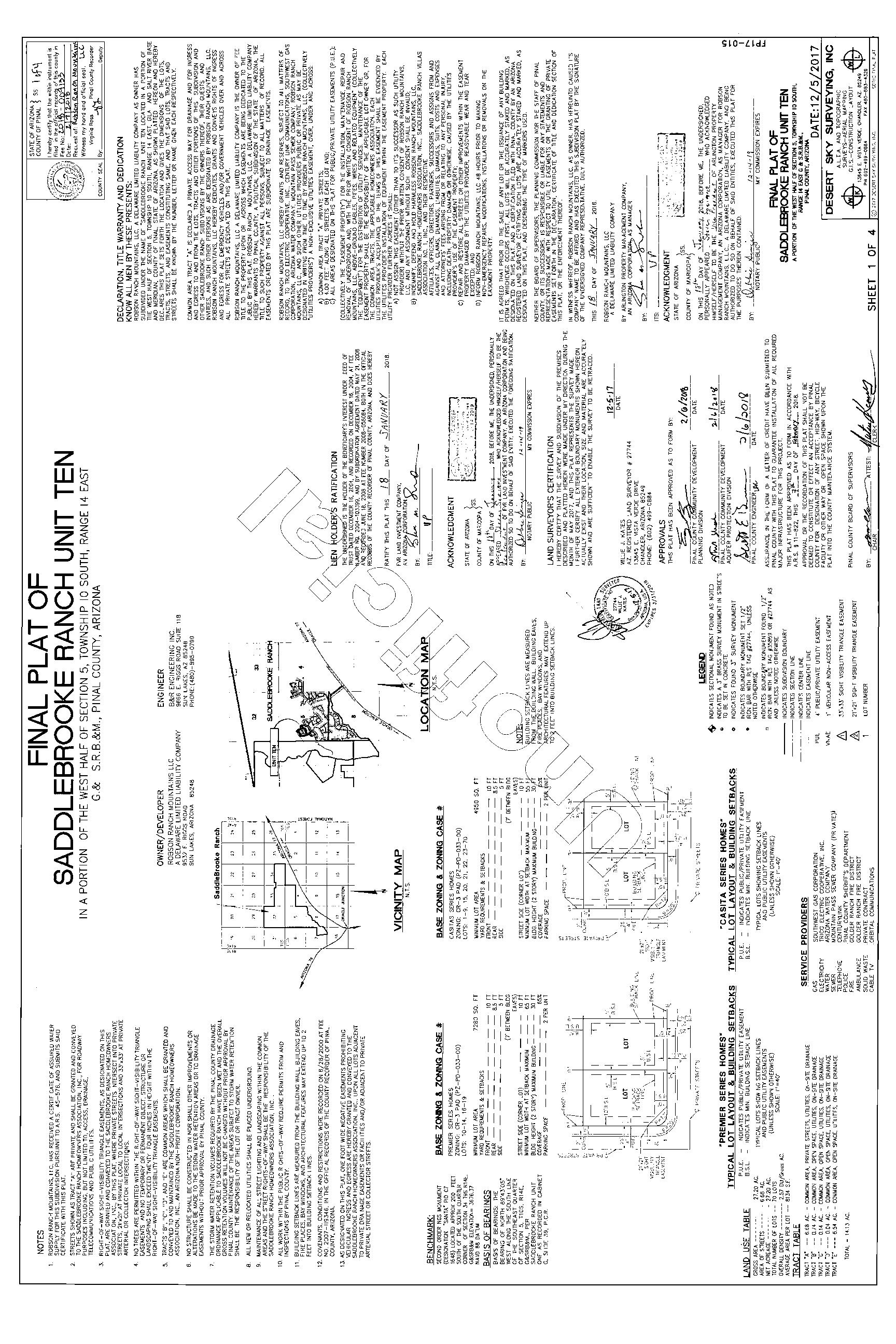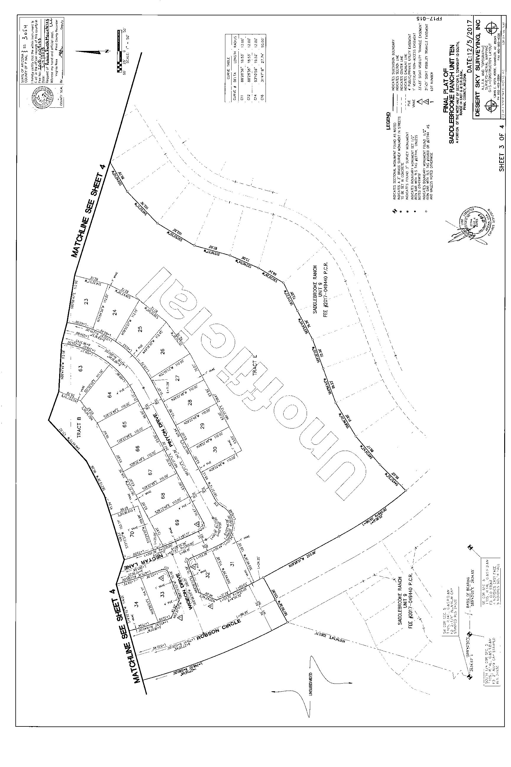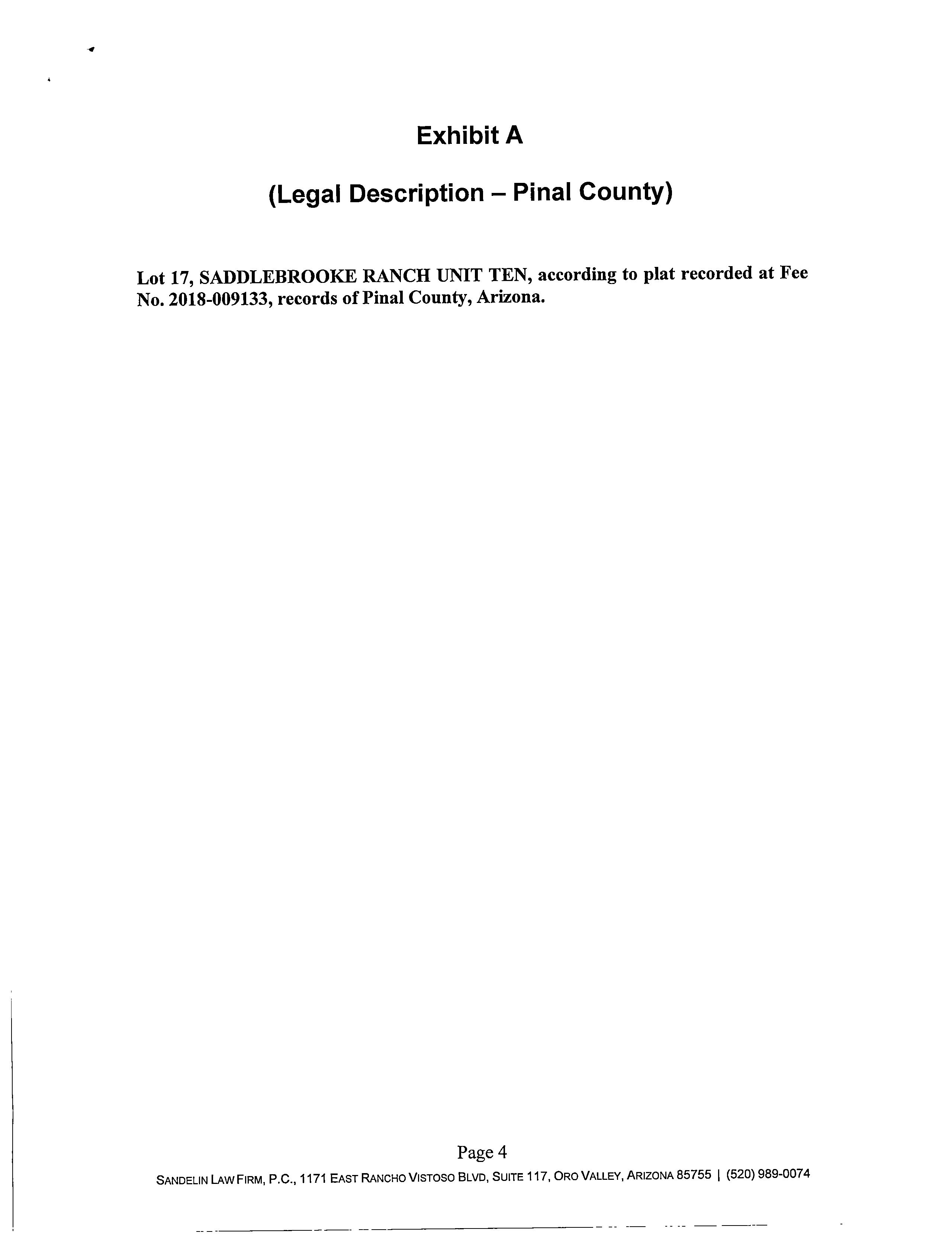 Legal Description : Lot 17 Of Saddlebrooke Ranch Unit Ten According To The Plat Of Record In The Office Of The Pinal County Recorder, Arizona, Recorded In Fee No. 2018-009133, Located In Section 05, Township 10 South, Range 14 East, 14,083.31 Square Feet 0.32 Acres