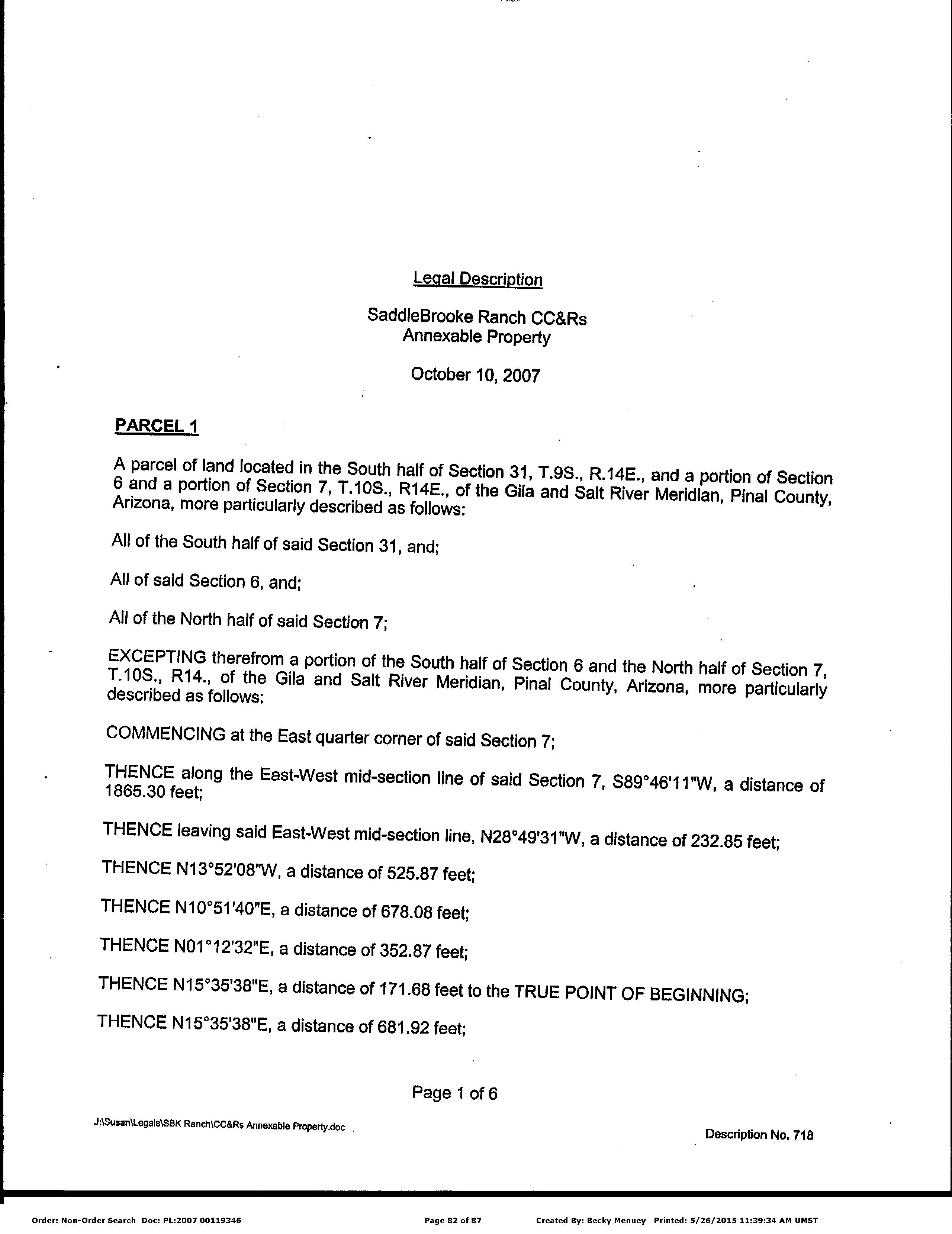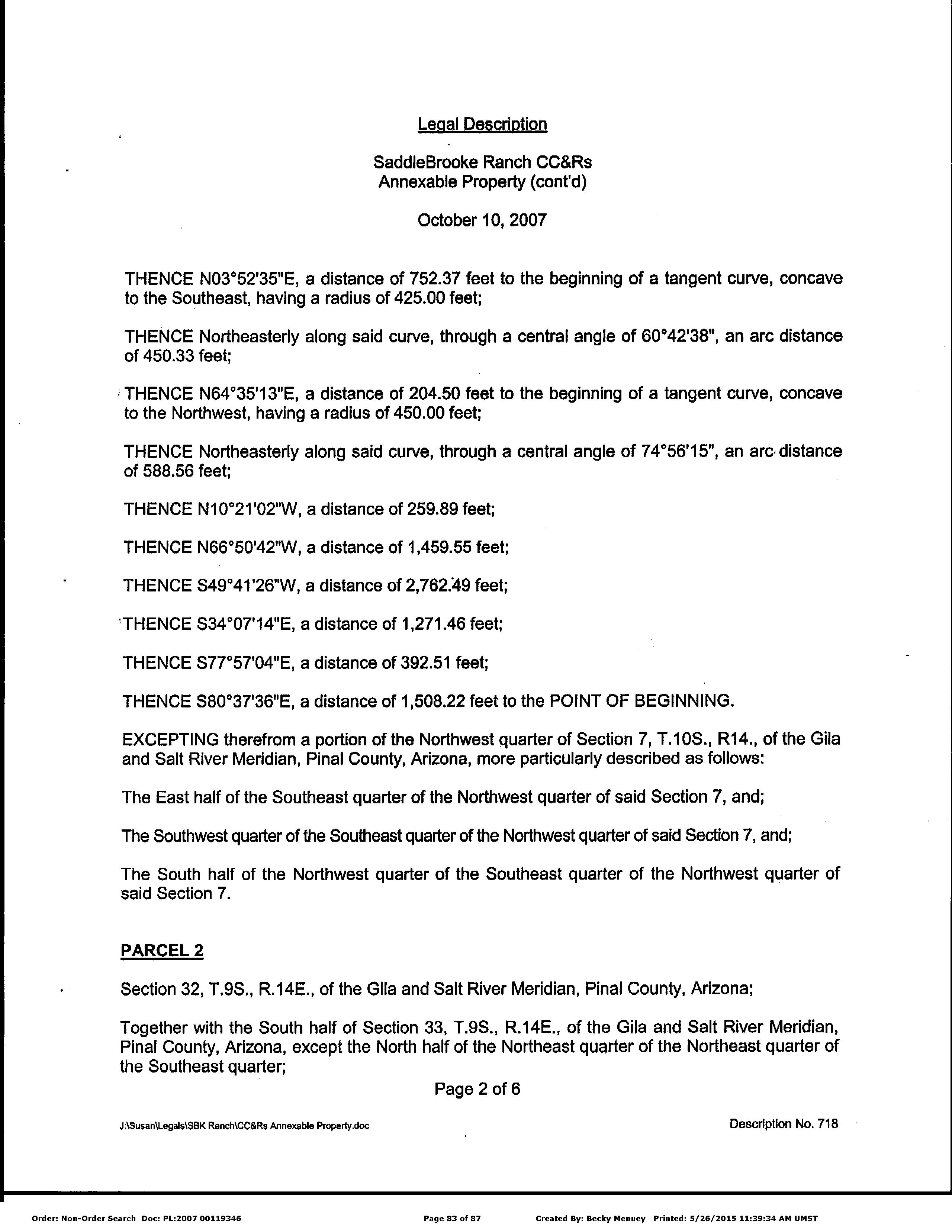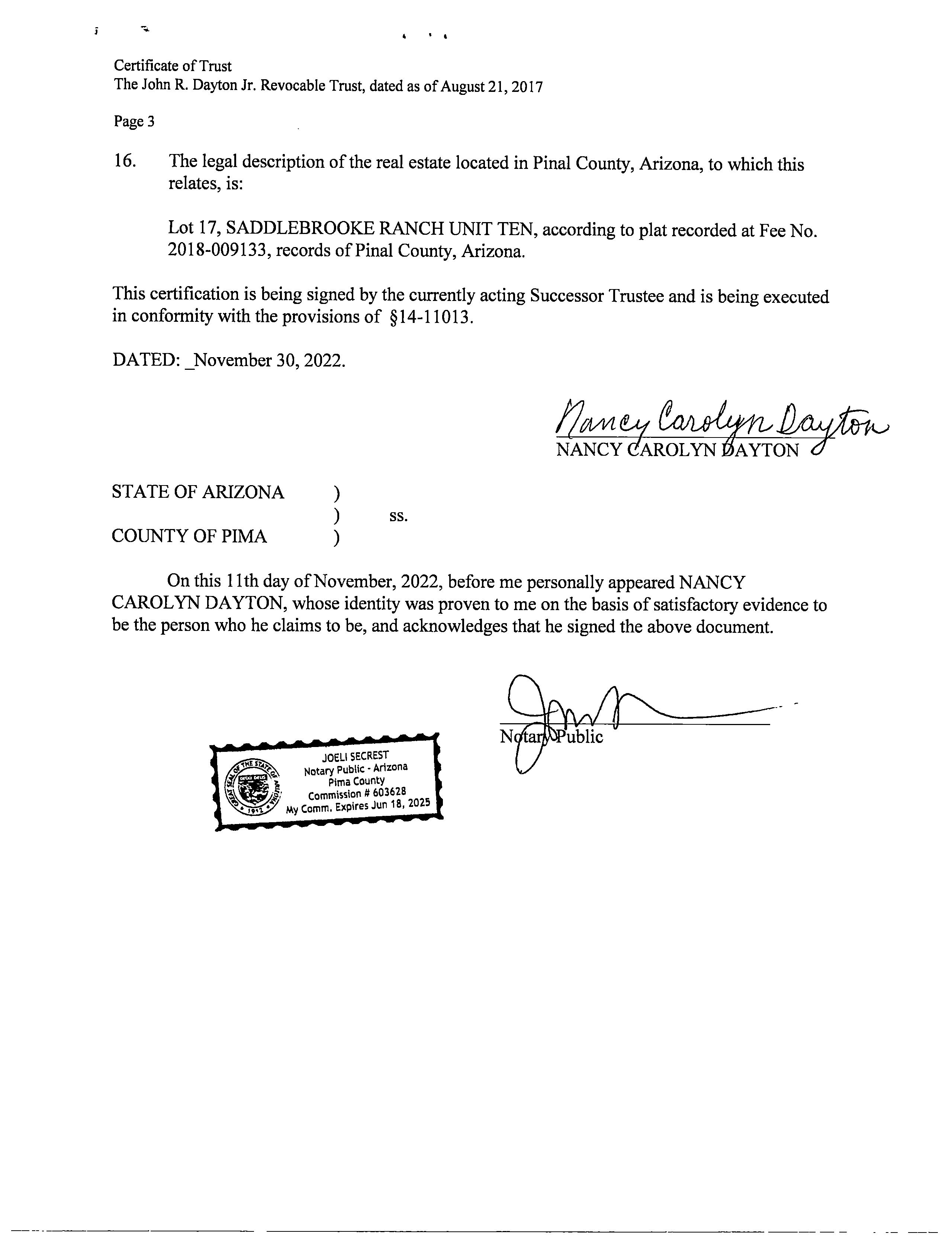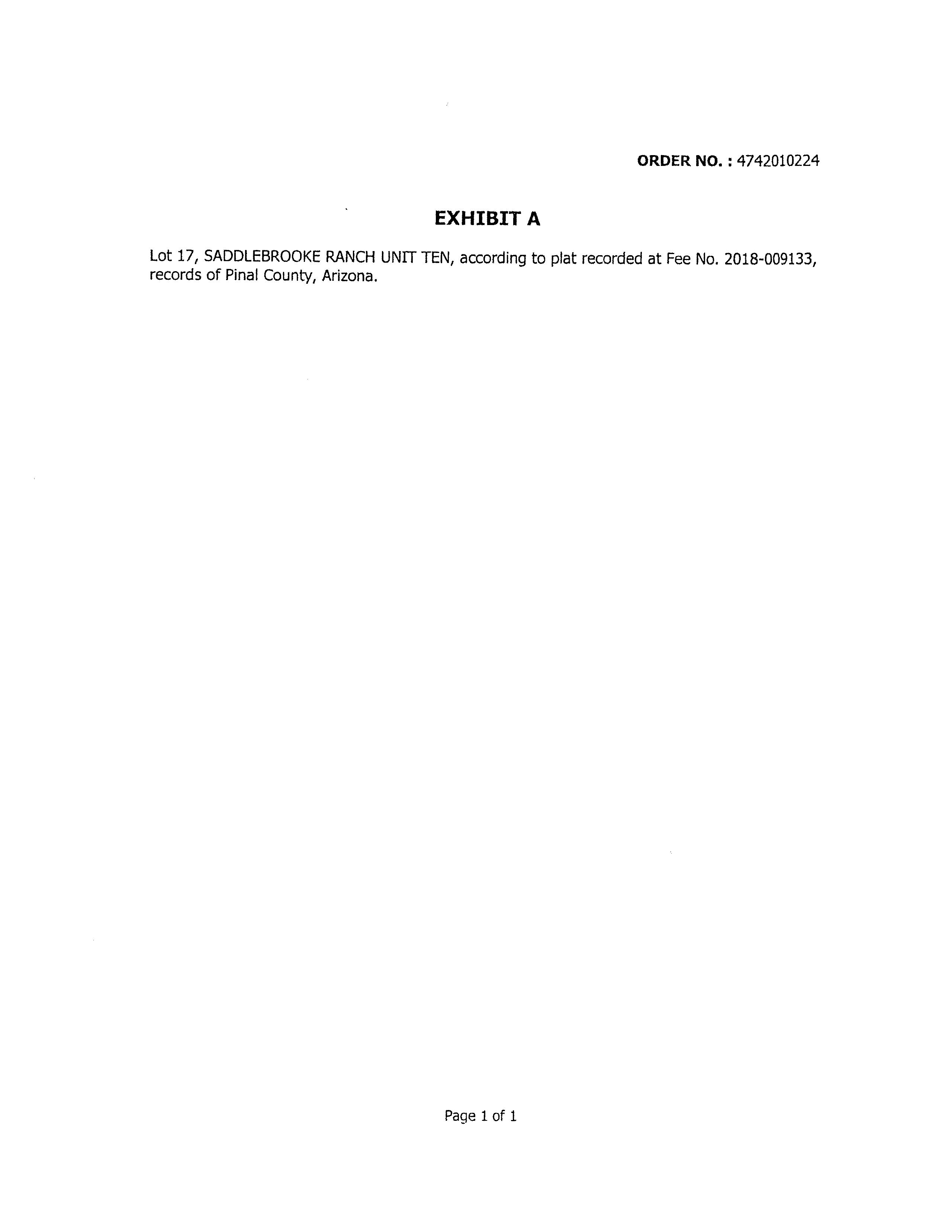 Legal Description : Lot 17 Of Saddlebrooke Ranch Unit Ten According To The Plat Of Record In The Office Of The Pinal County Recorder, Arizona, Recorded In Fee No. 2018-009133, Located In Section 05, Township 10 South, Range 14 East, 14,083.31 Square Feet 0.32 Acres