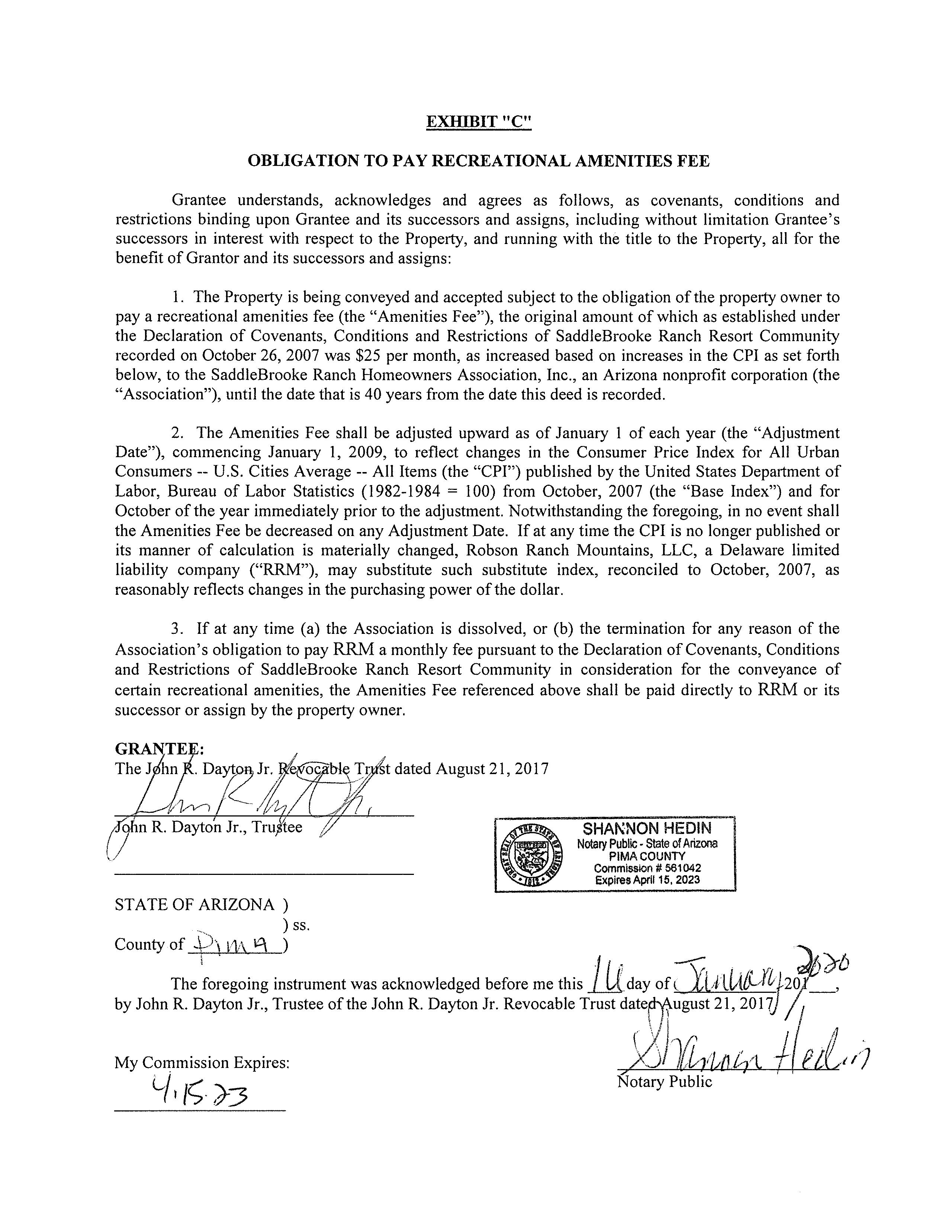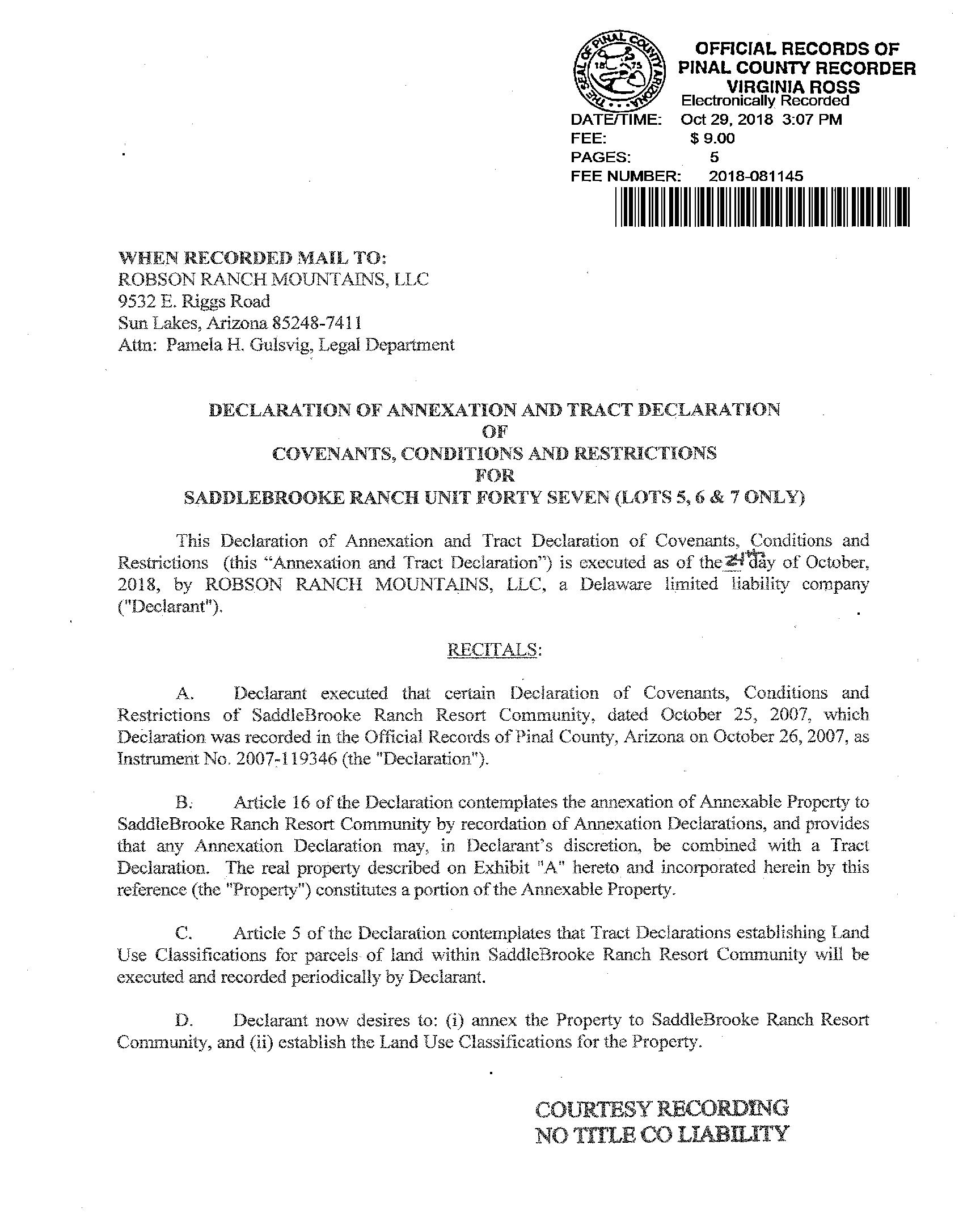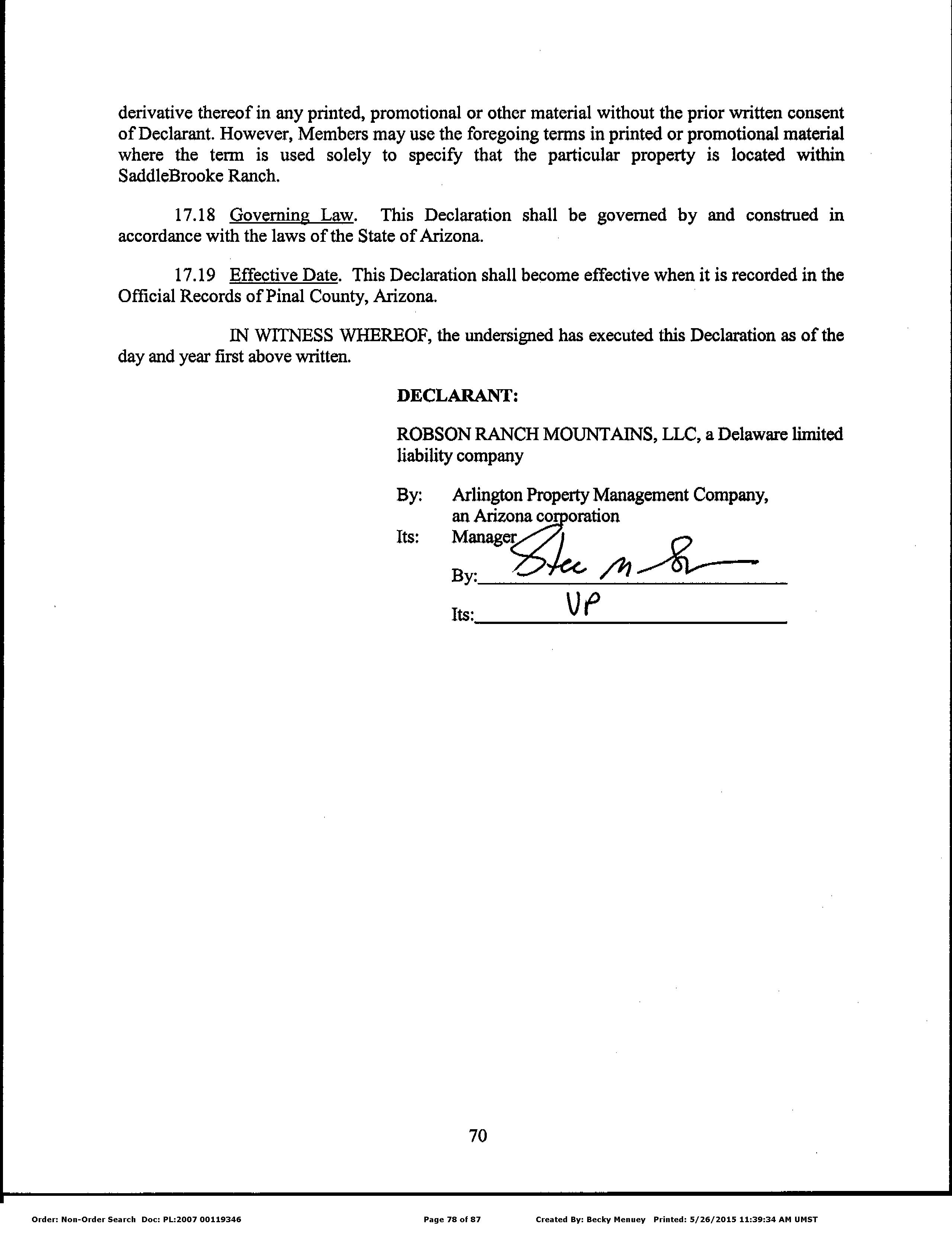 Seller Name : Robson Ranch Mountains Llc