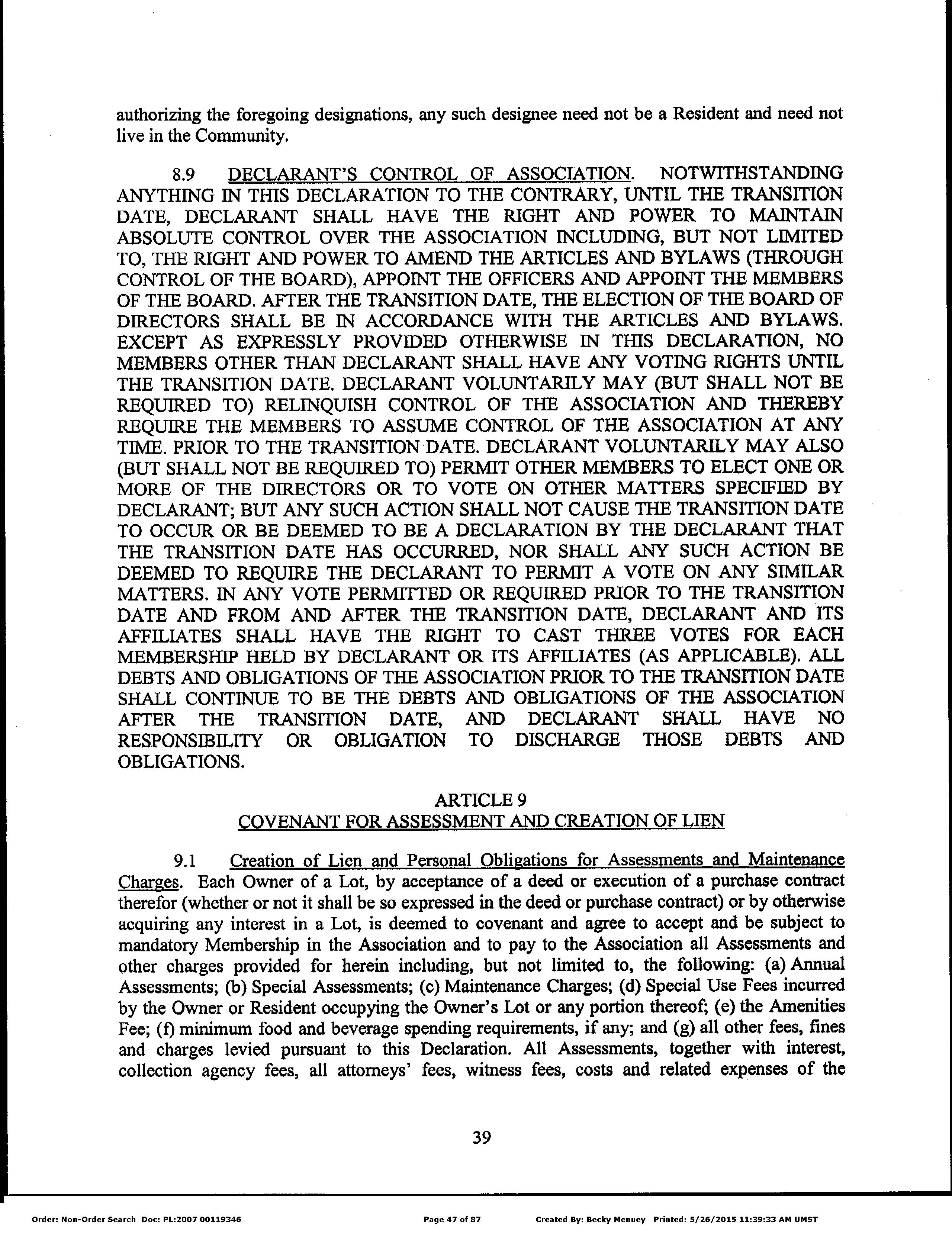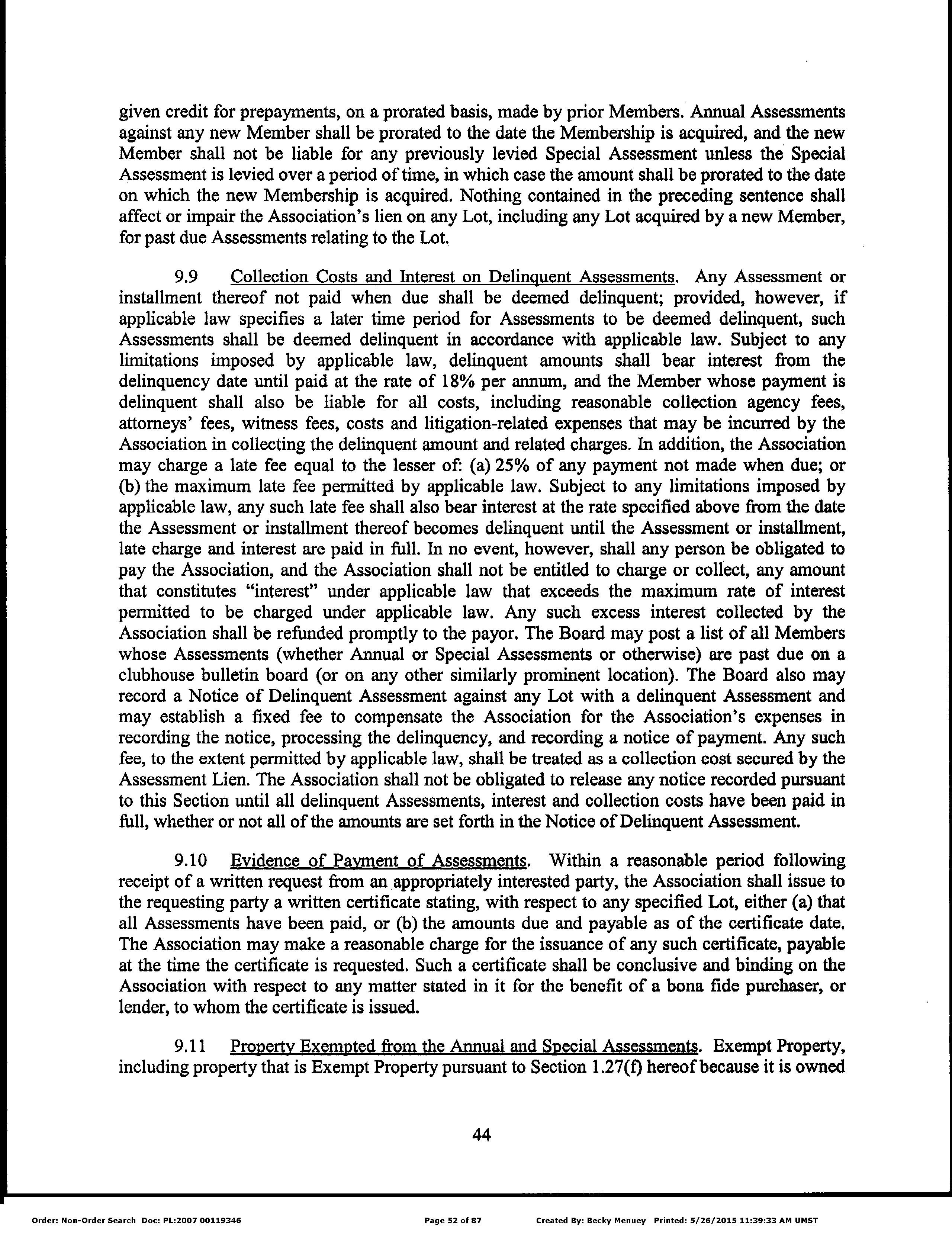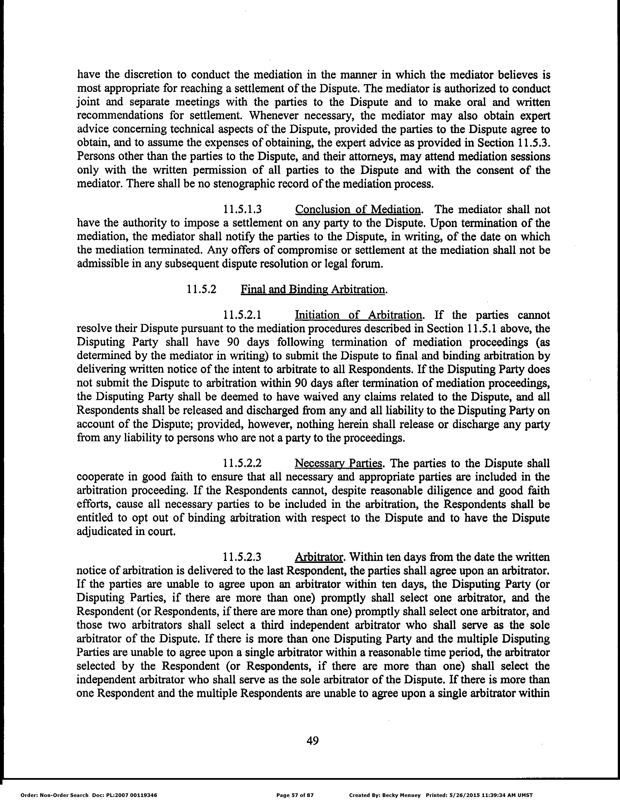 Seller Name : Robson Ranch Mountains Llc