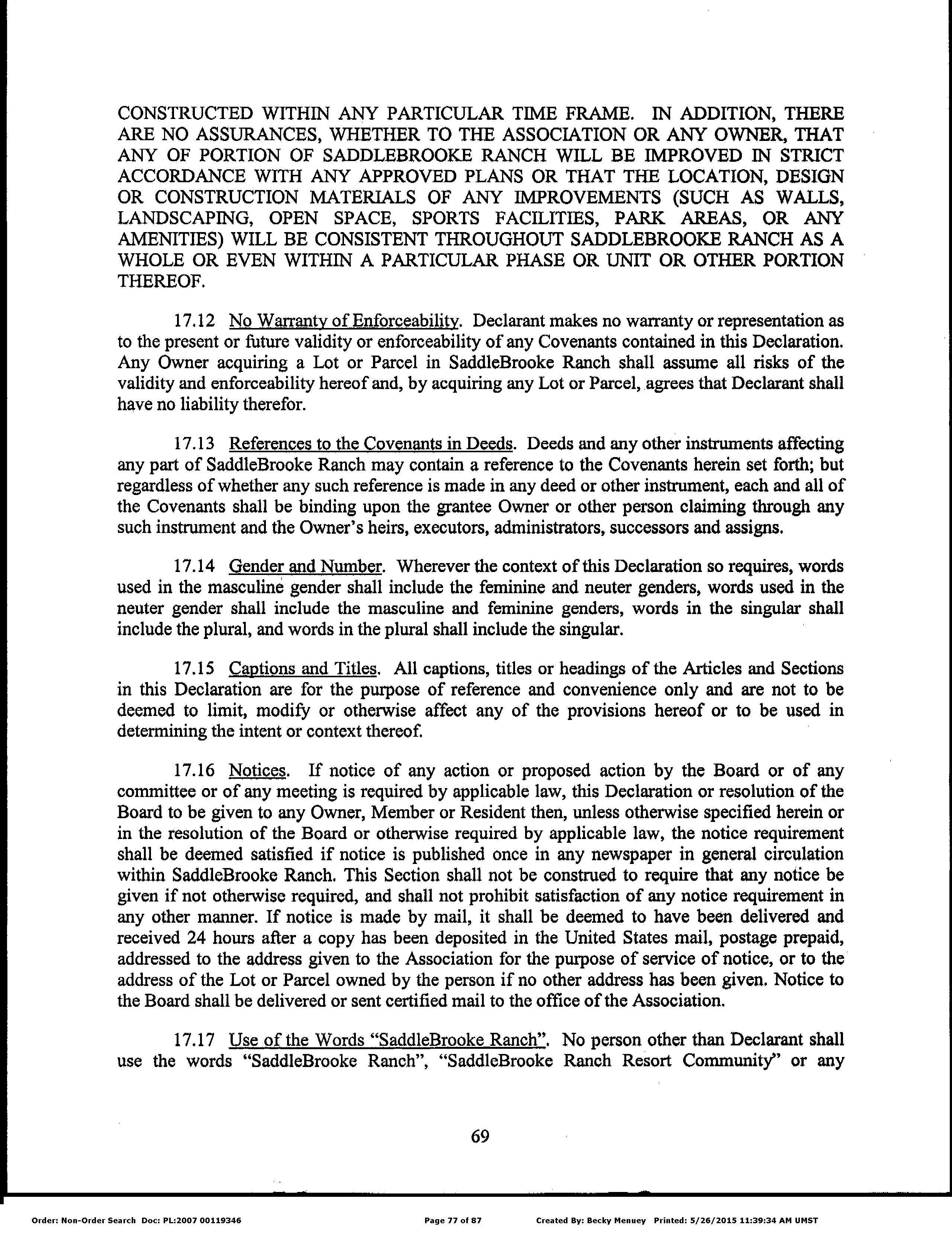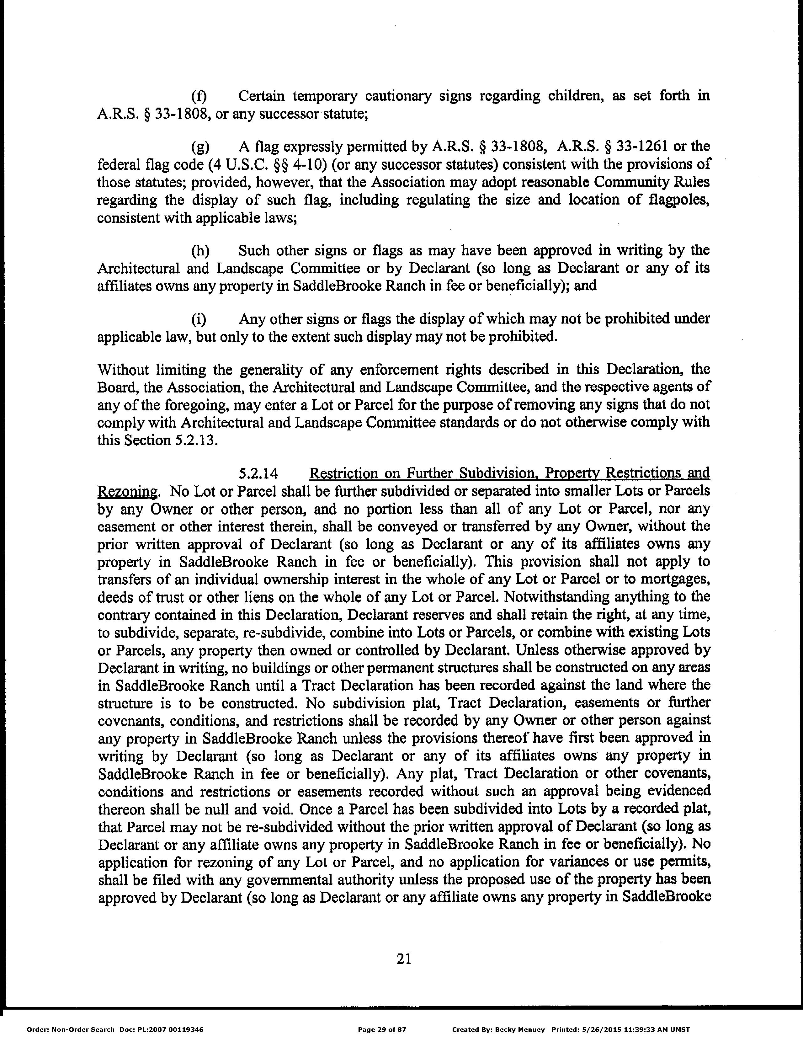 Subdivision : Saddlebrooke Ranch