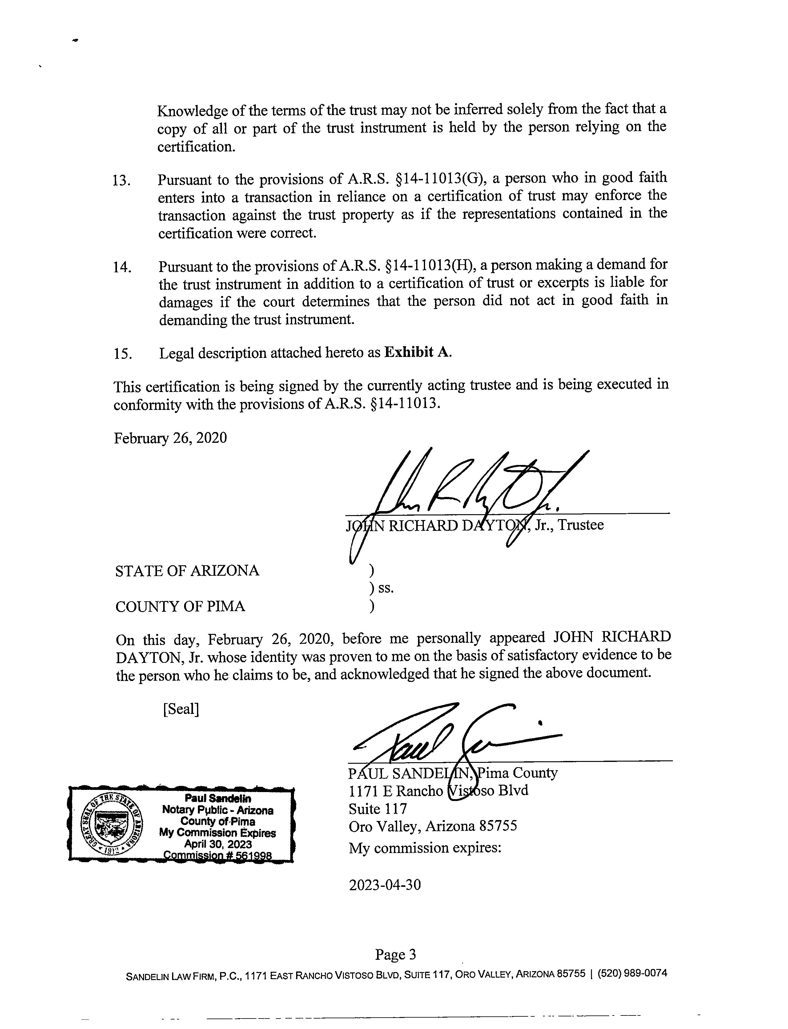 Mailing Address : 59988 E Wren Cir, Oracle AZ 85623-0060 H003