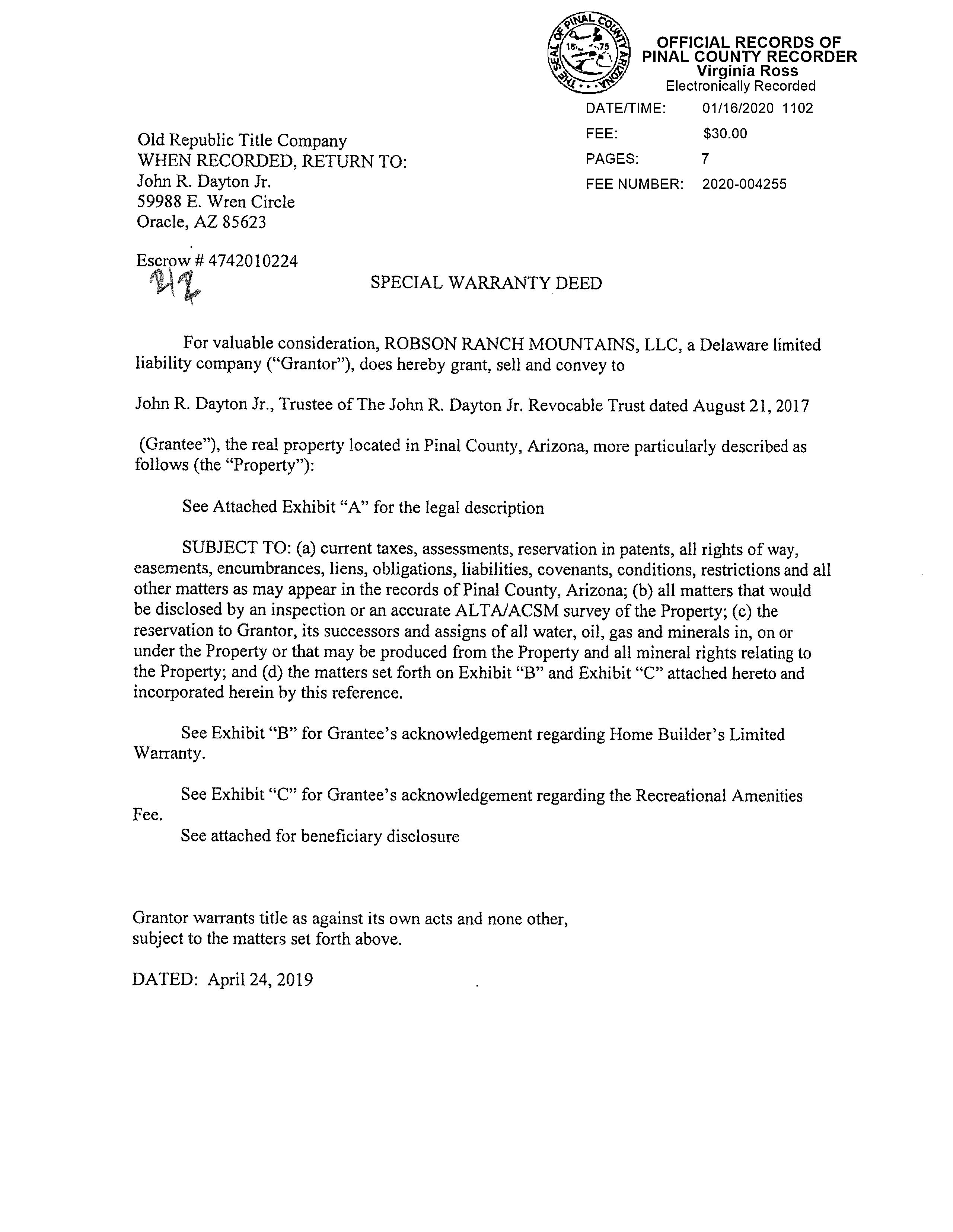 Recording/Sale Date : 01/16/2020 / 04/24/2019