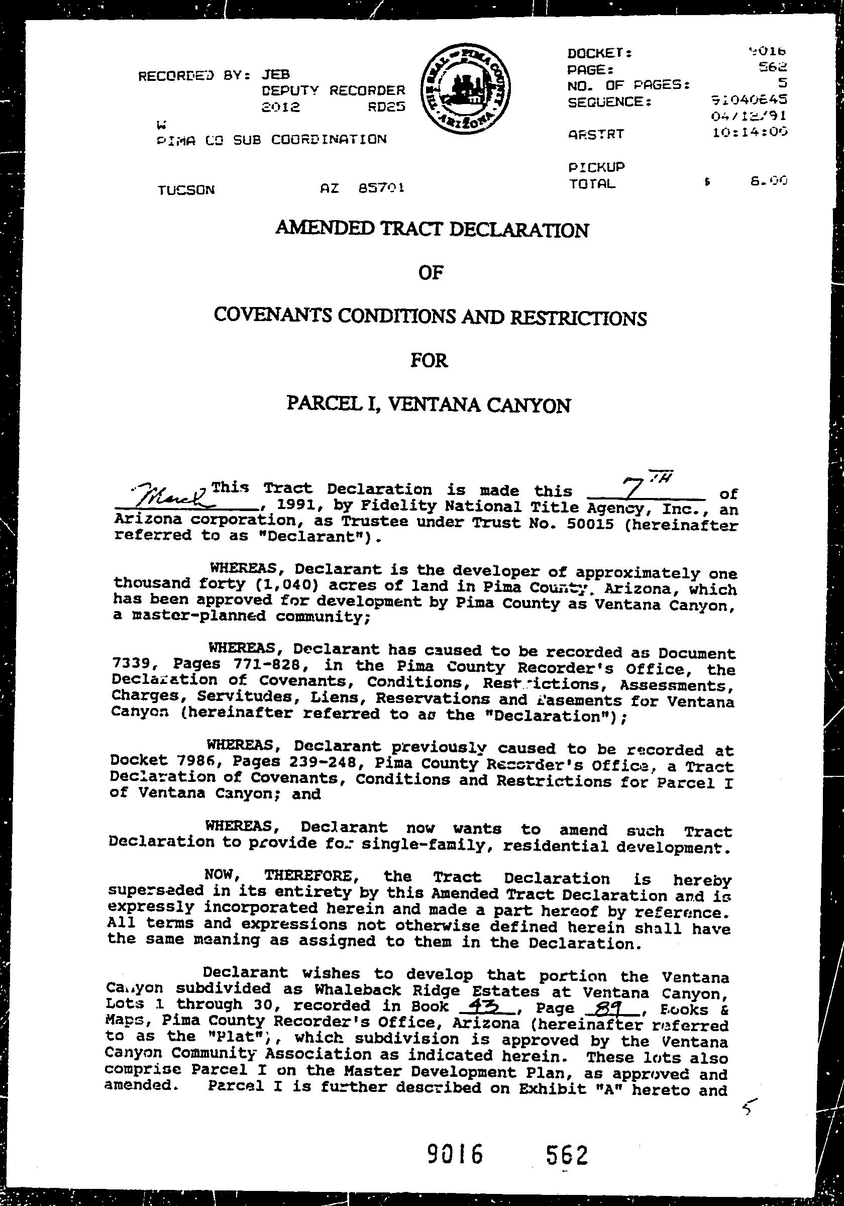 Legal Description : Whaleback Ridge Estates At Lot 0004 Ventana Canyon