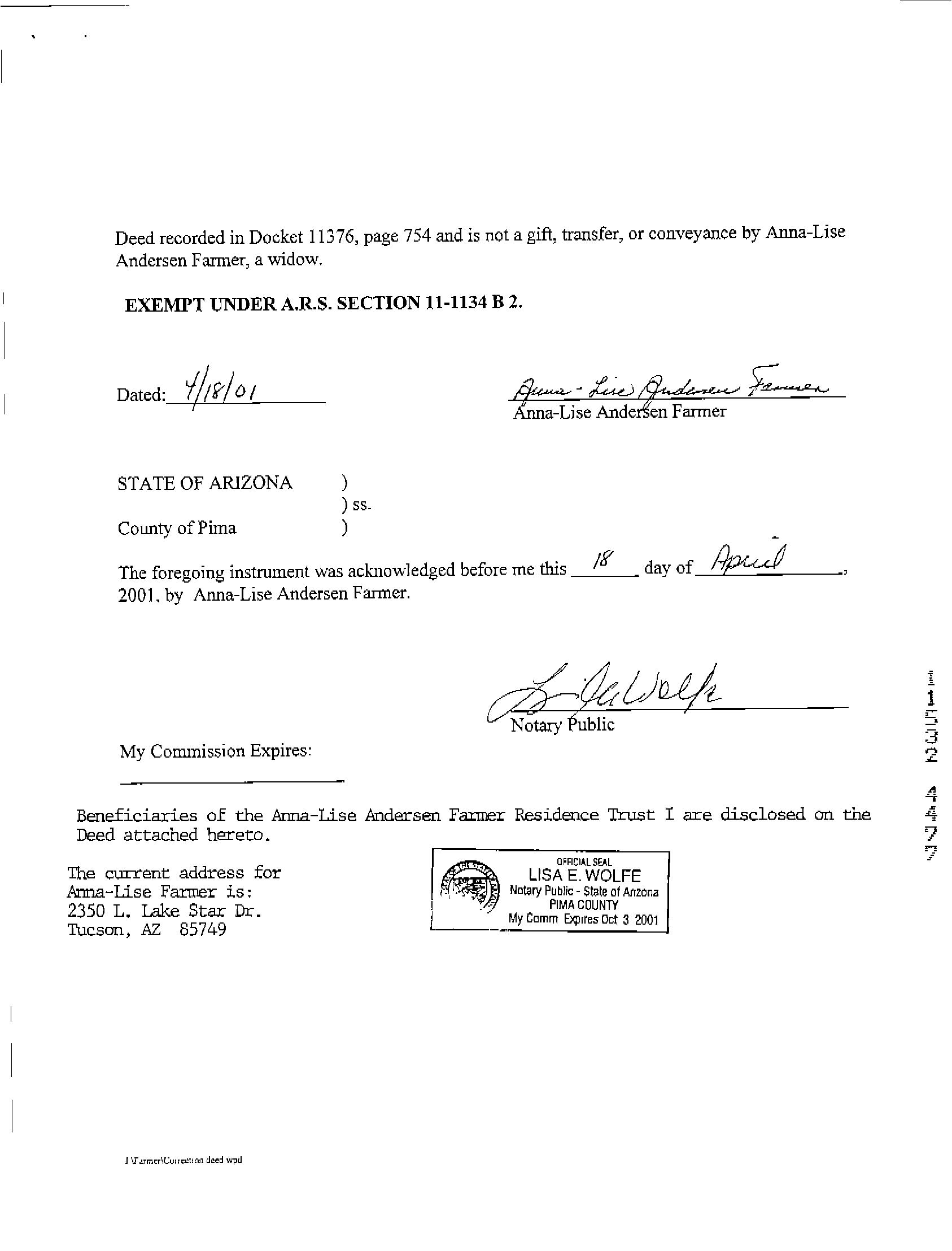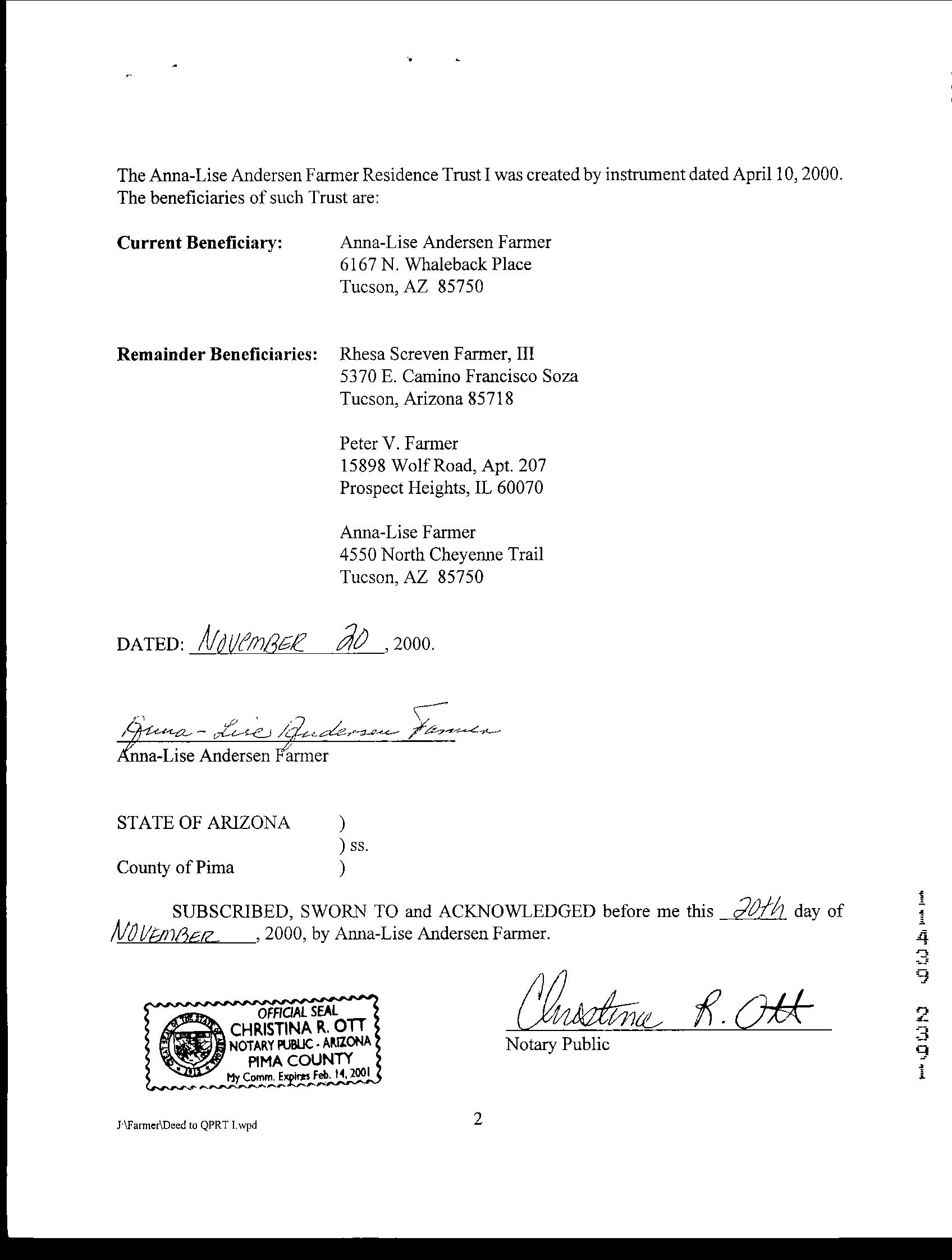 Mailing Address : 6167 N Whaleback Pl, Tucson AZ 85750-0836 C064