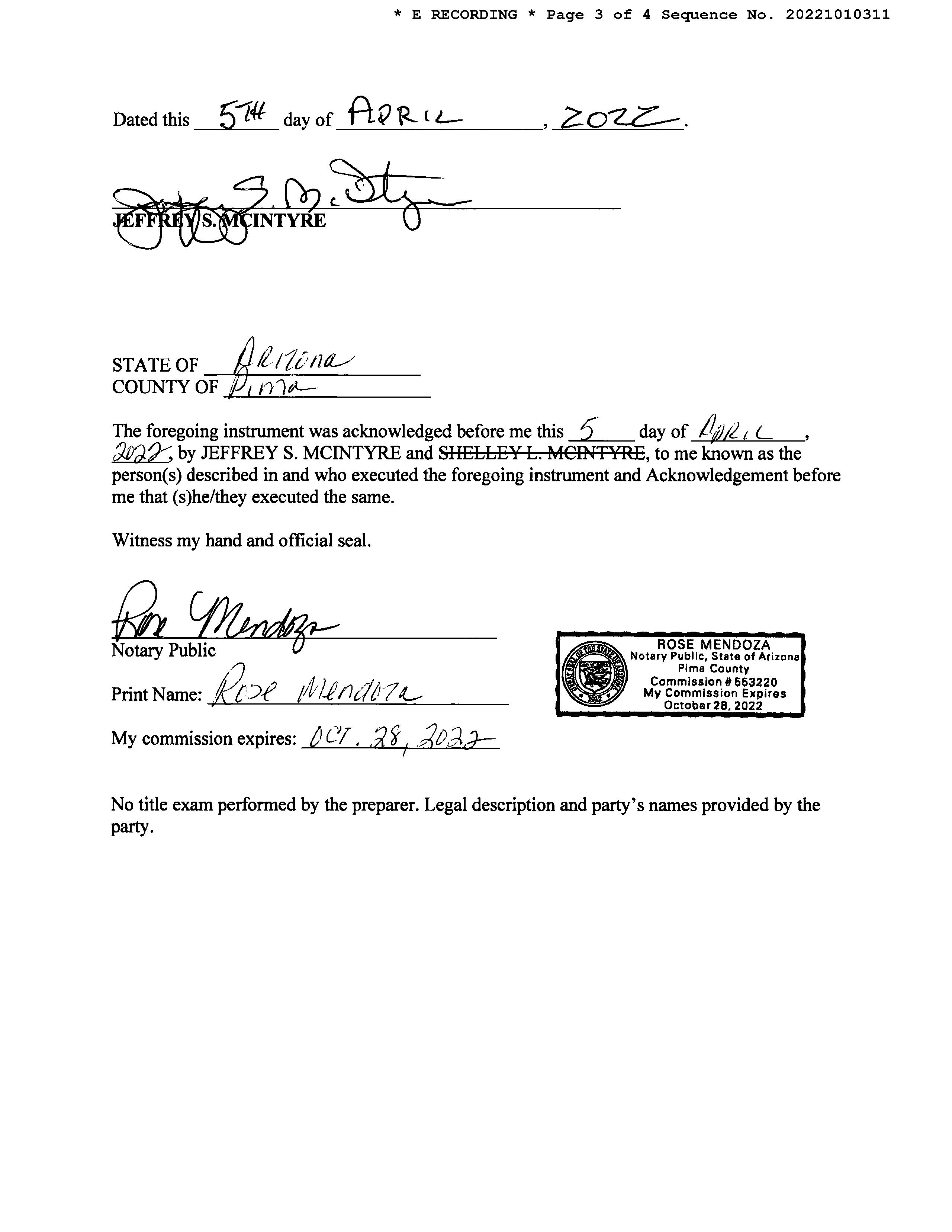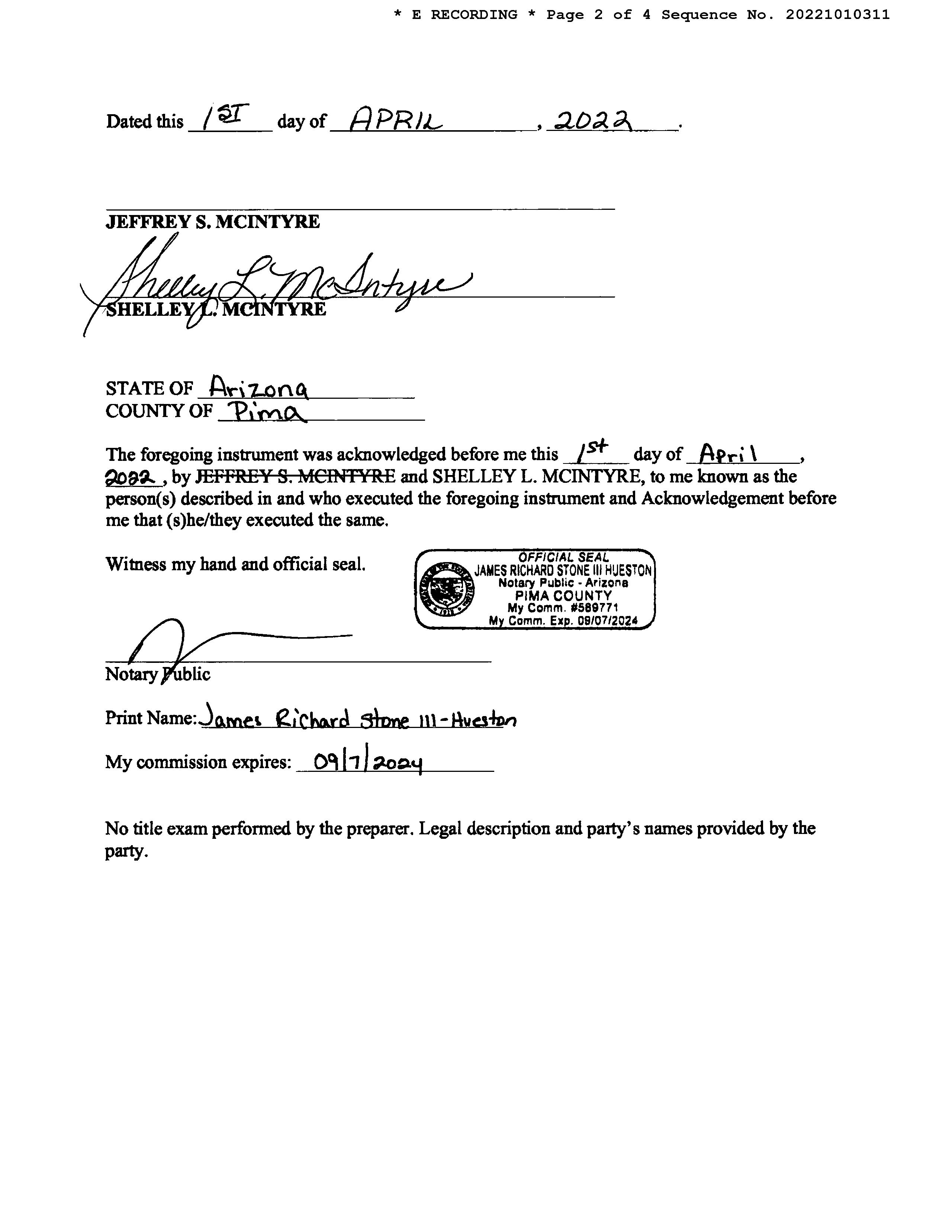 Owner Name: Mc Intyre Jeffrey S / APN / Alternate APN: 305-24-1840 / Deed Type: Warranty Deed