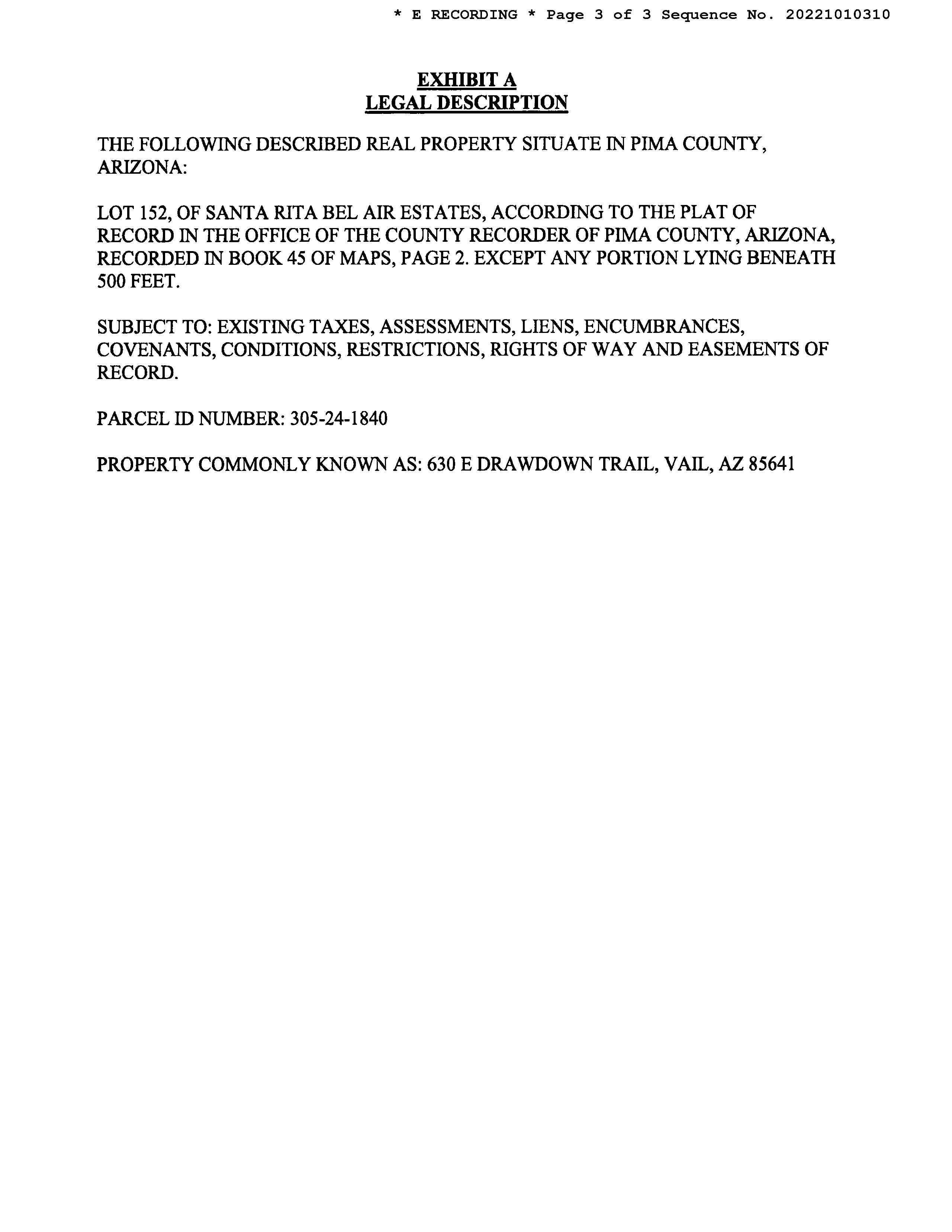 Subject Property : 630 E Drawdown Trl Vail AZ 85641