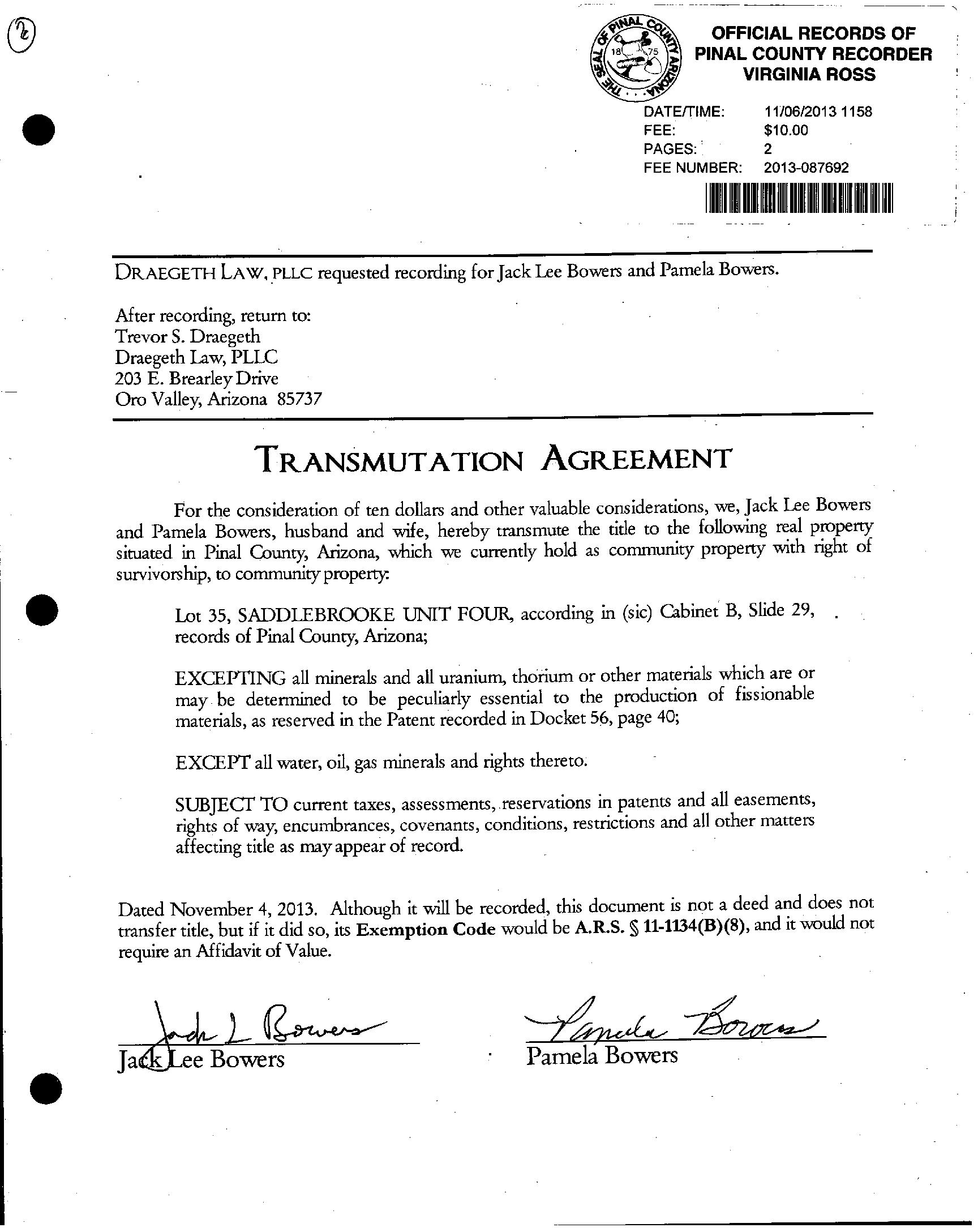 Owner Name: Bowers Jack Lee (te) & Pamela /Bowers