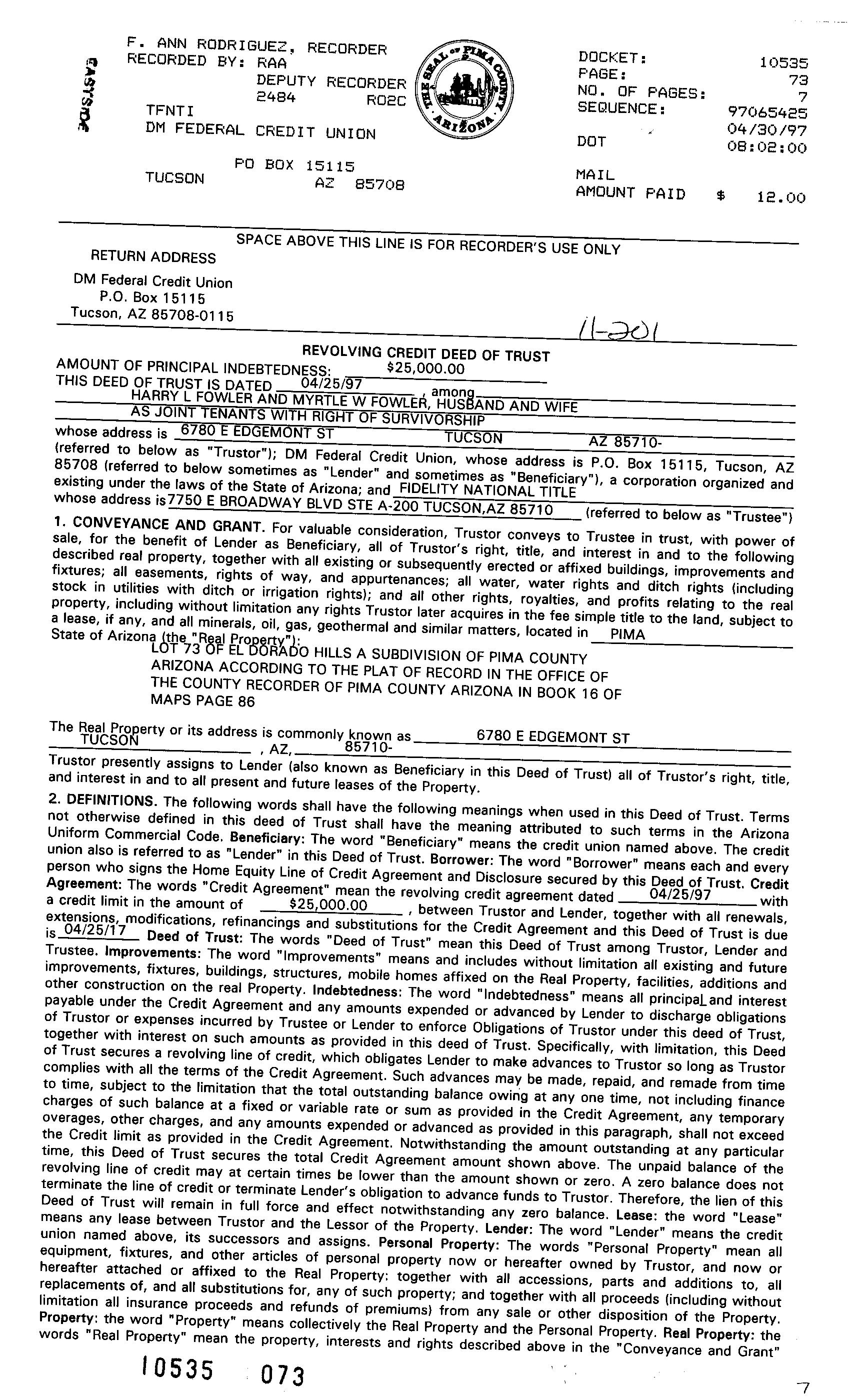Mailing Address : 6780 E Edgemont St, Tucson AZ 85710-1246 C034