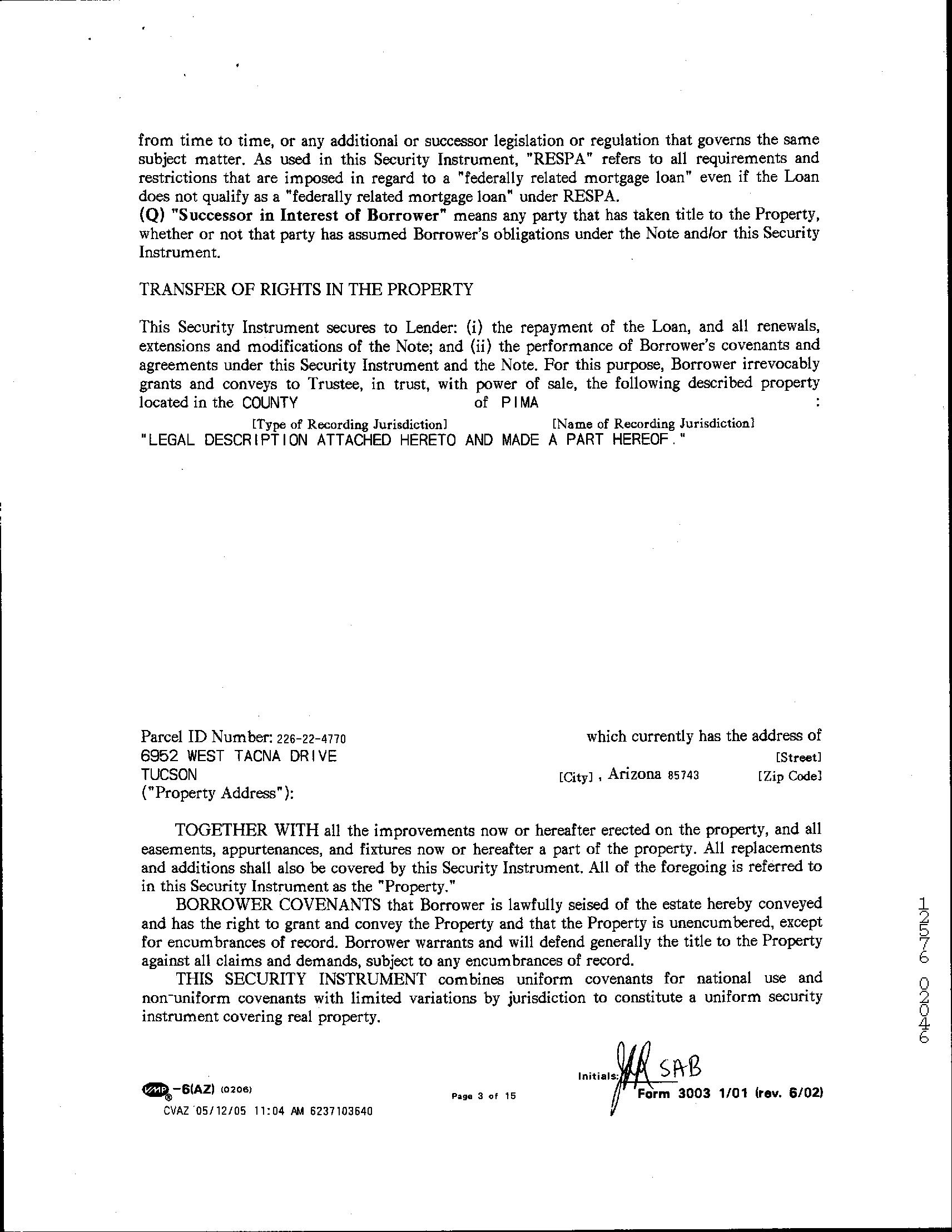 Subject Property : 6952 W Tacna Dr Tucson AZ 85743