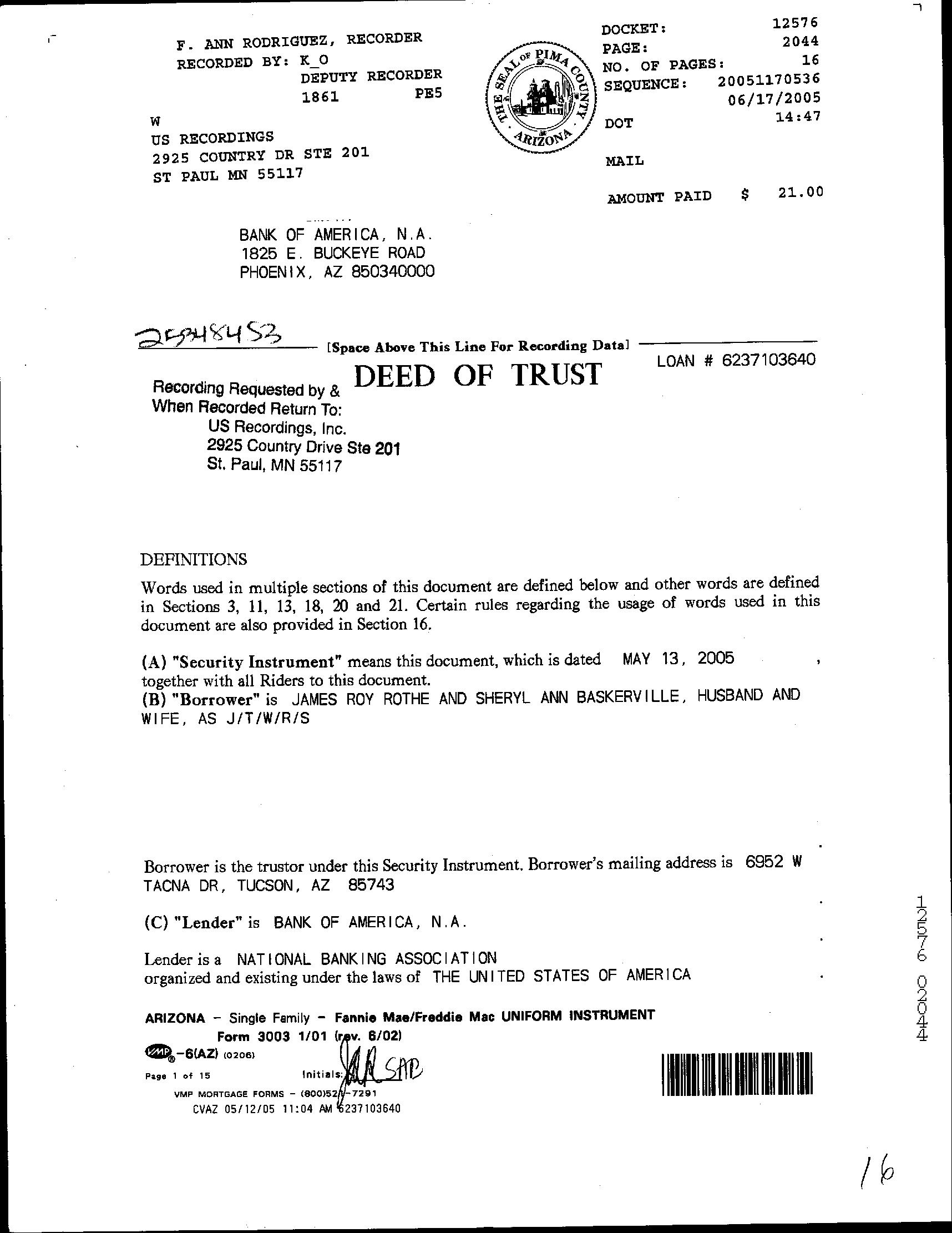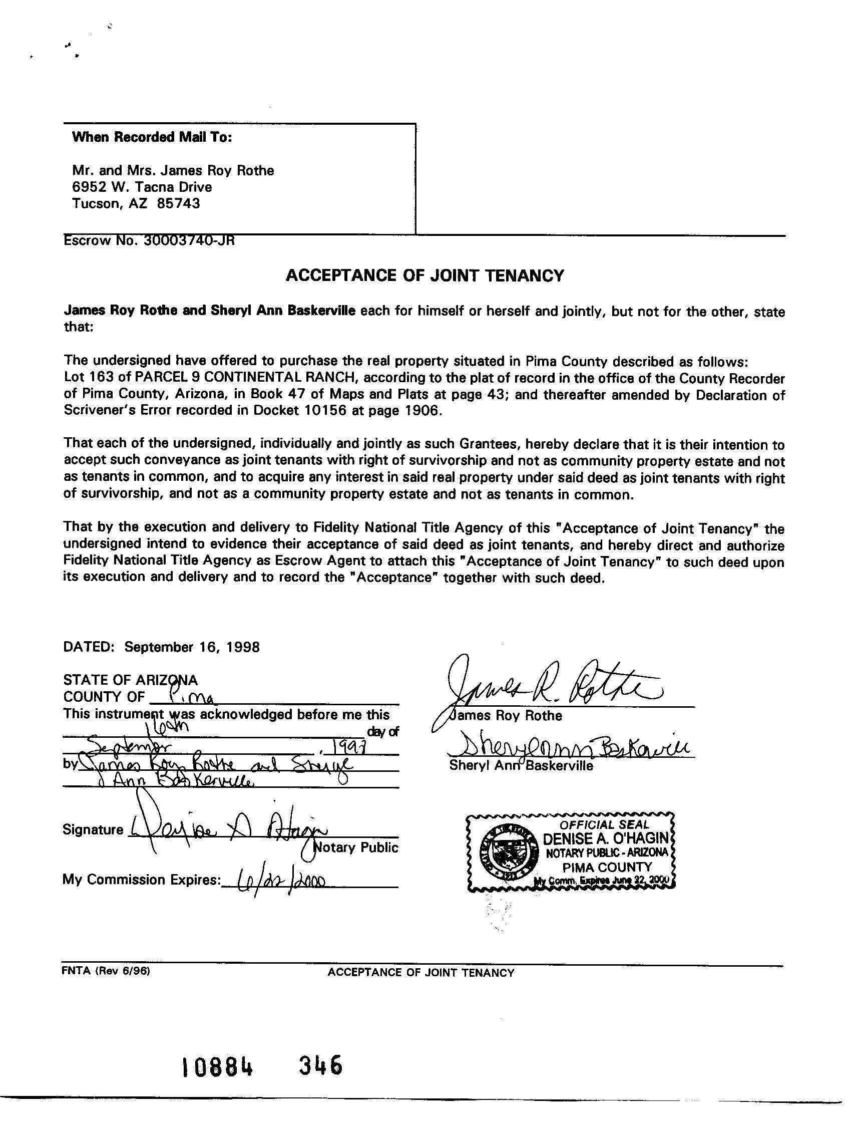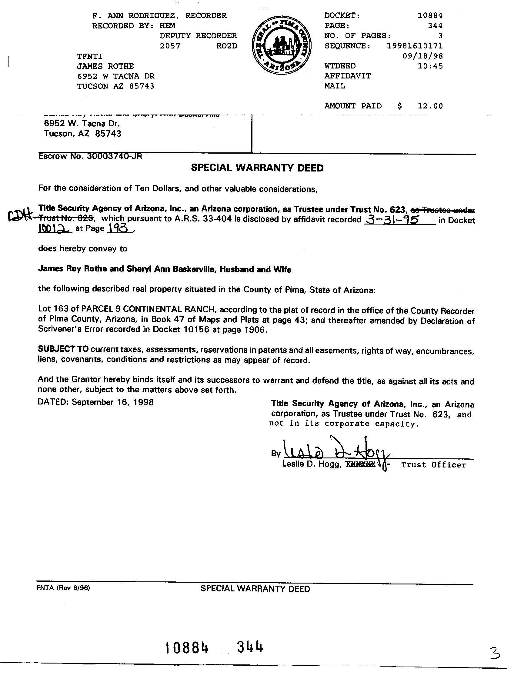 Owner Name: Rothe James Roy /Baskerville Sheryl Ann