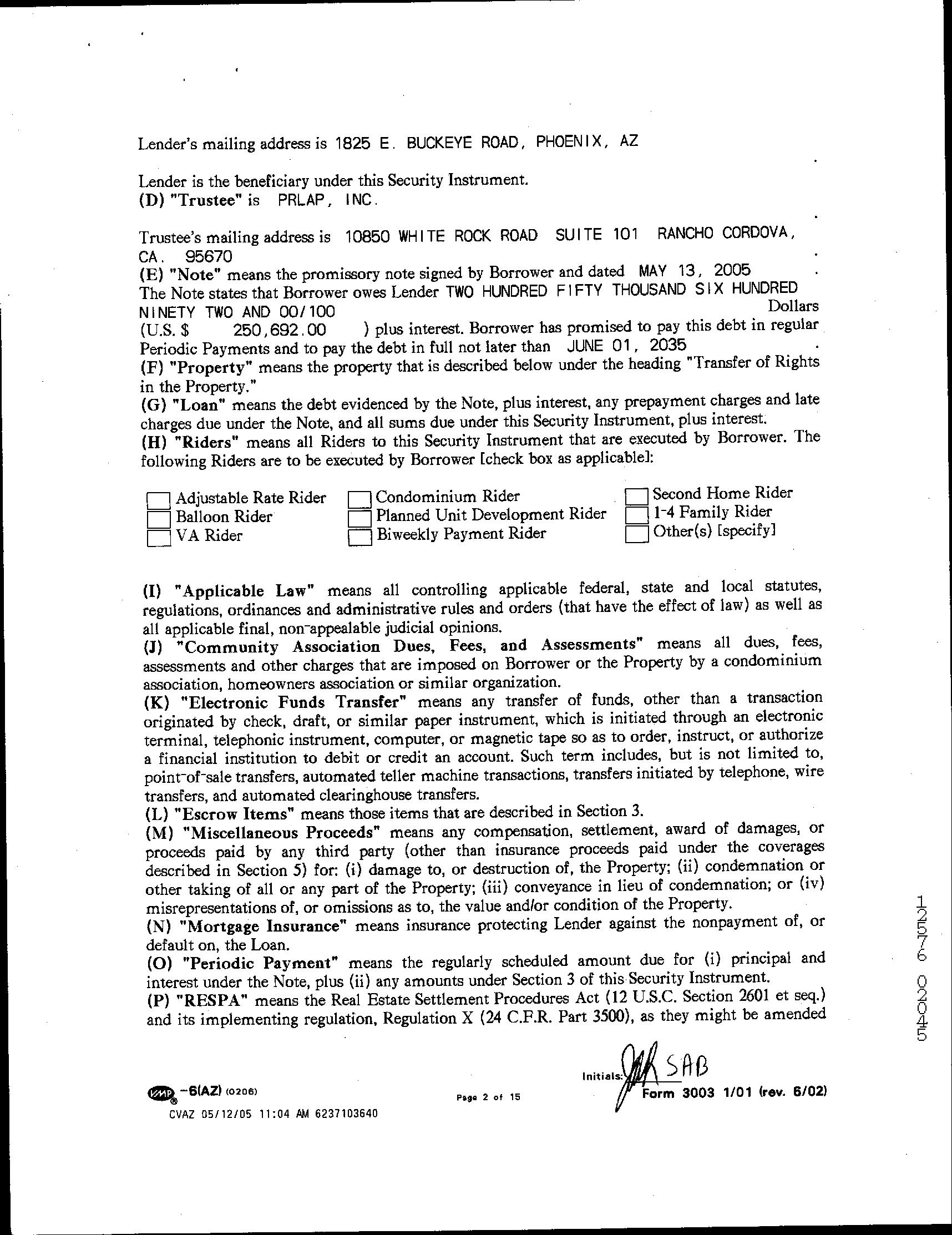 1st Mtg Int. Rate/Type : / Fixed Rate Loan