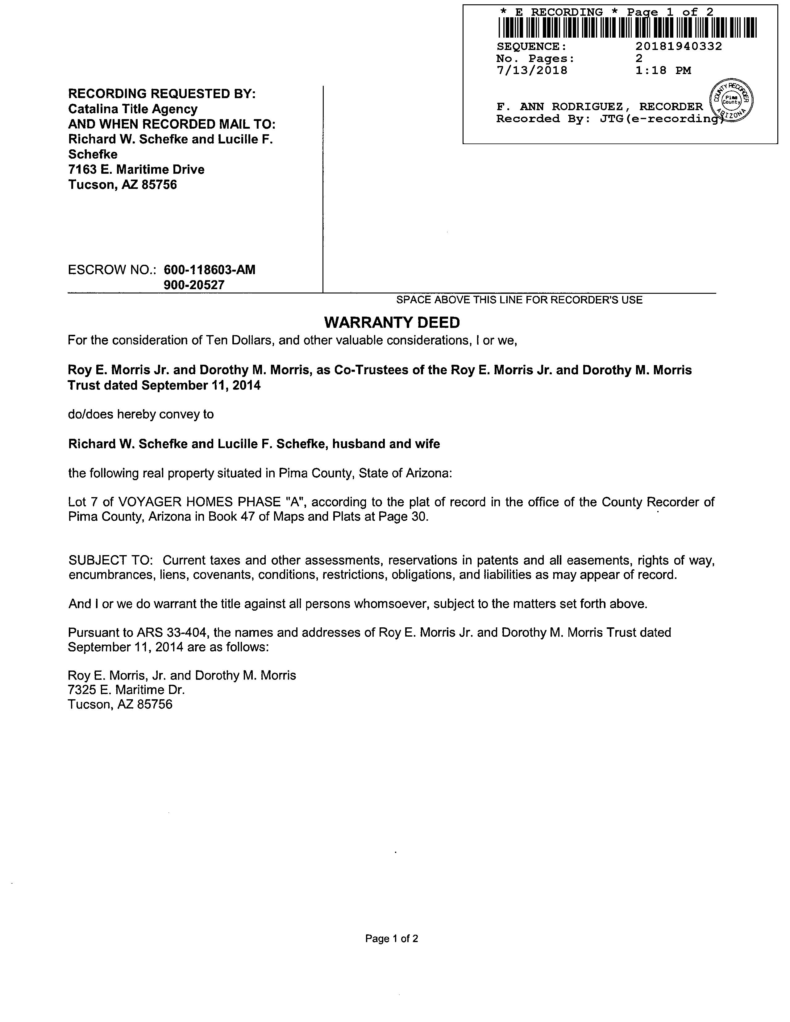 Owner Name : Schefke Richard W / Schefke Lucille F