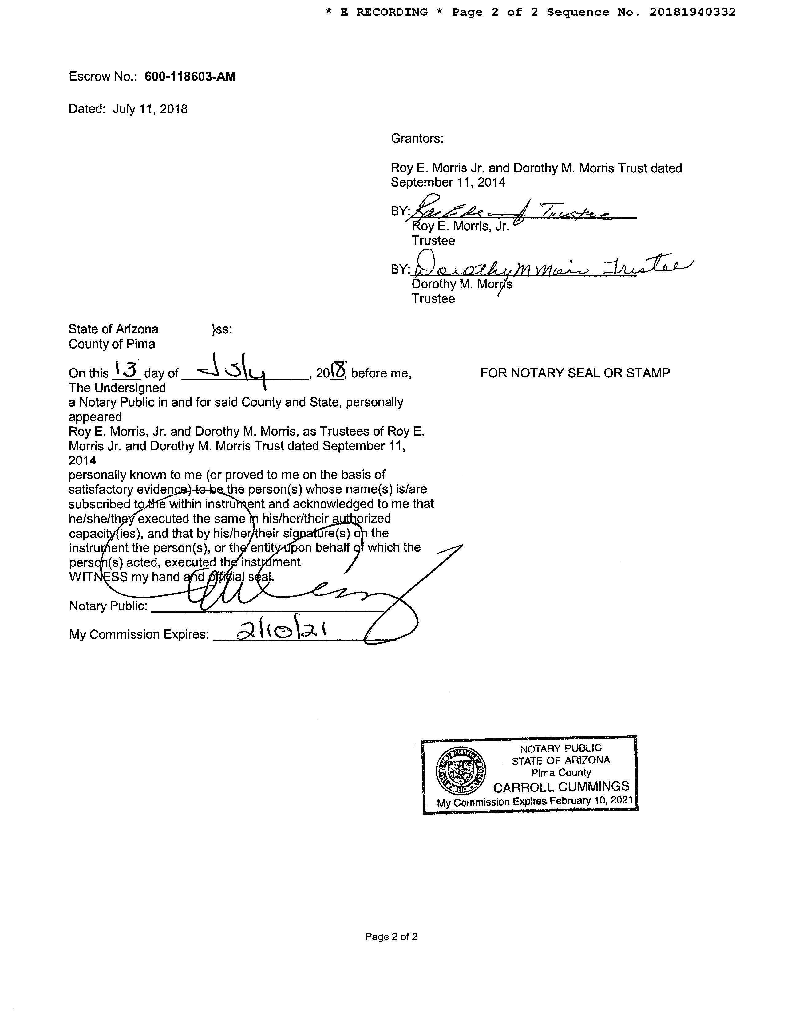 Seller Name : Morris R E Jr & D M Trust