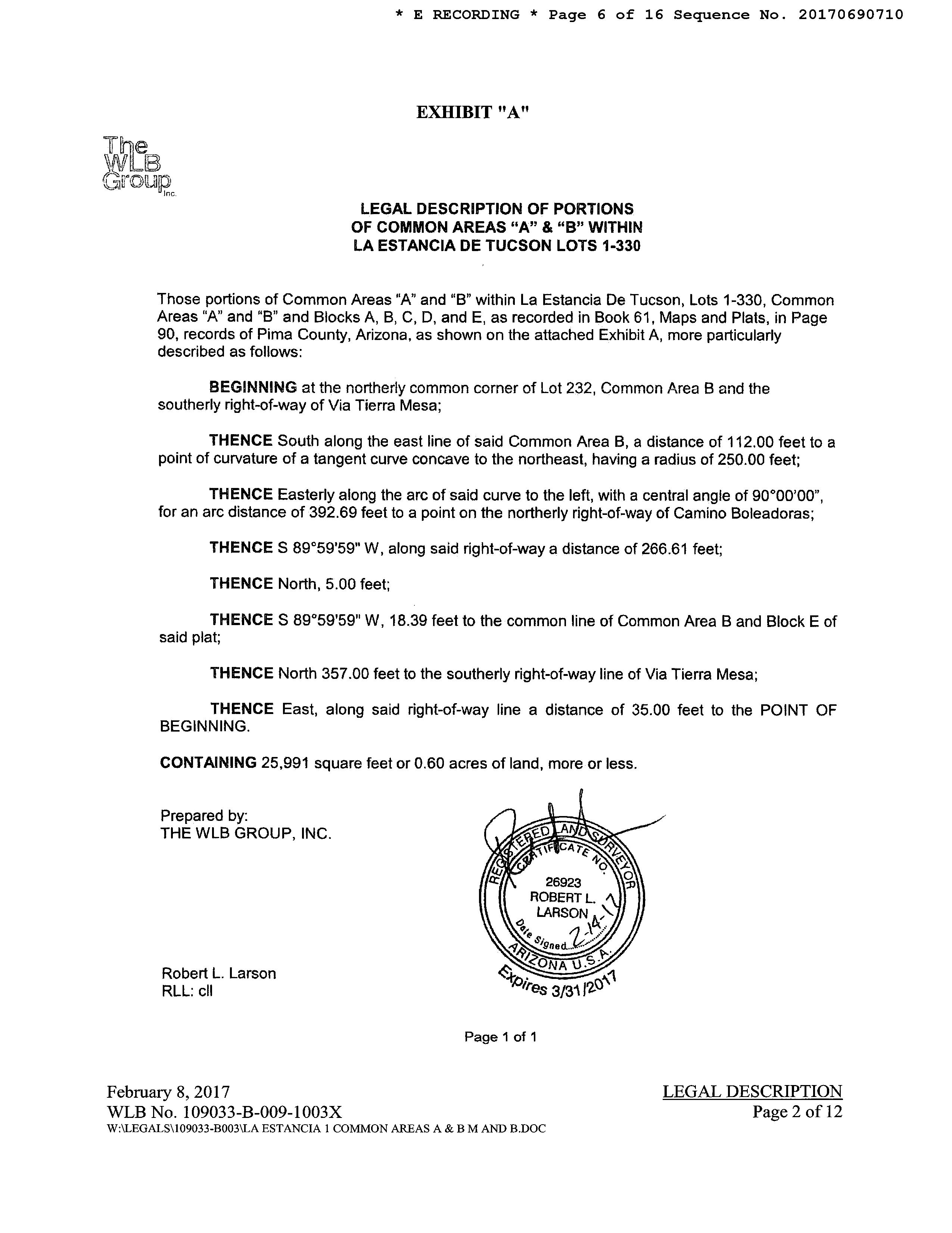 Legal Description : La Estancia De Tucson Phase 2 Parcel 1 Lot 161 Sq20203460699