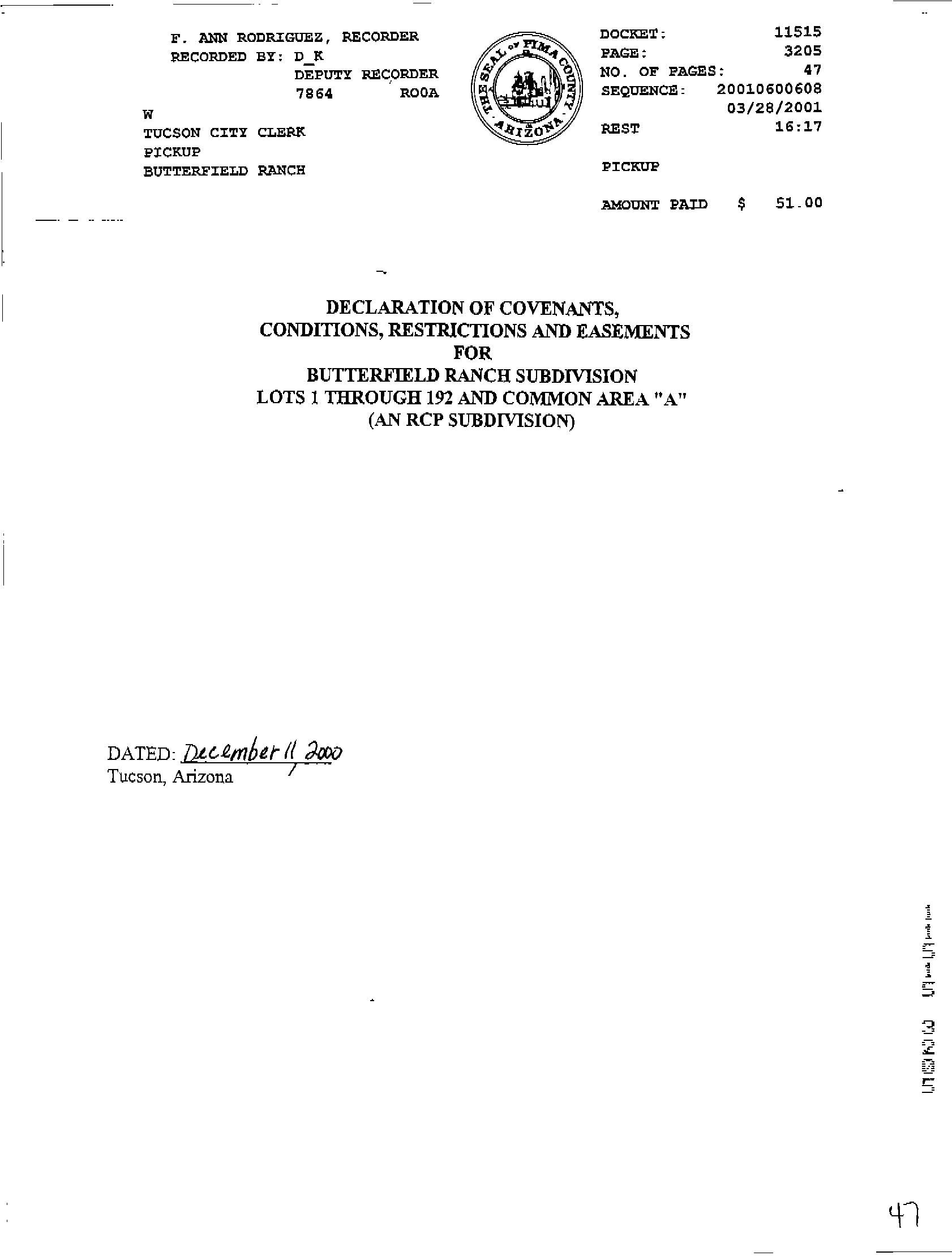 Subdivision / Tract: Butterfield Ranch / Lot Size: 7,308 Year Built / Eff: 2002 / Rec. Date / Price: 06/26/2012 / $158,900 Living Area: 1,660 # of units: Document #: 1781300 Bedrooms: Pool: Total Tax Value: $222,622 Bath(F/H): / #1 8136 E Snakeroot Dr Tucson Az 85710 Owner
