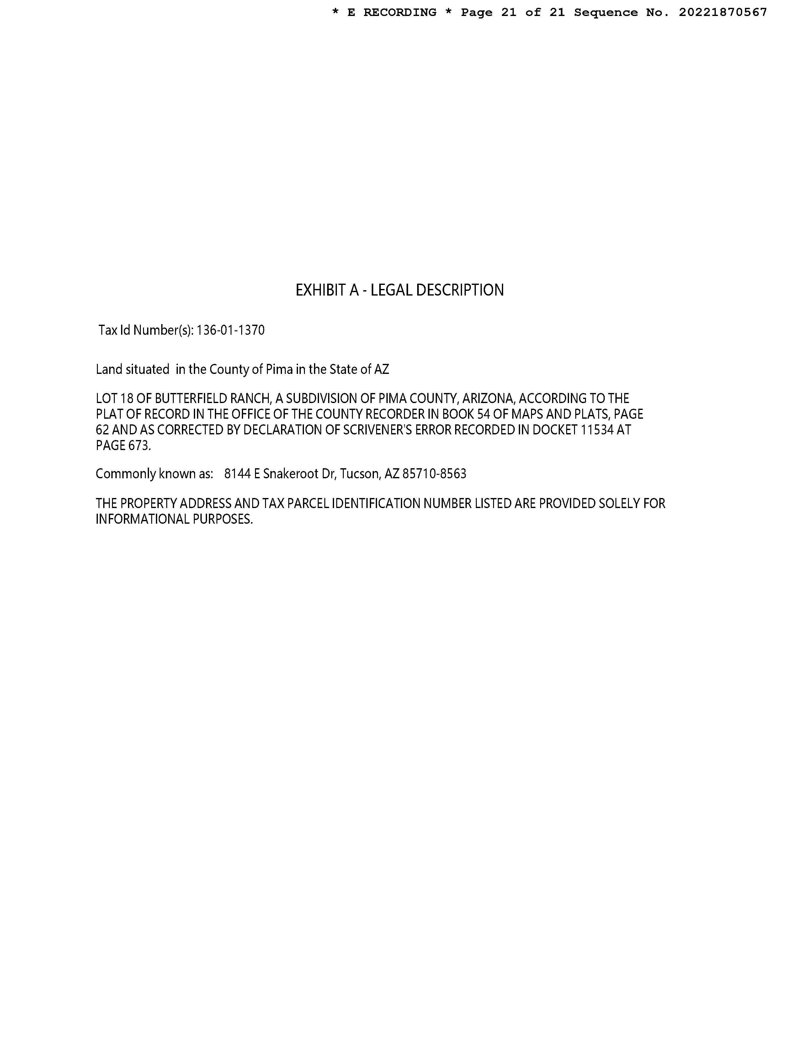 Subject Property : 8144 E Snakeroot Dr Tucson AZ 85710
