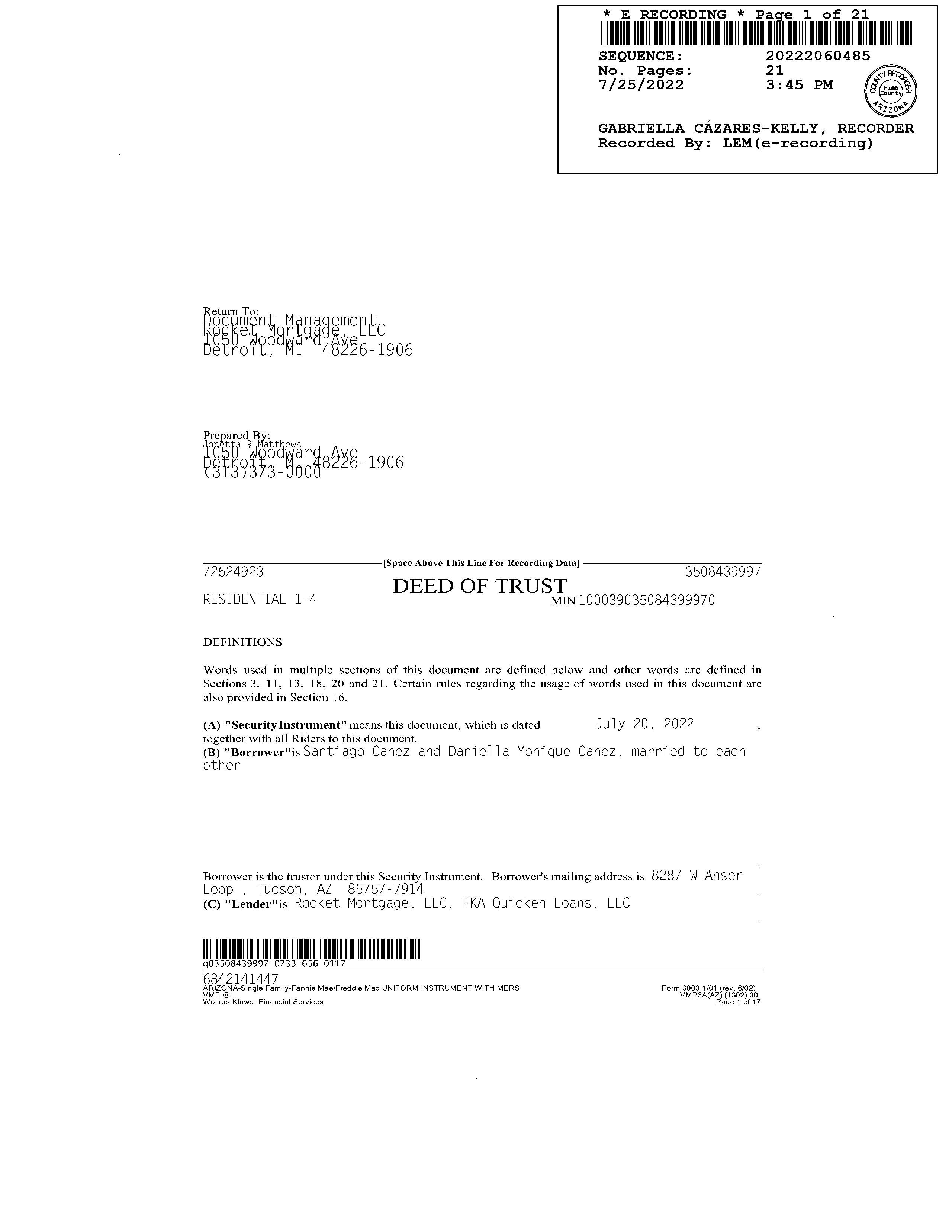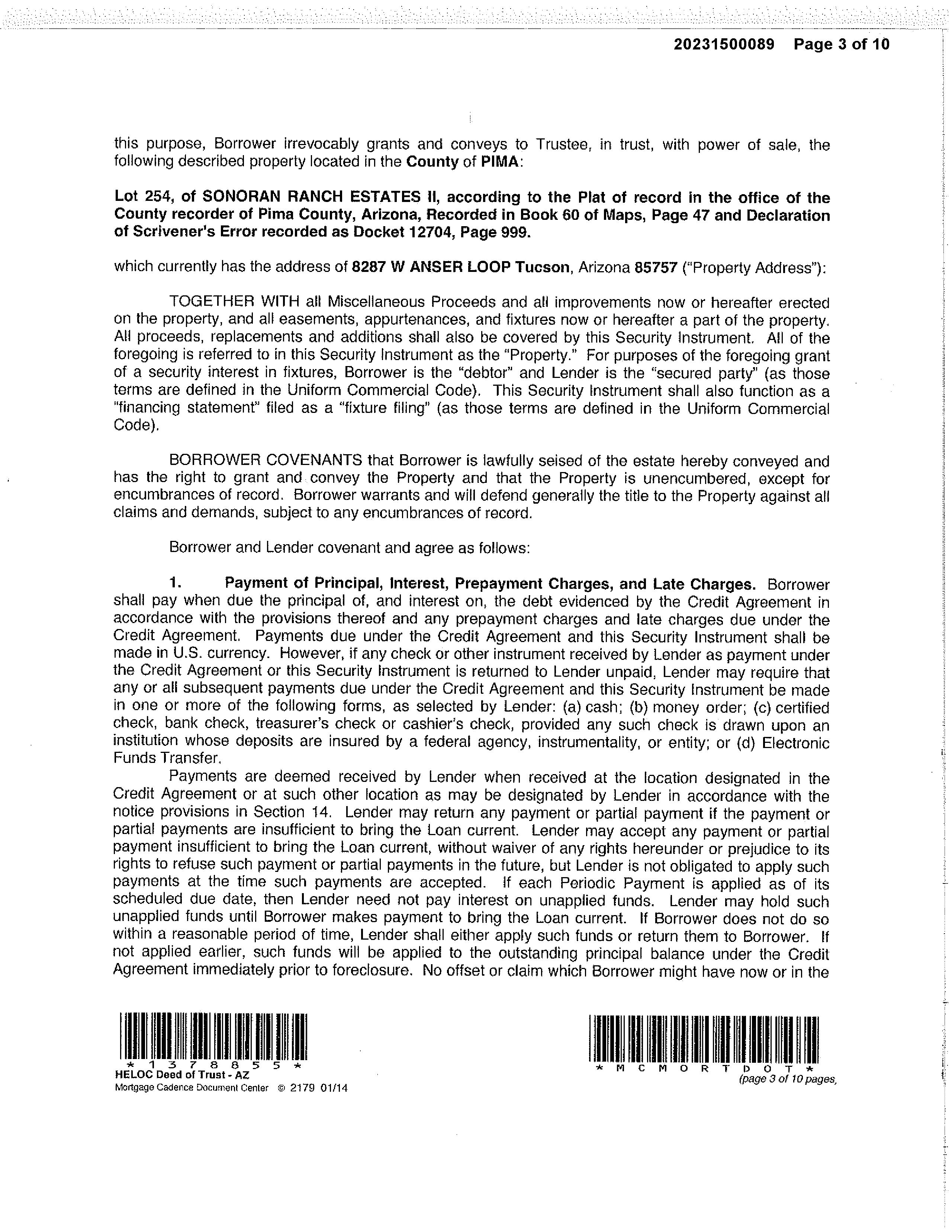 Mailing Address : 8287 W Anser Loop, Tucson AZ 85757-7914 R089